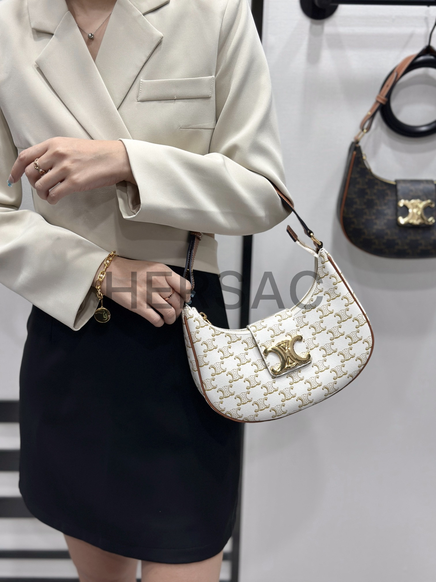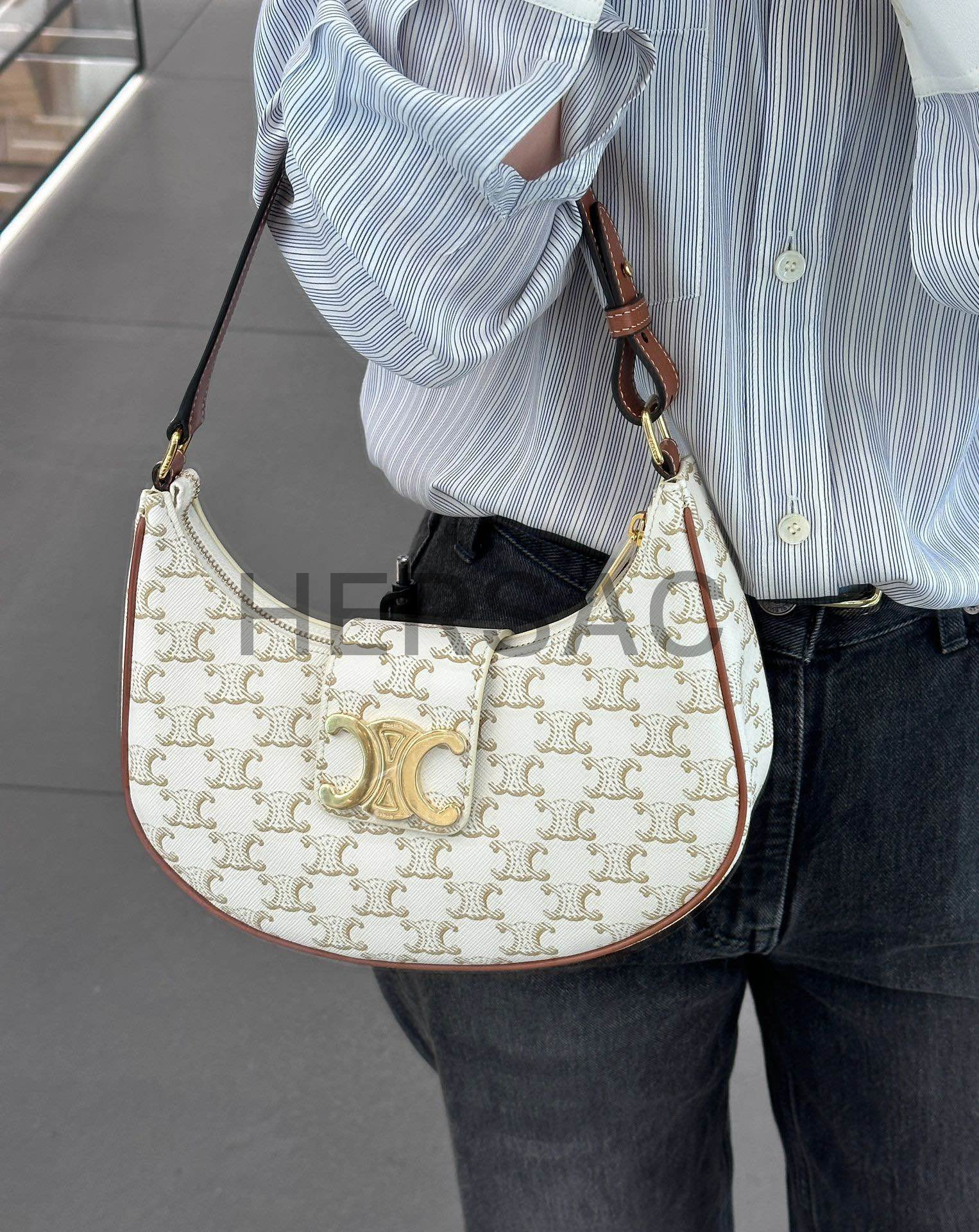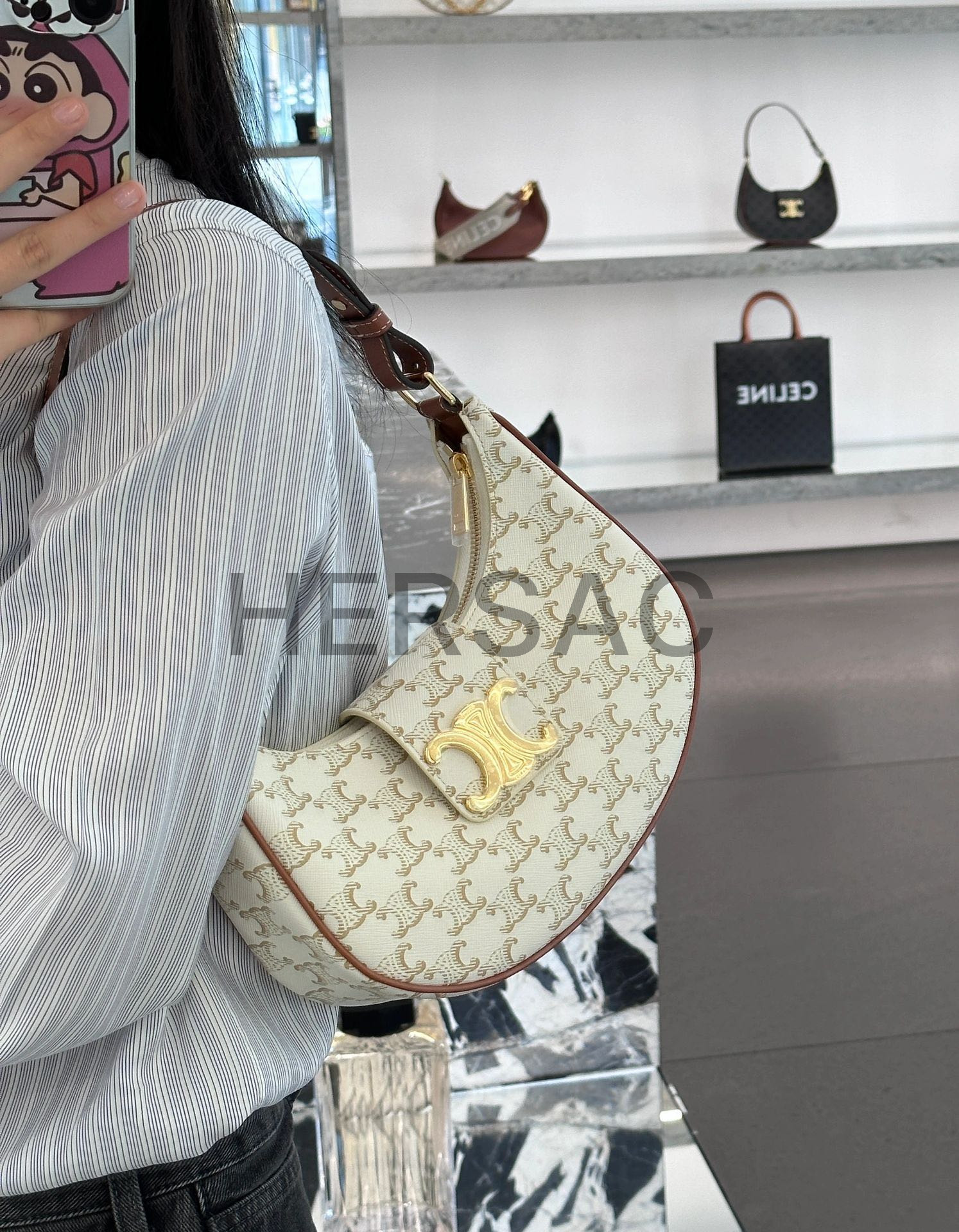 Celine Medium Ava Triomphe Bag IN Triomphe Canvas and calfskin > 숄더백