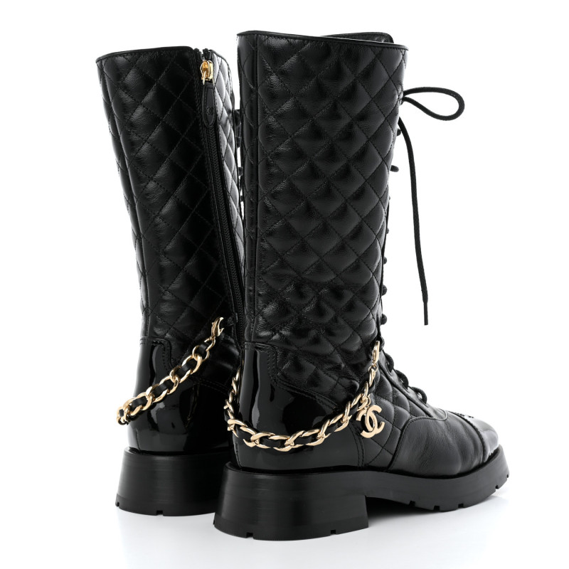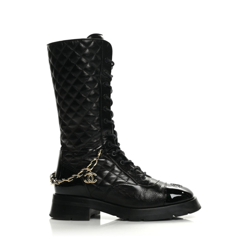 CHANEL CC Chain Quilting Lace-Up Long Boots > 부츠