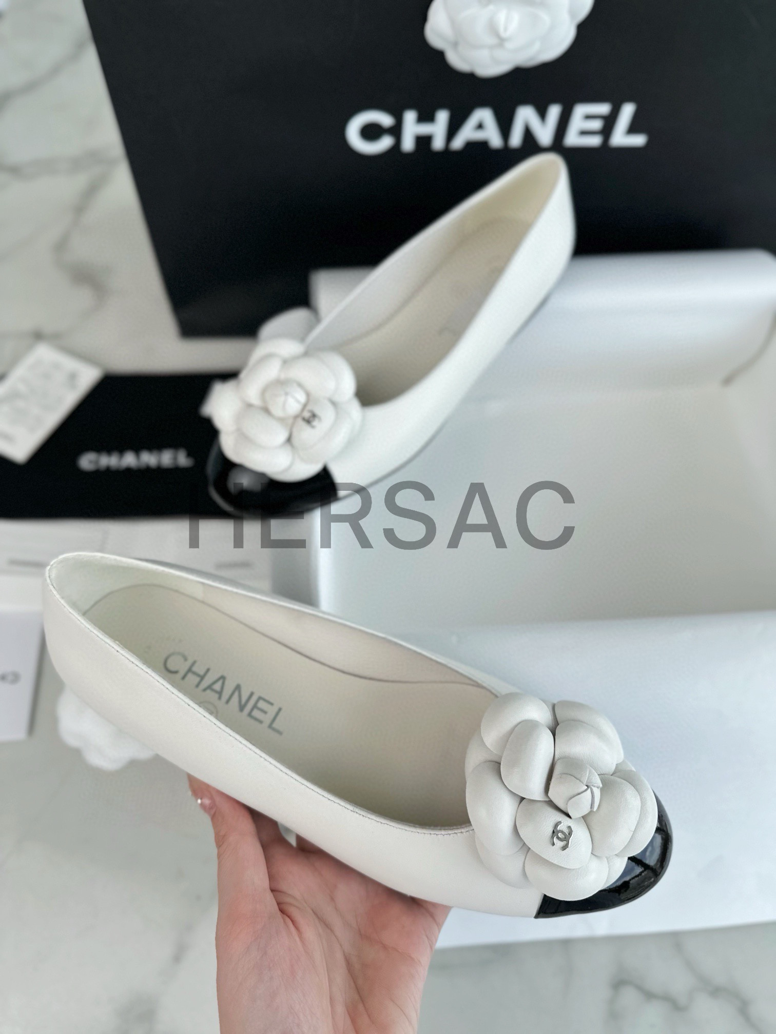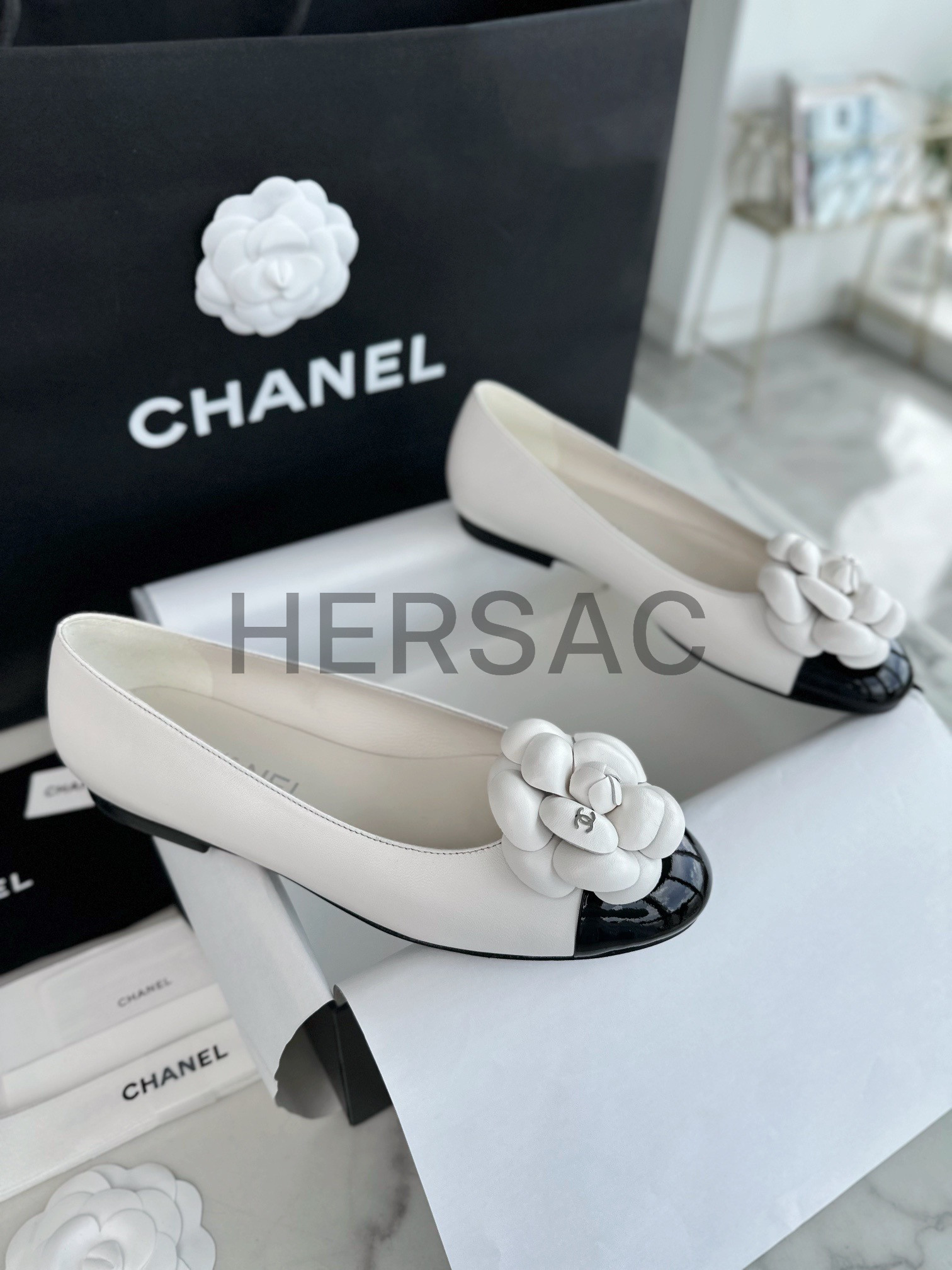 CHANEL Ramskin Camellia Flat Ballerina Shoes > 플랫&발레리나&메리제인