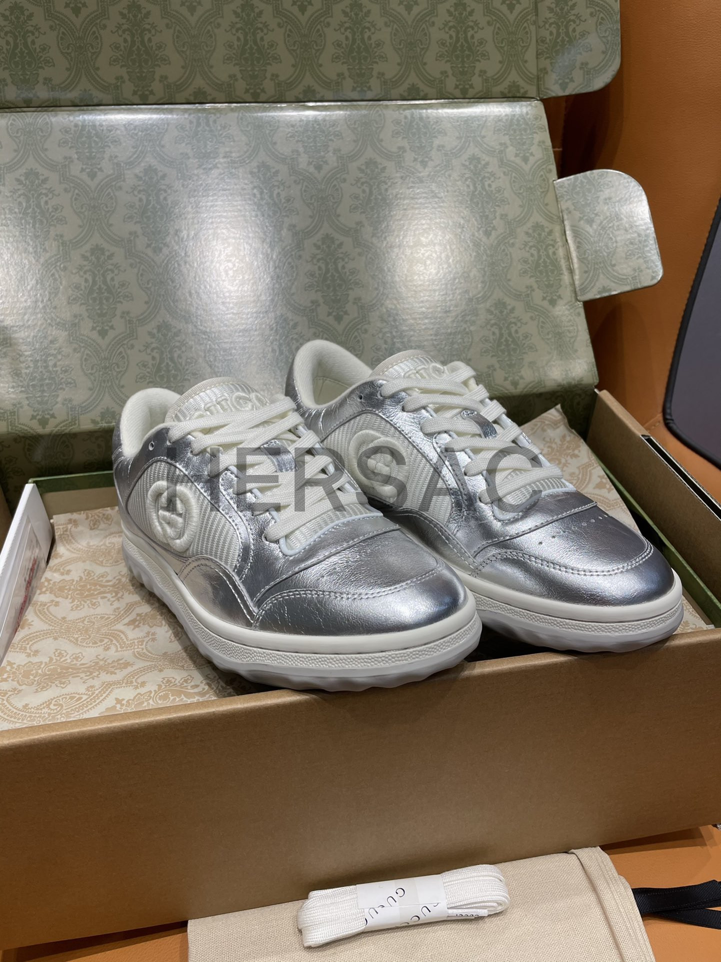 구찌 맥80 메탈릭 실버 가죽 스니커즈 750834 AACA9 8141
