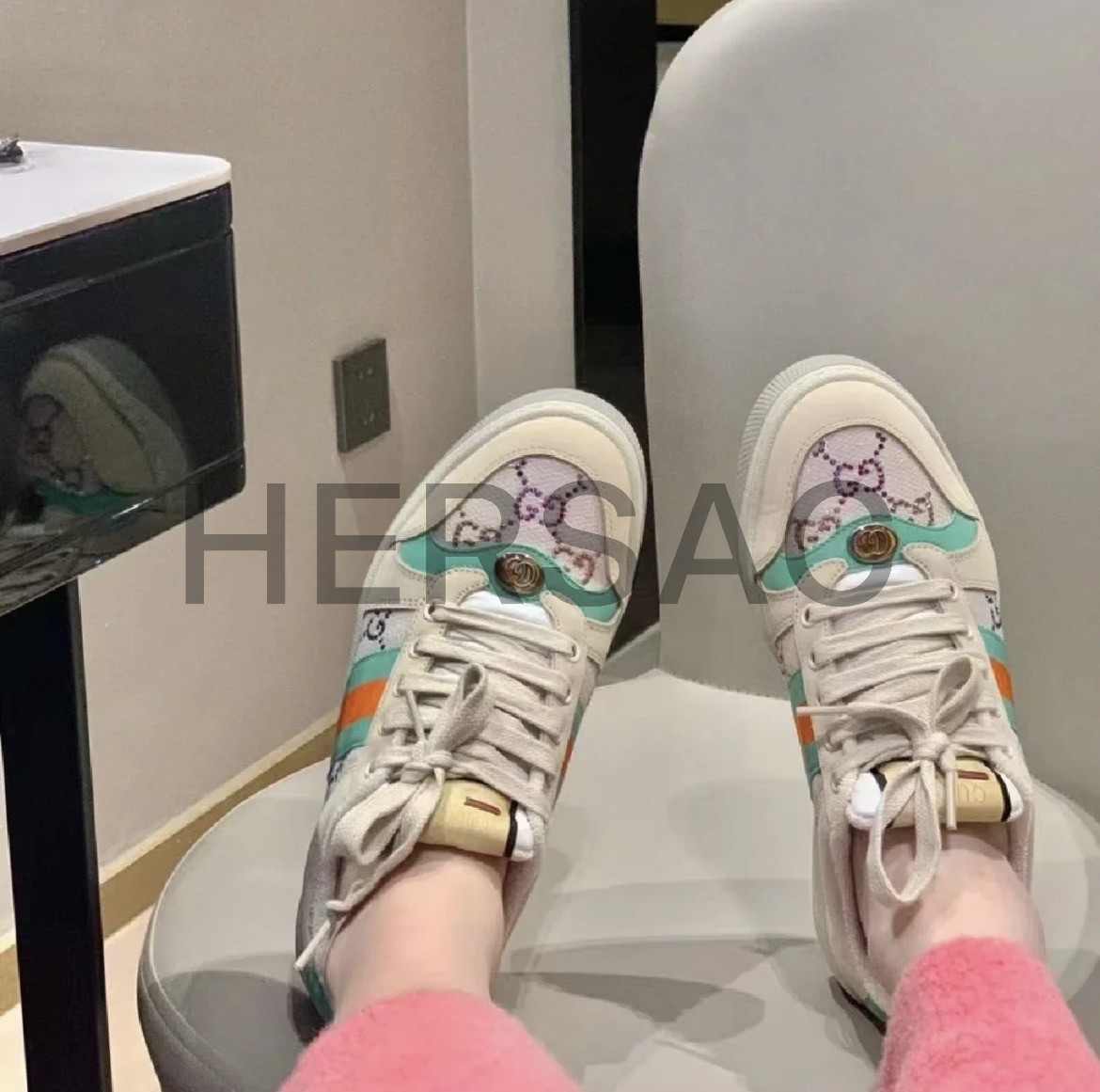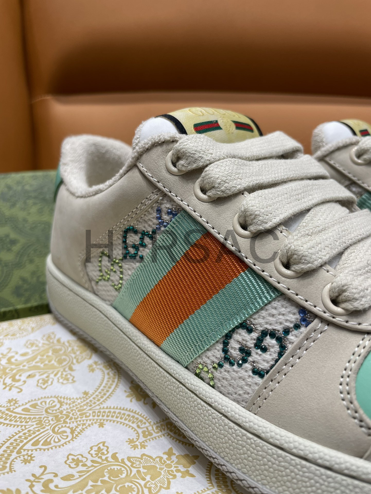 구찌 스크리너 장식 가죽 스니커즈 732193 FABH2 9178