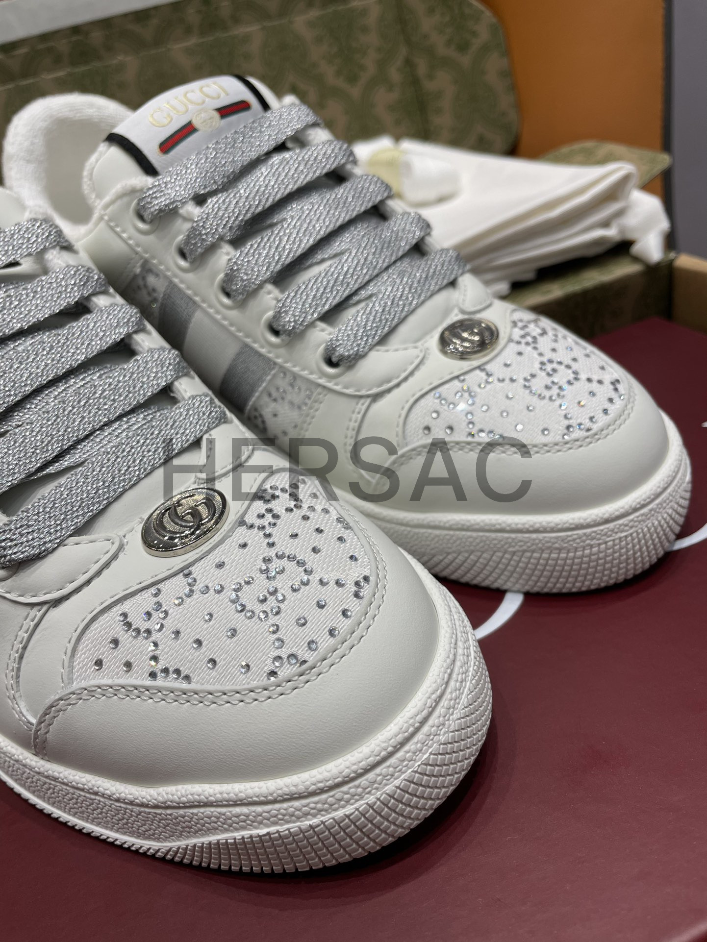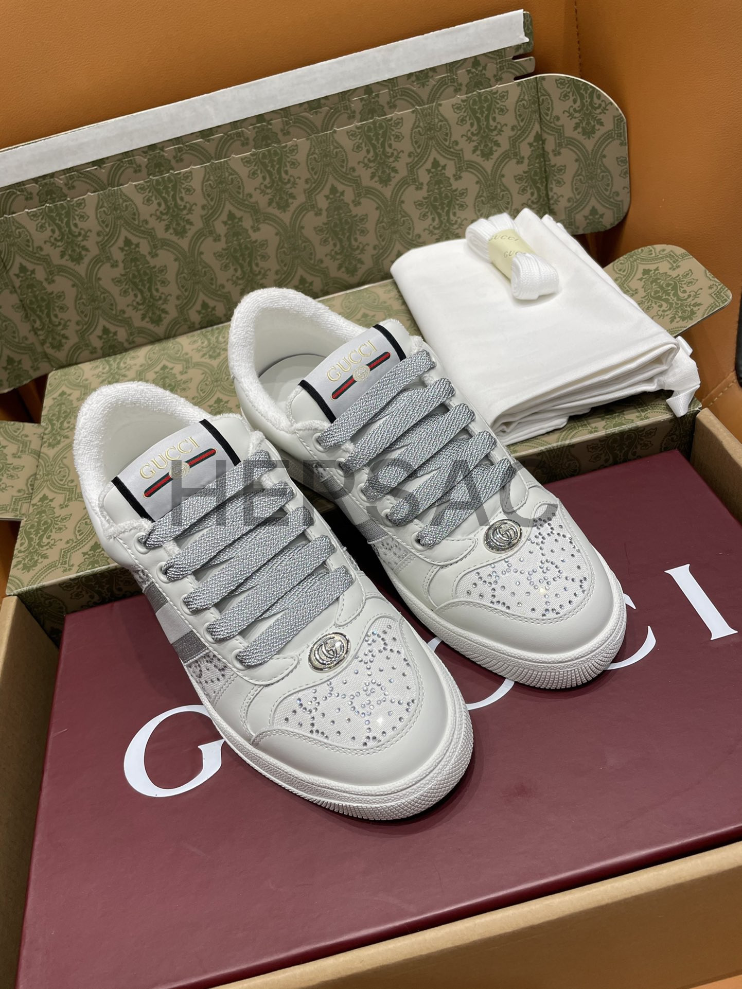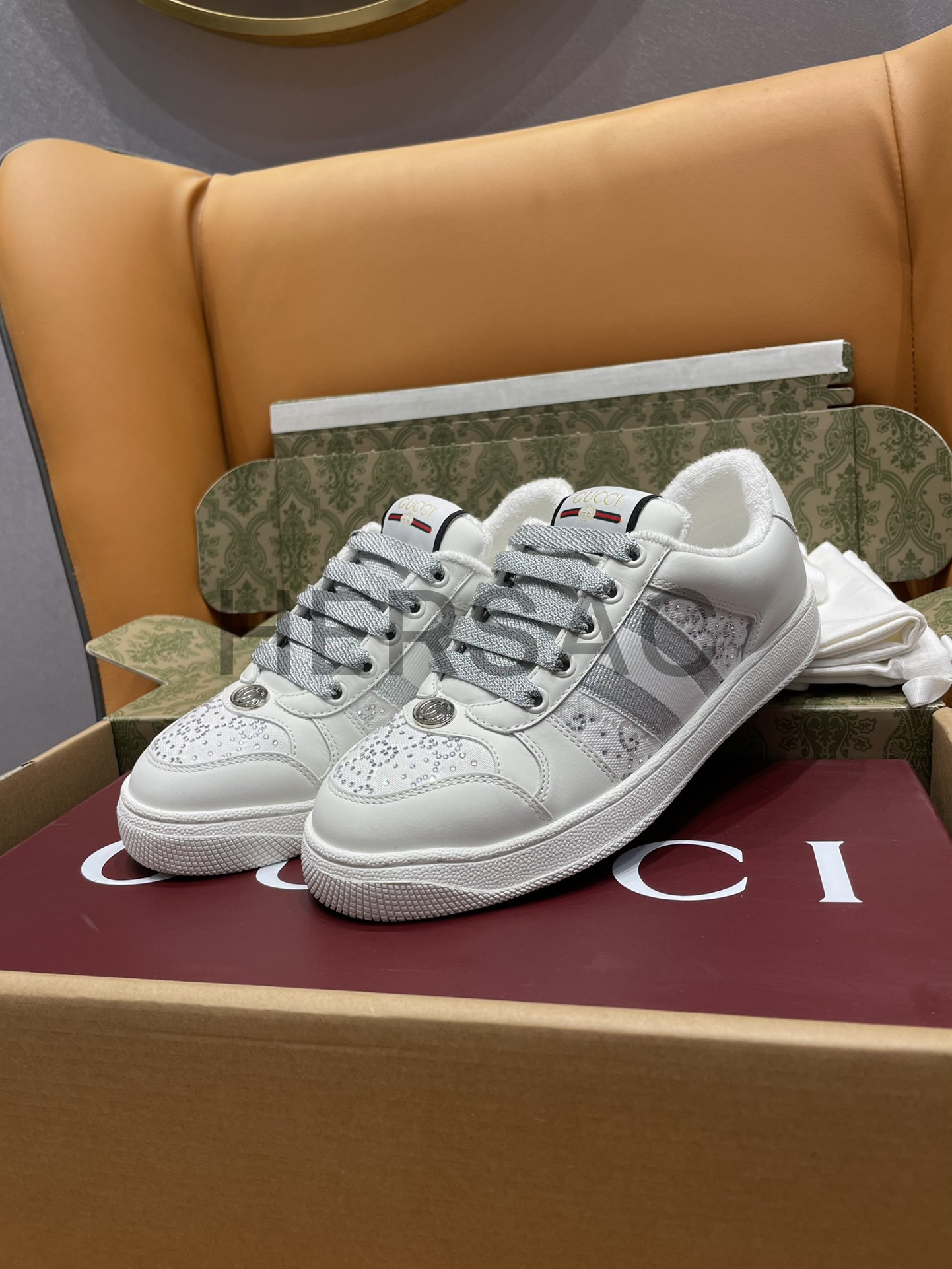 구찌 여성 GG 크리스털 스크리너 스니커즈 732193 FADQ7 9096