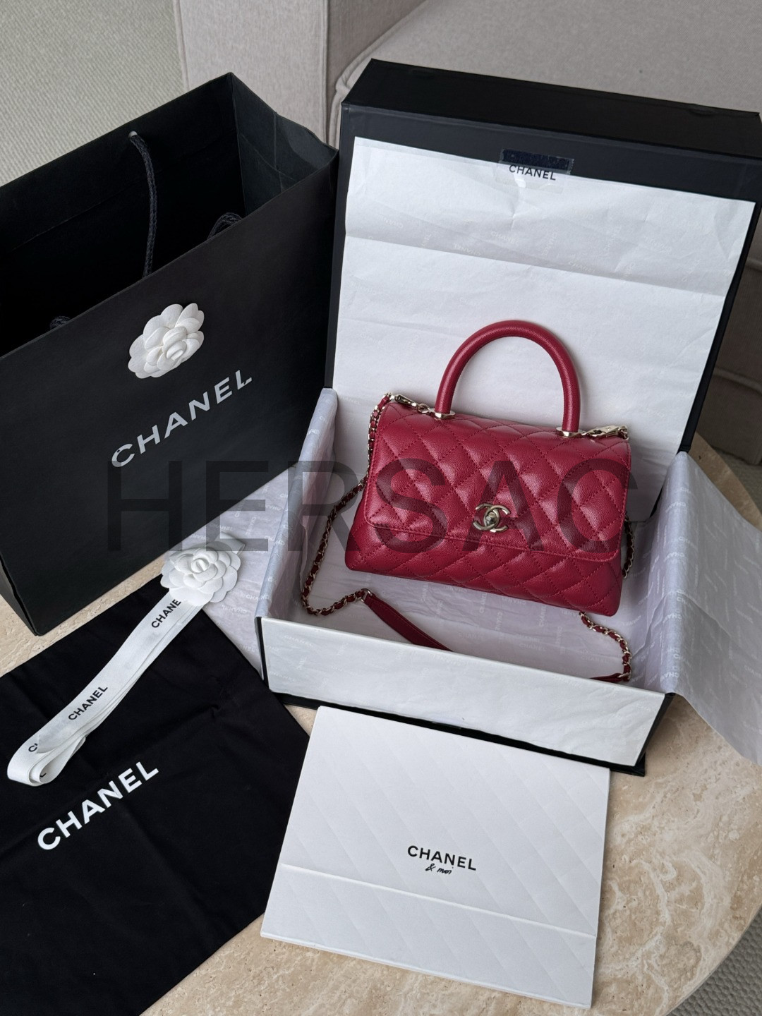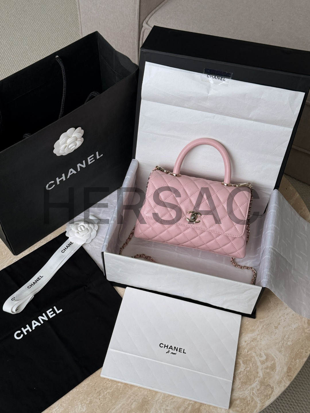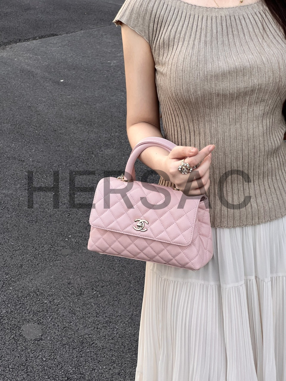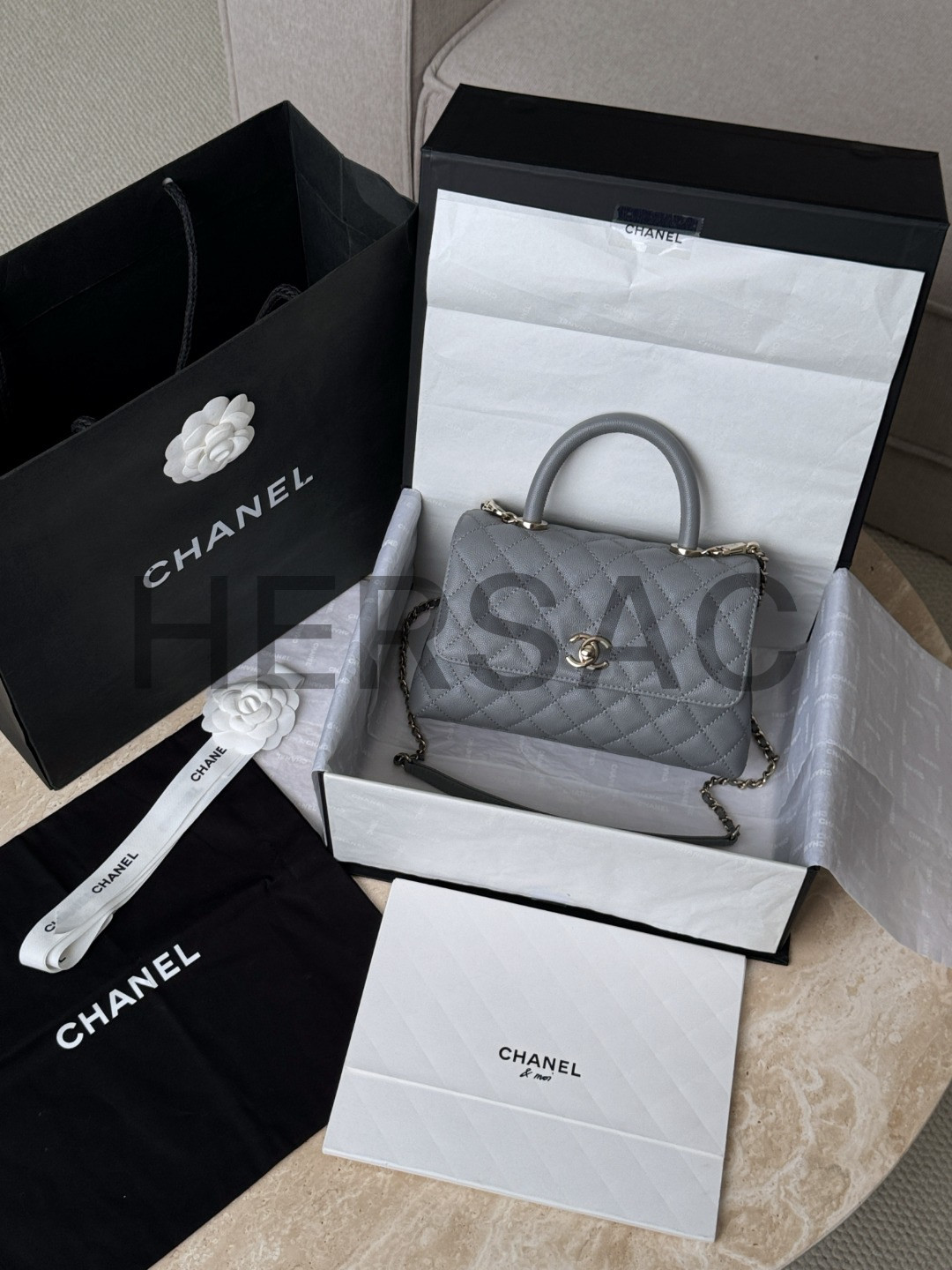 샤넬 핸들 장식의 플랩백 A92990-B05061-NG750