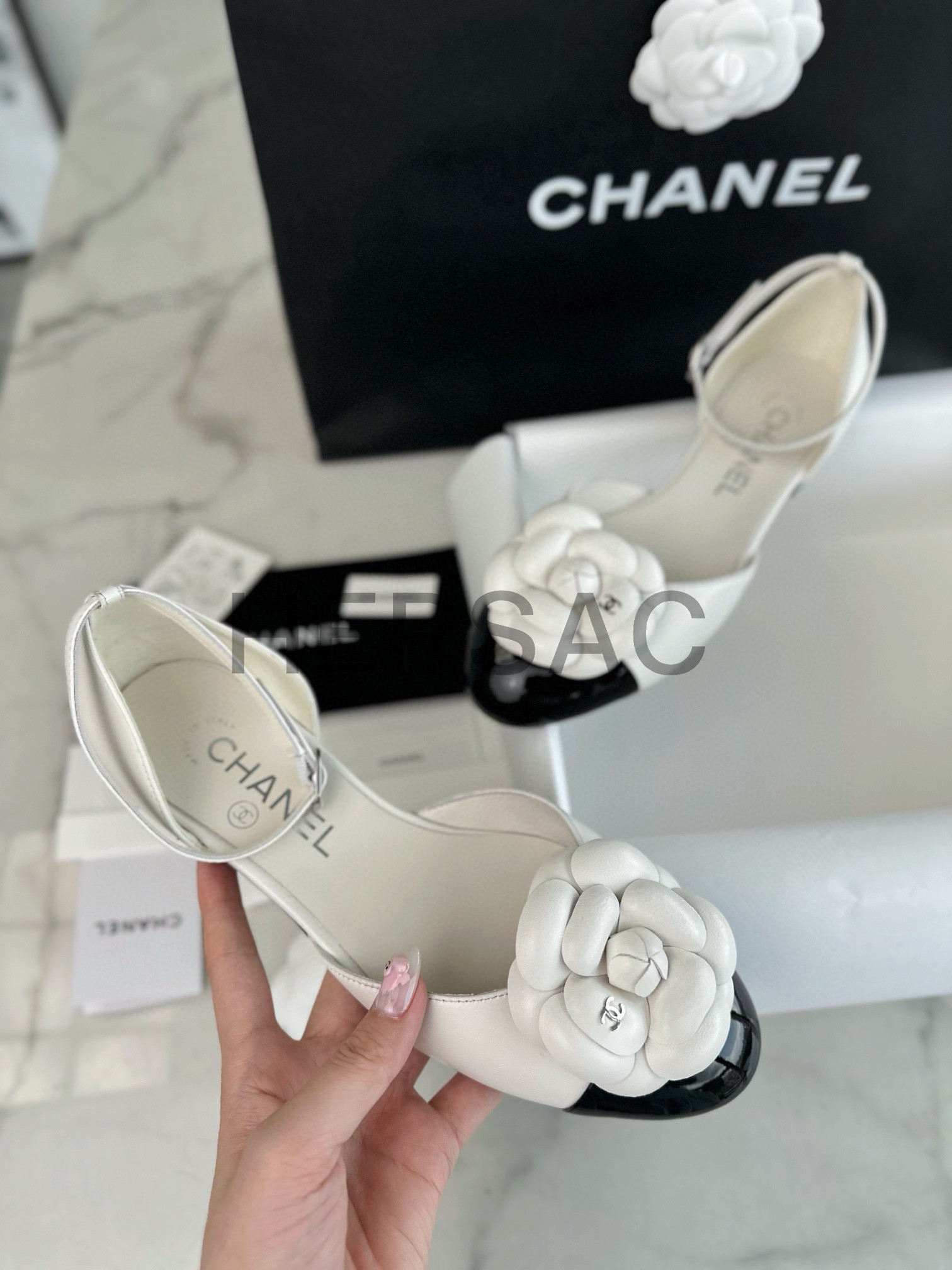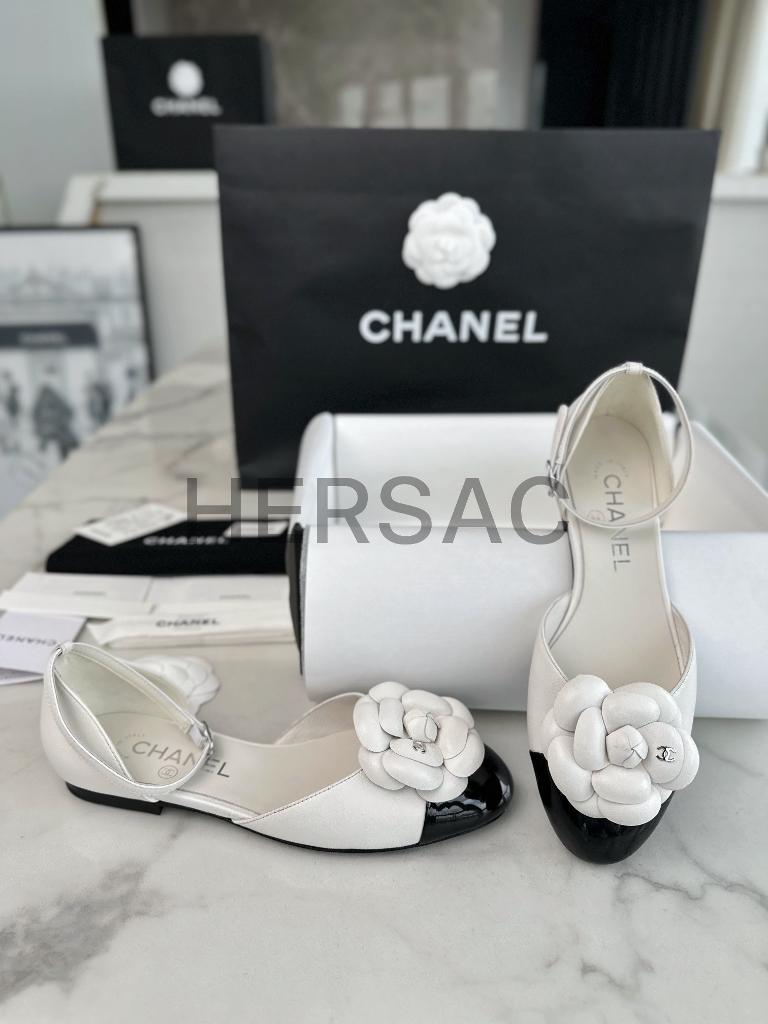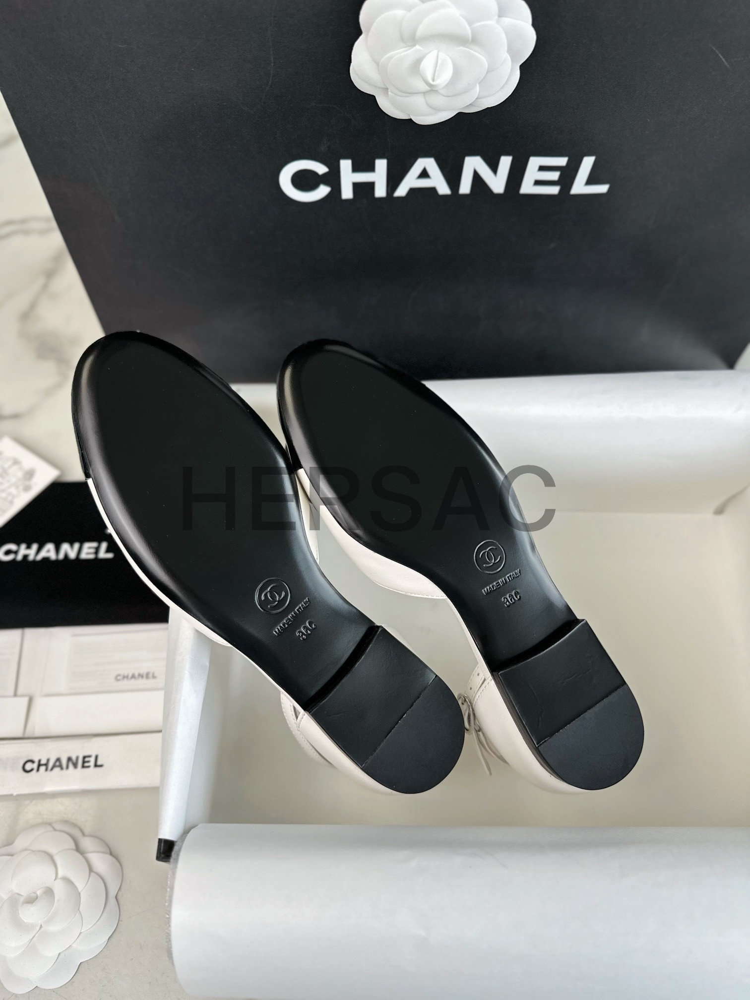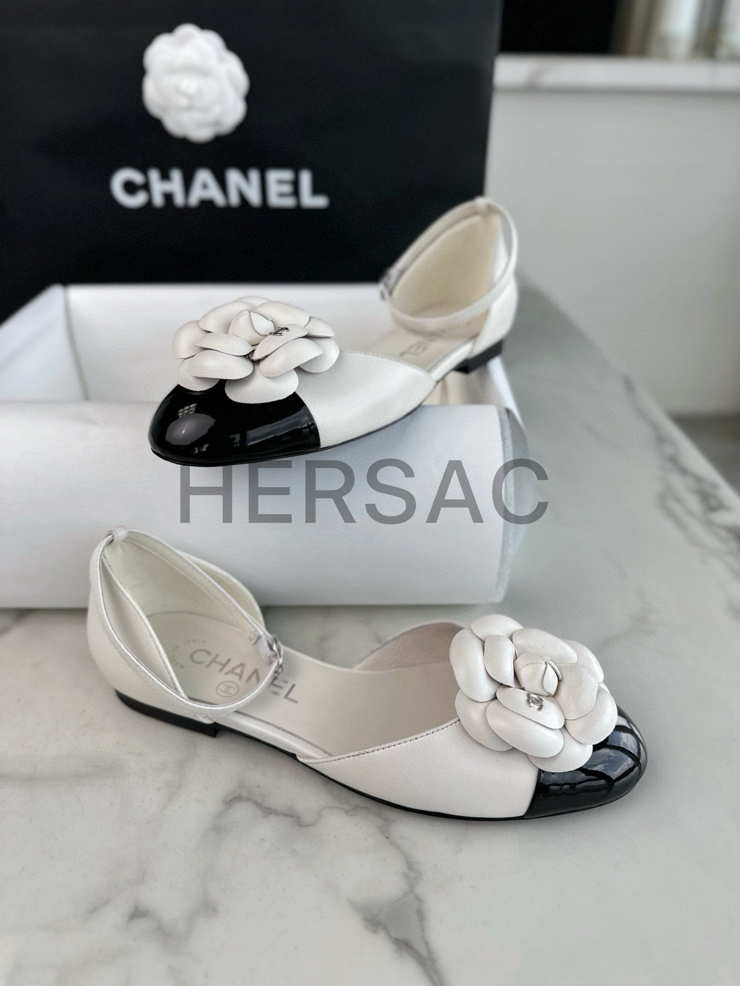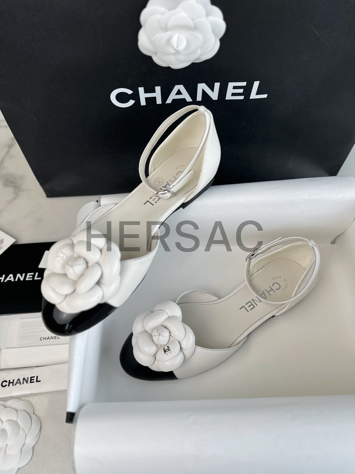 샤넬 까밀리아 메리제인 플랫 슈즈 G45497