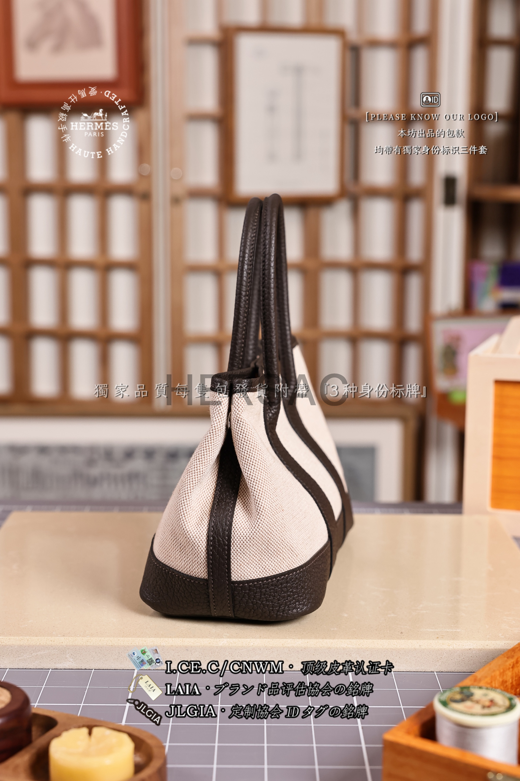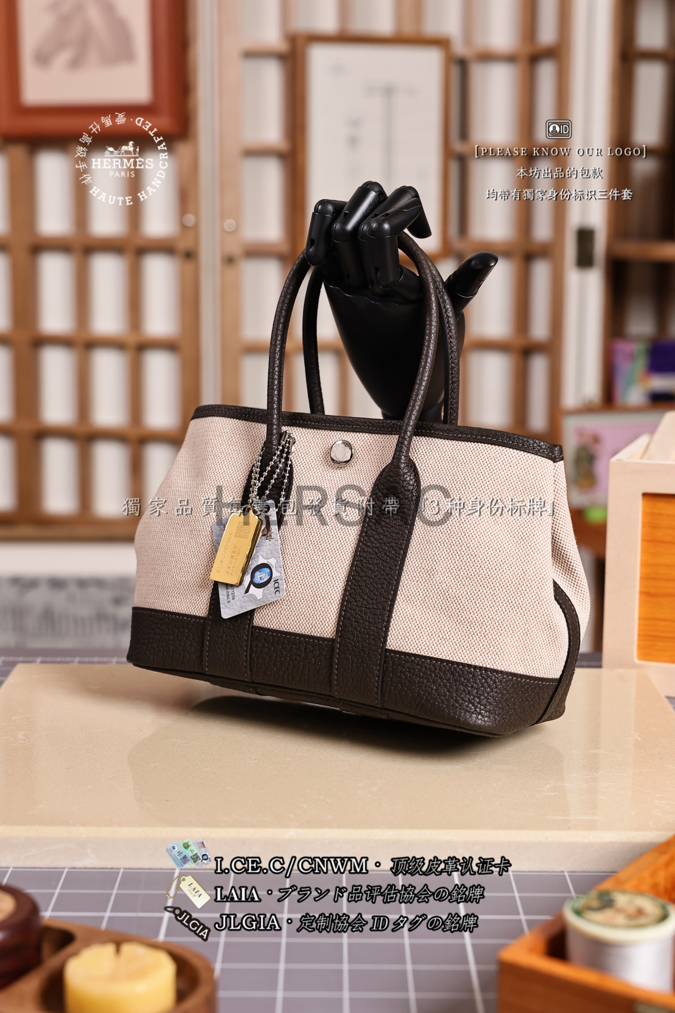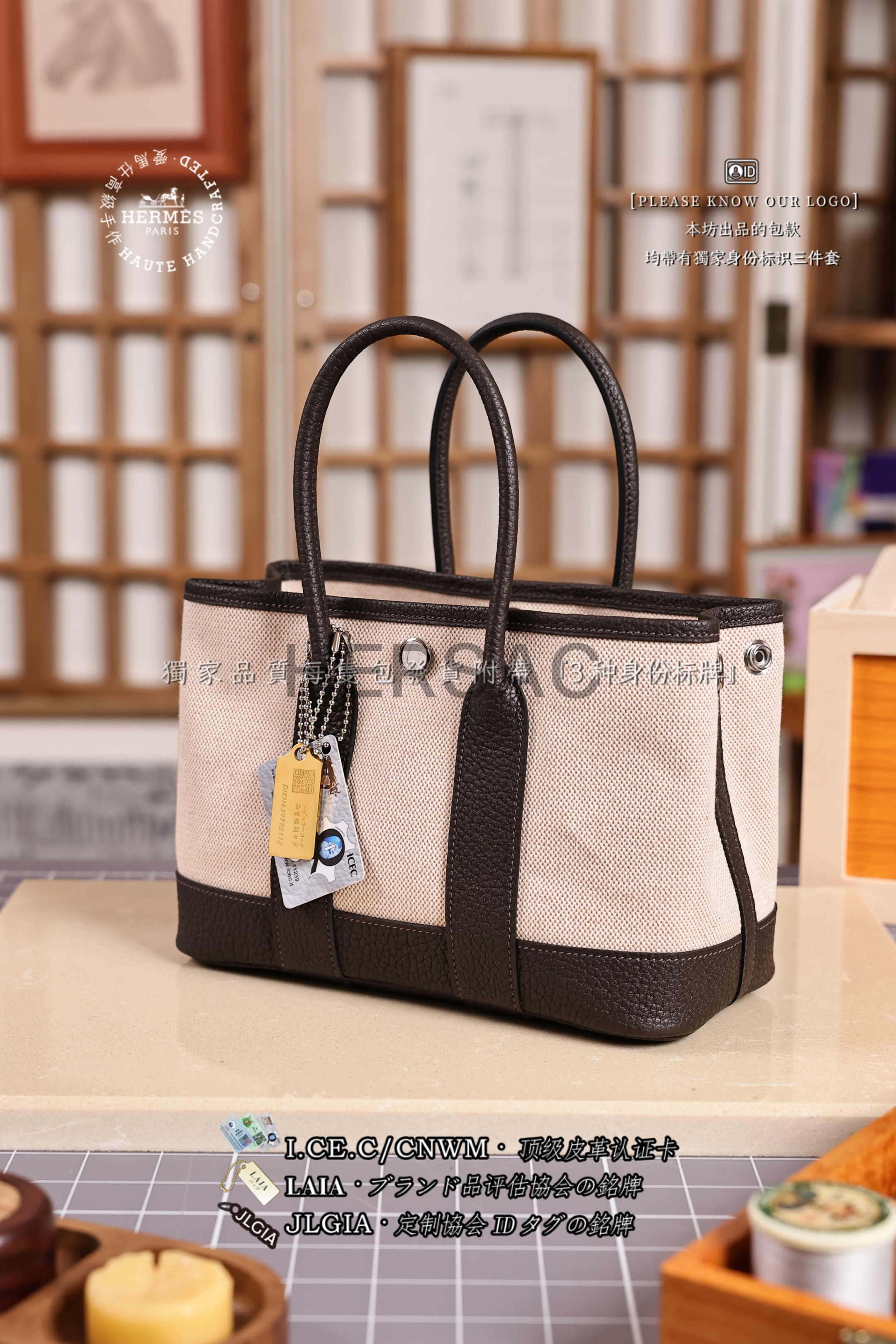 Hermes Mini Garden Party Toile Ebene Silver > Premium 토트백