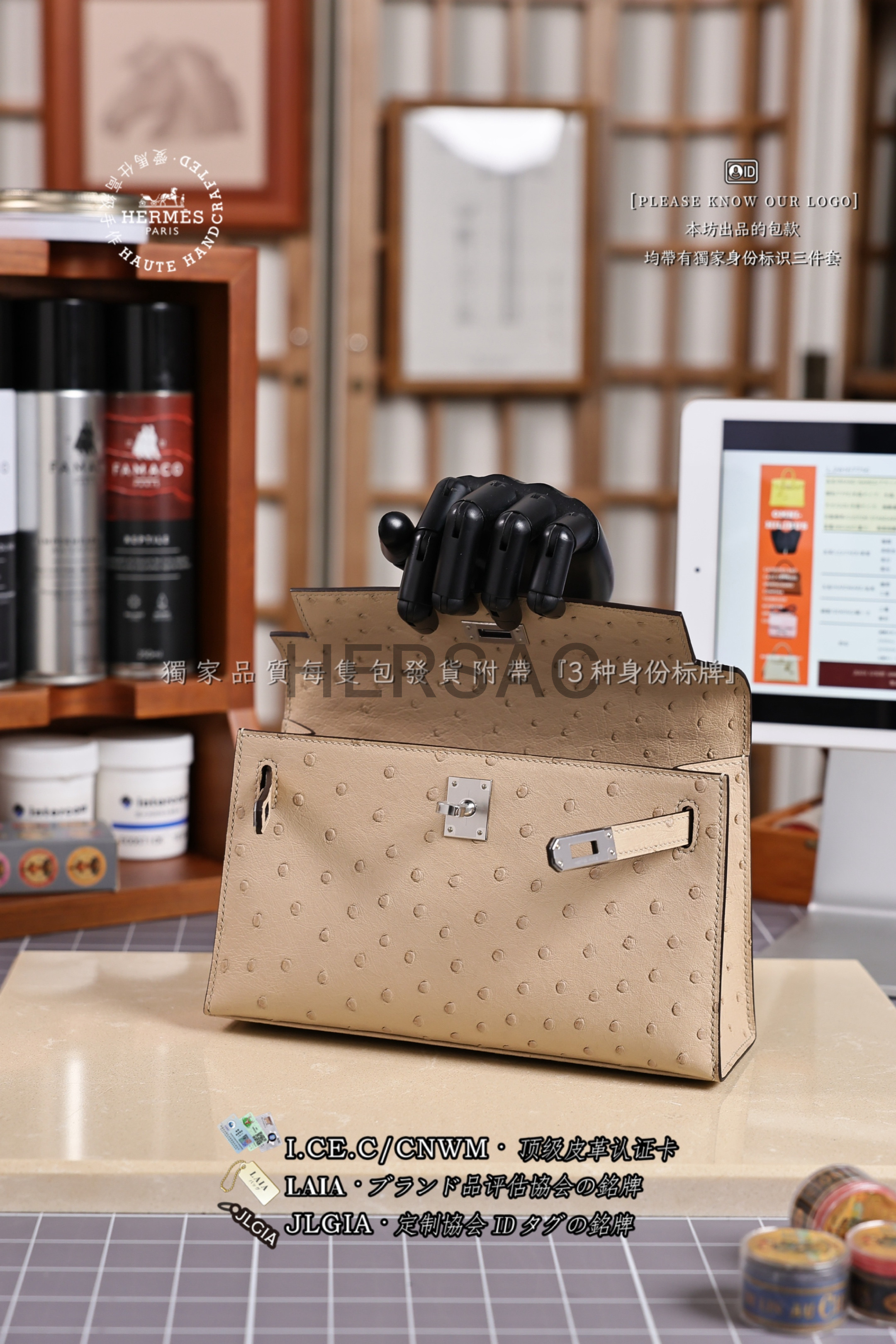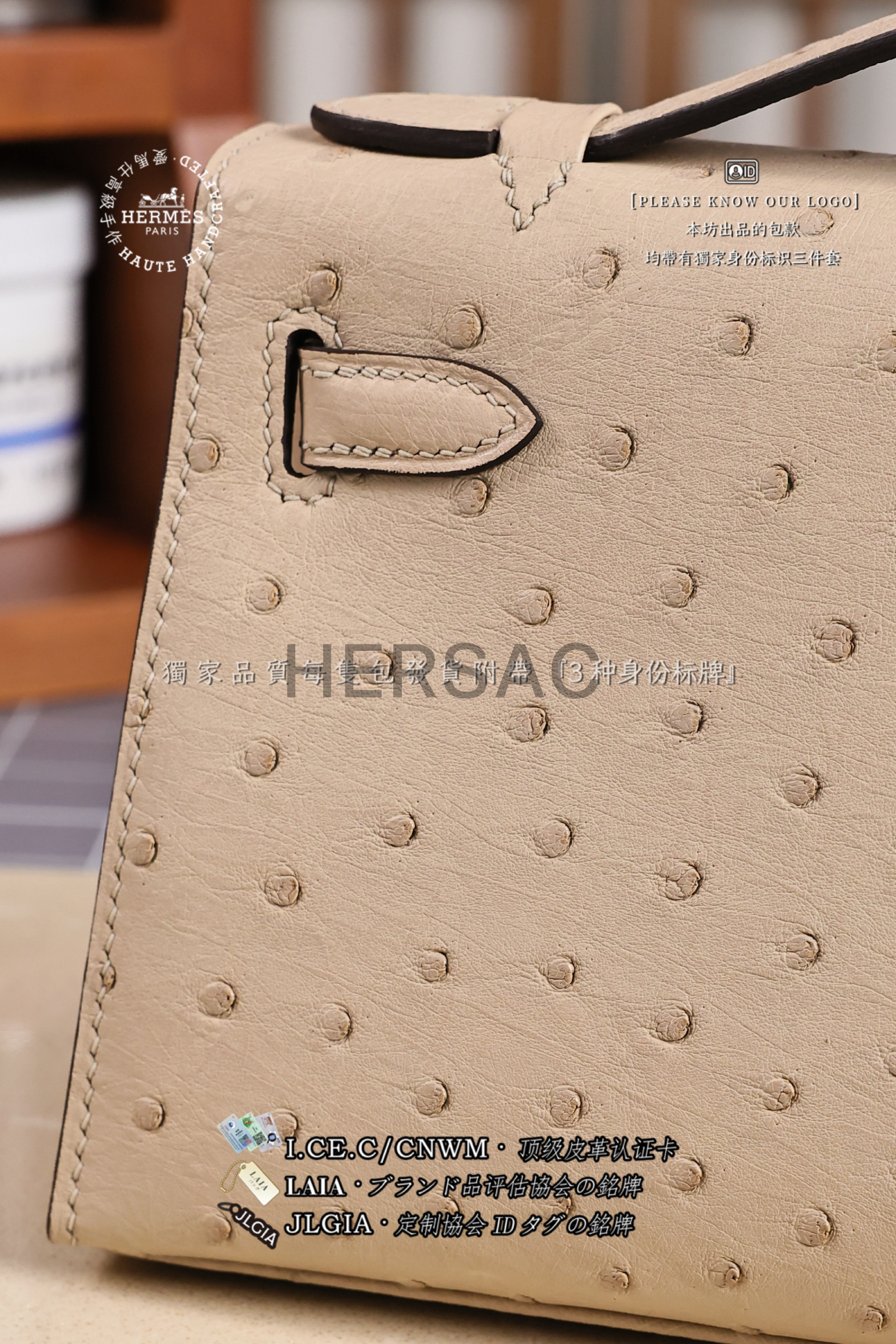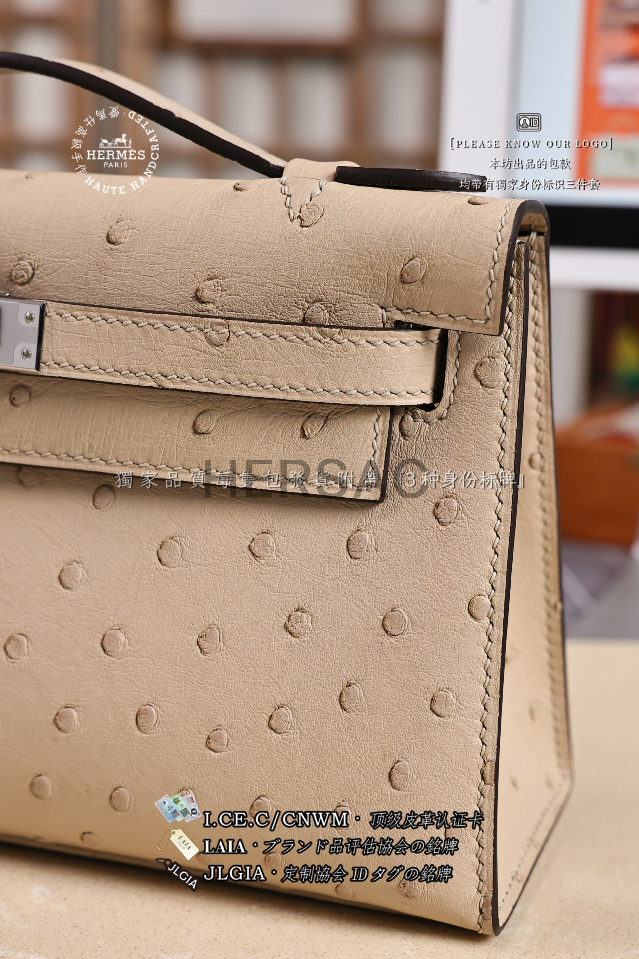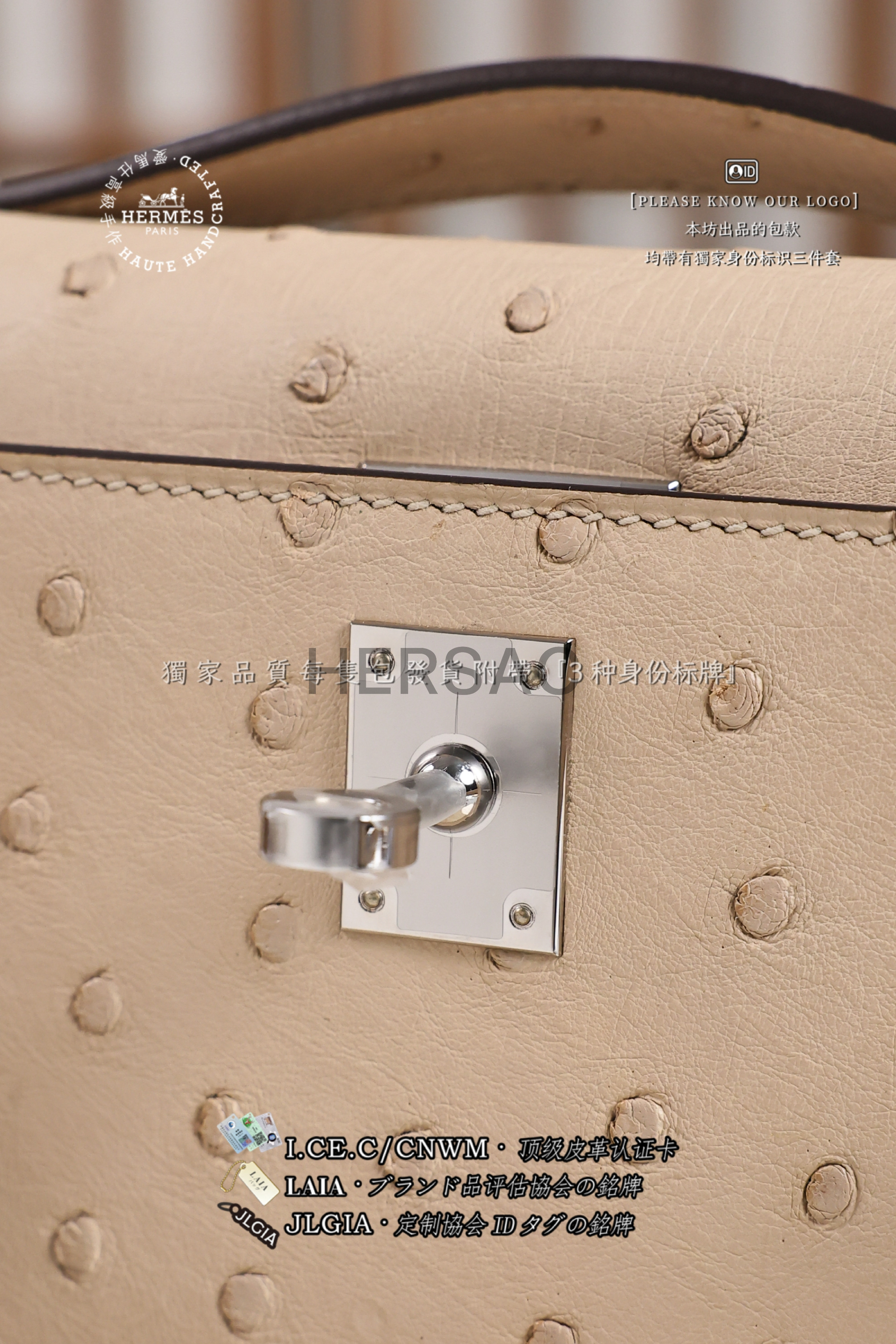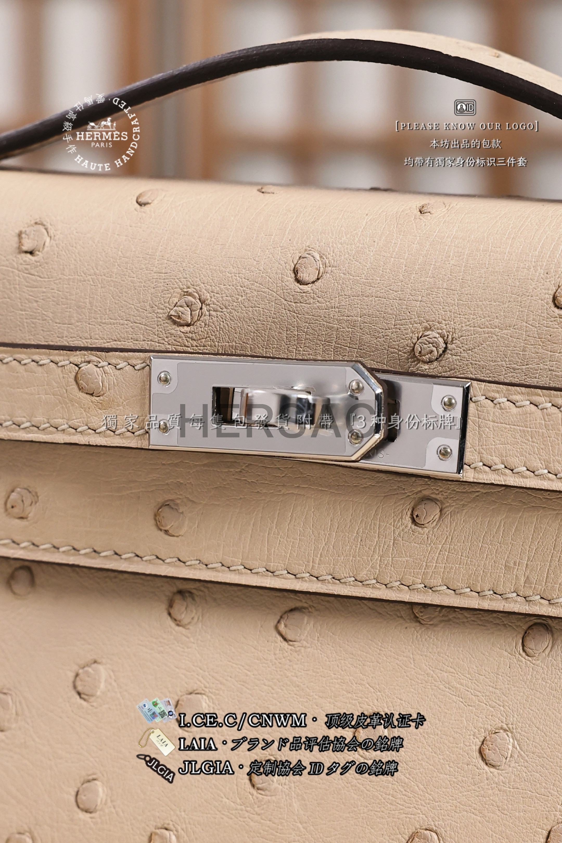 Hermes Mini Kelly I Ostrich Nata Silver > Premium 토트백