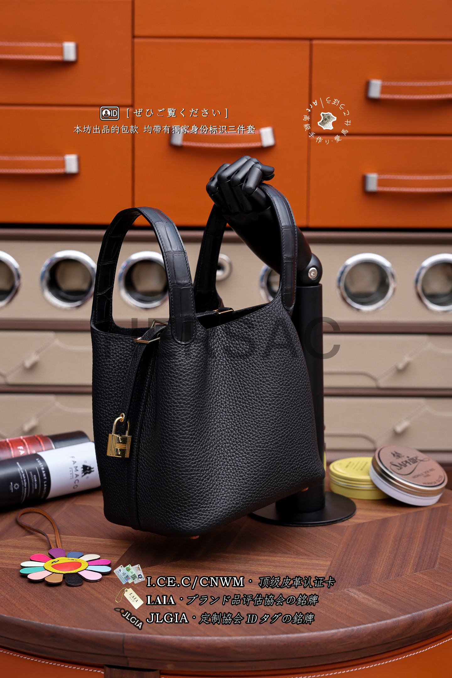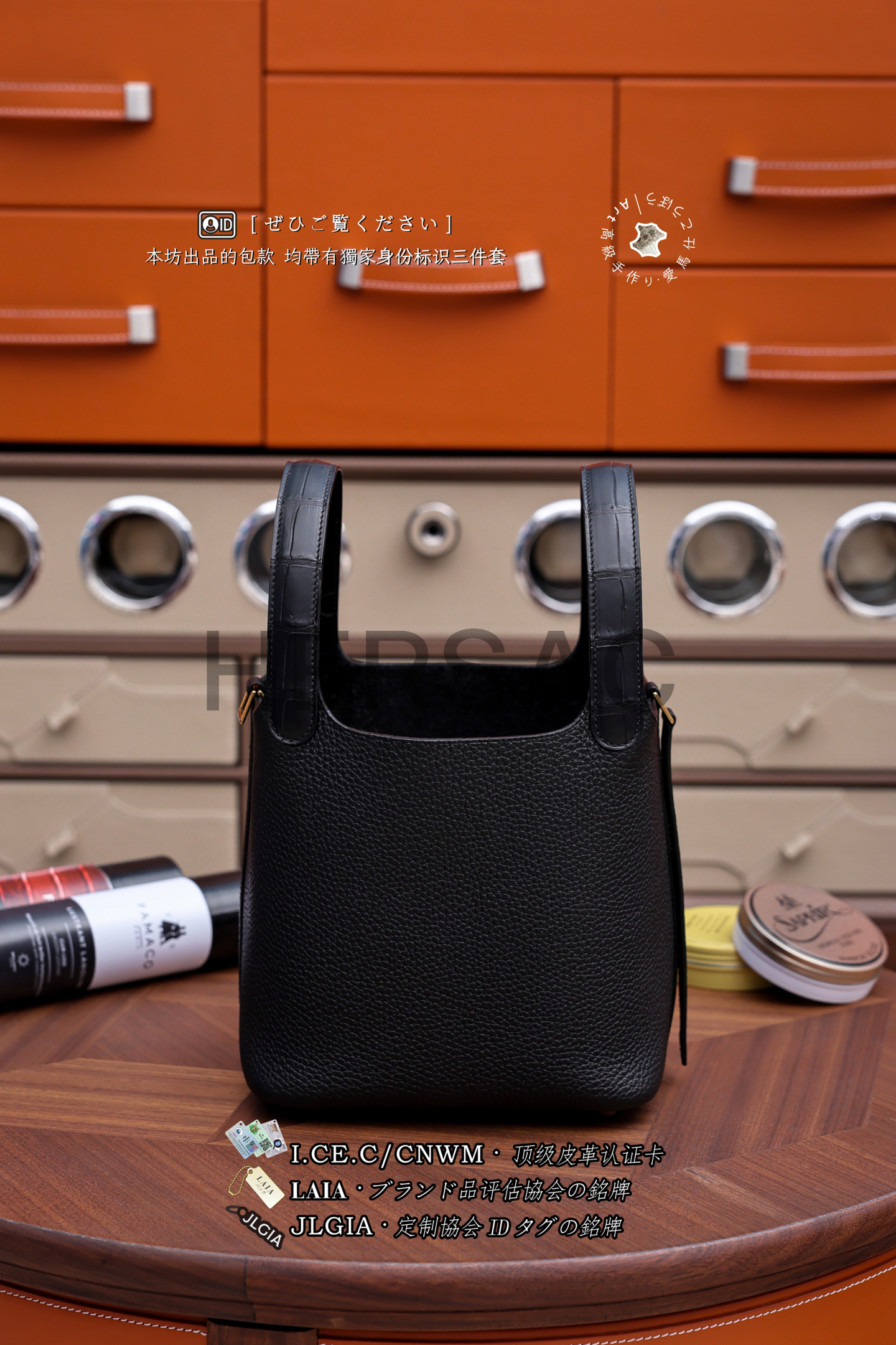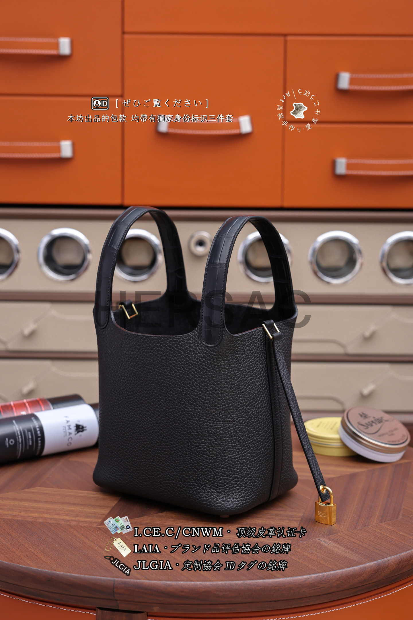 에르메스 피코탄 PM 18 매트 엘리게이터 끌레망스 블랙 골드 H073582CCAB