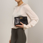 에르메스 미니 켈리 I 엘리게이터 블랙 골드 H045427CC89