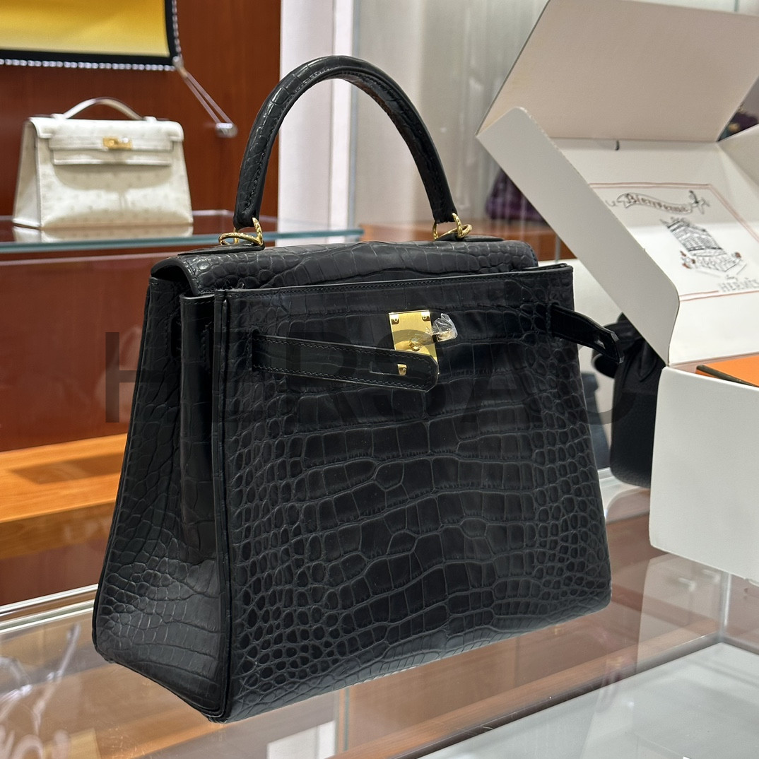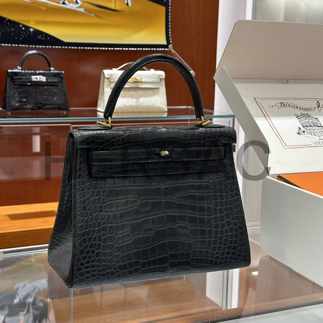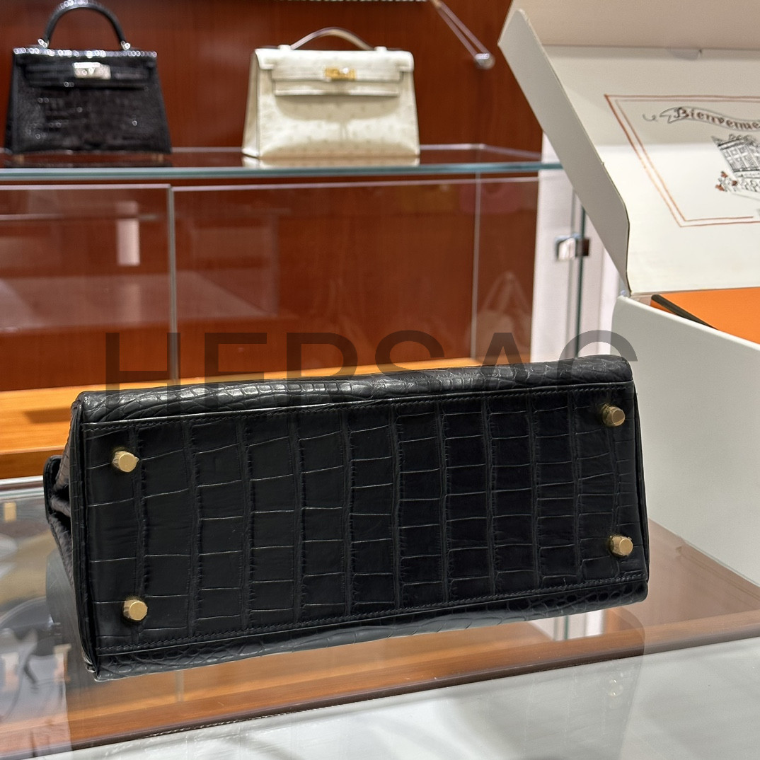 에르메스 켈리 25 엘리게이터 블랙 골드 H035942CC89