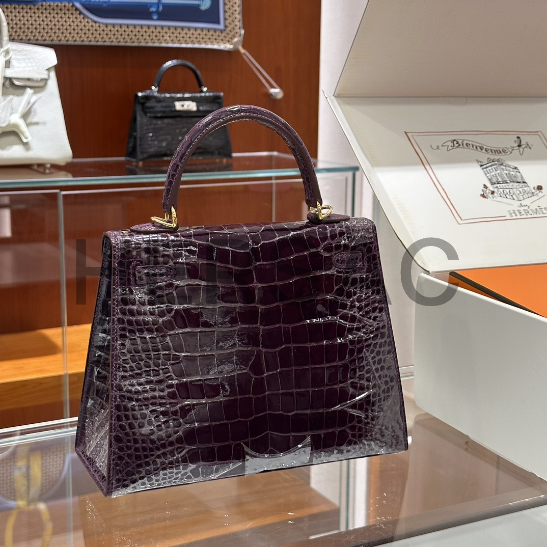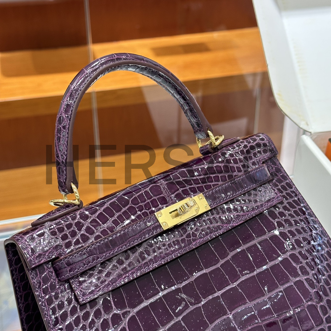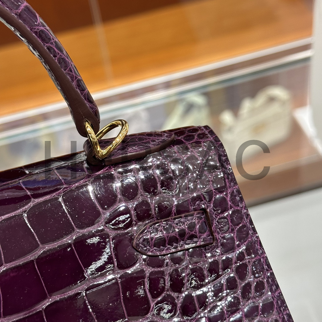 에르메스 켈리 25 엘리게이터 애머시스트 골드