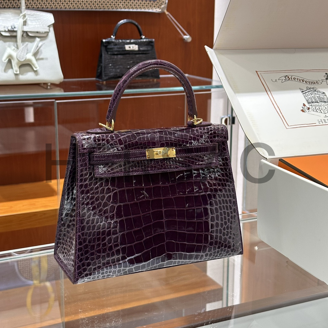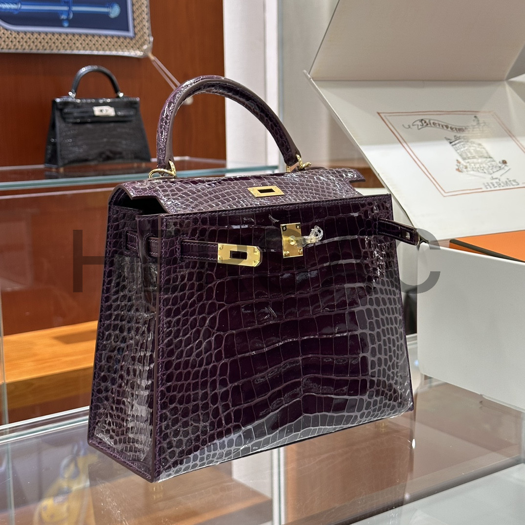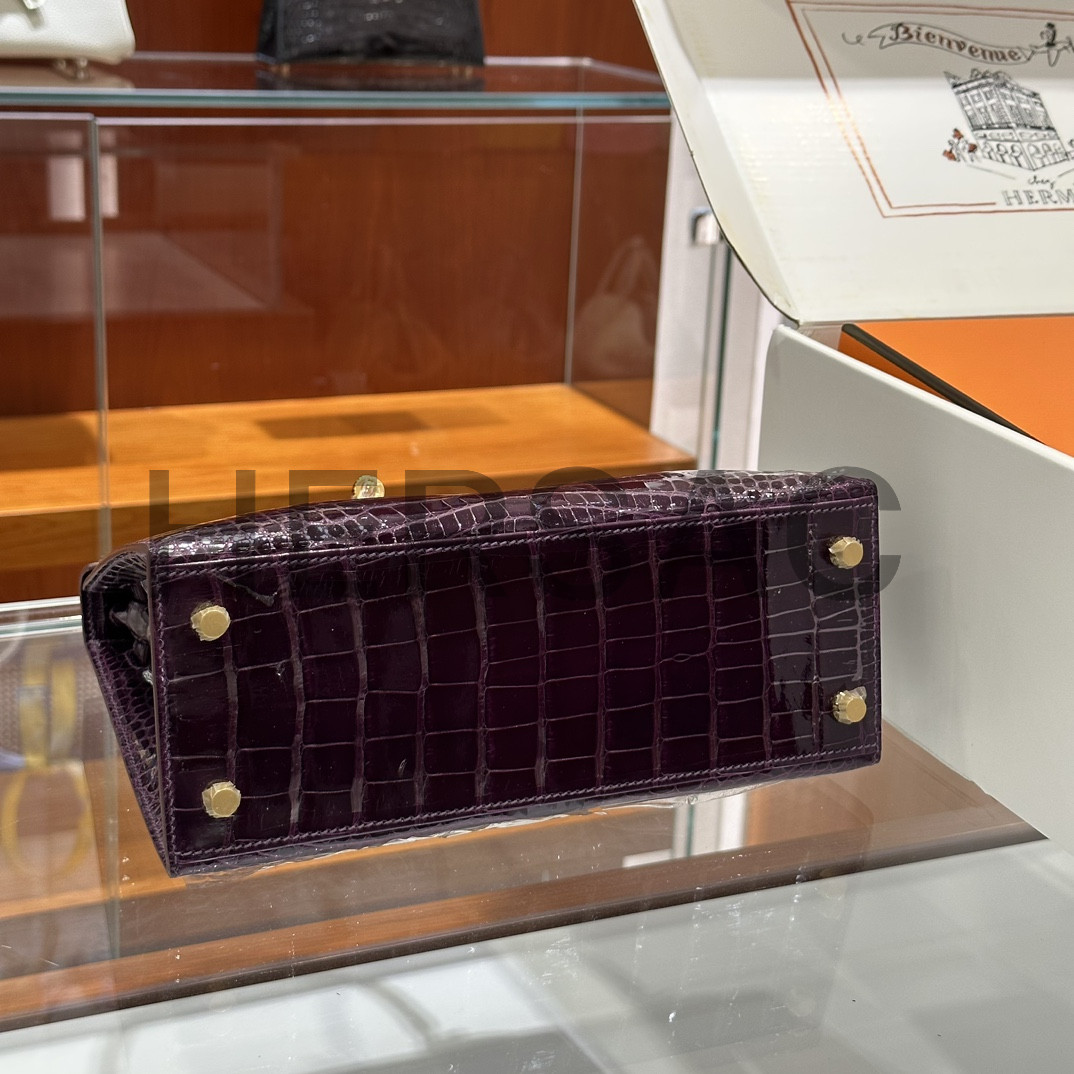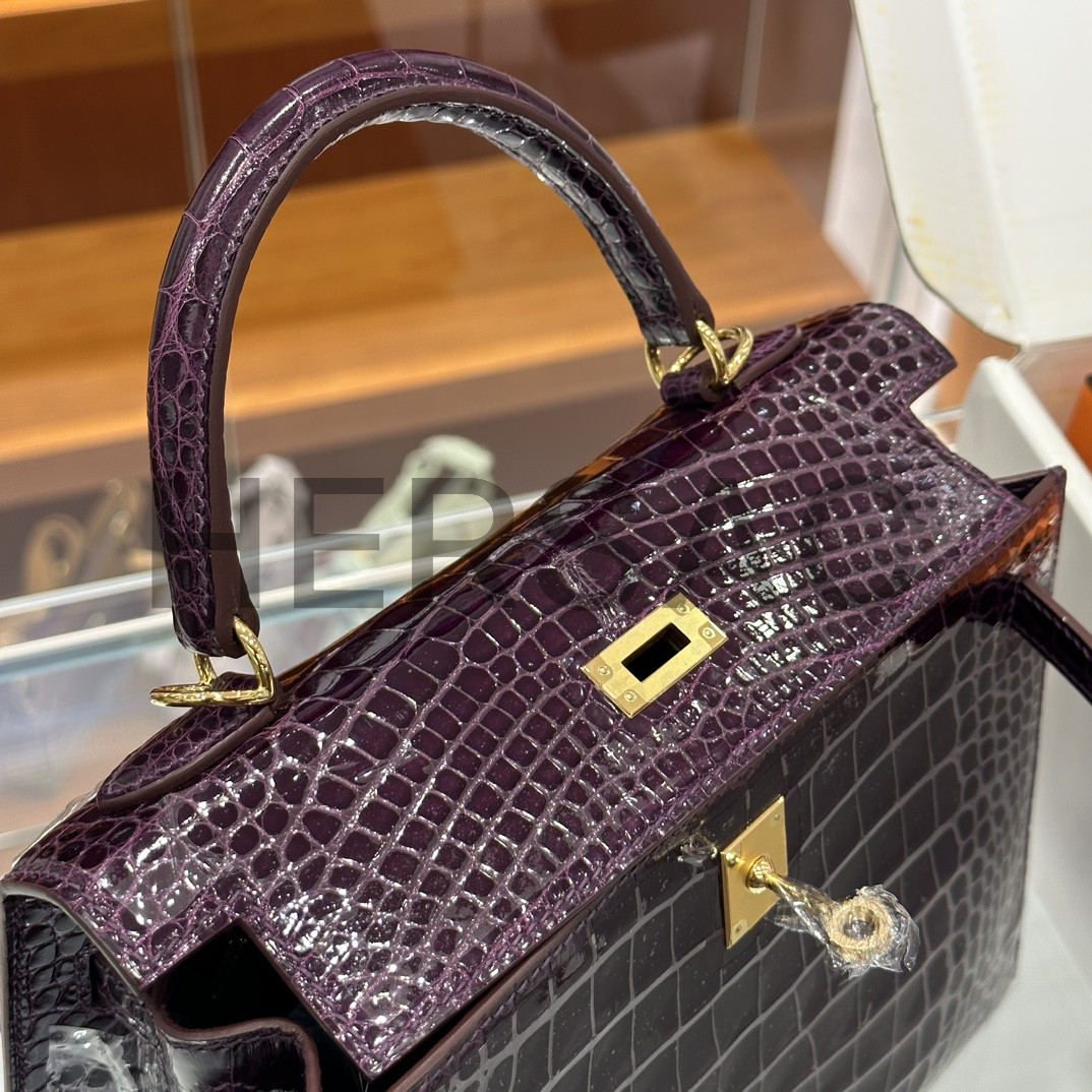 에르메스 켈리 25 엘리게이터 애머시스트 골드