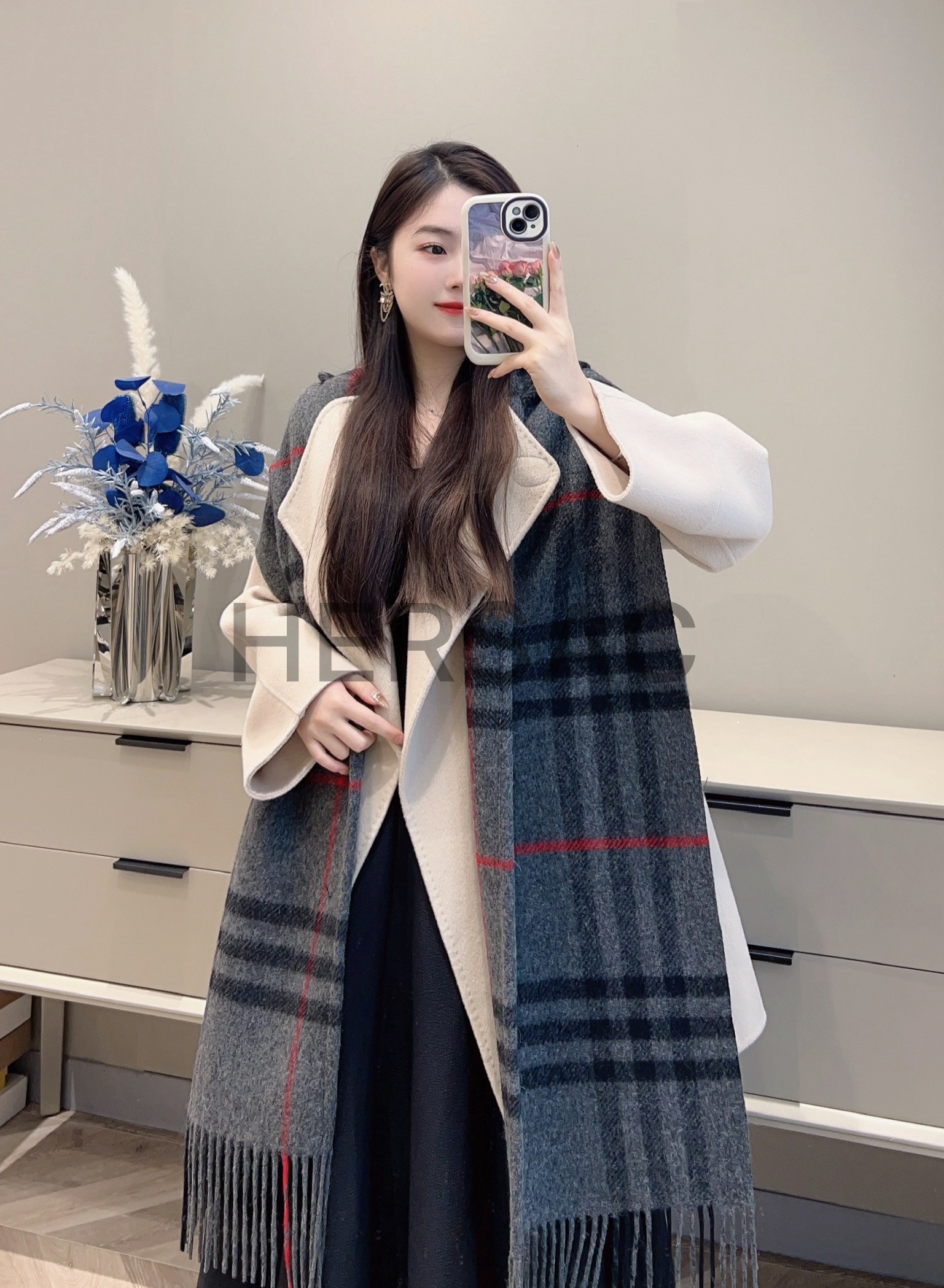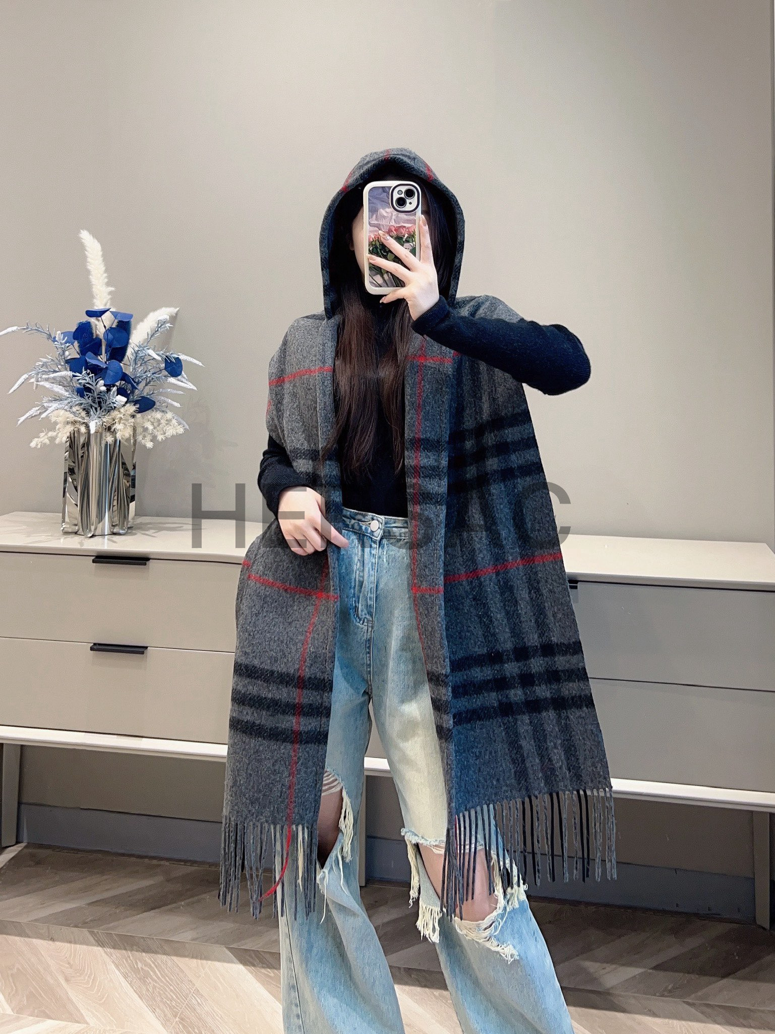 버버리 체크 울 캐시미어 후드 머플러 80776391