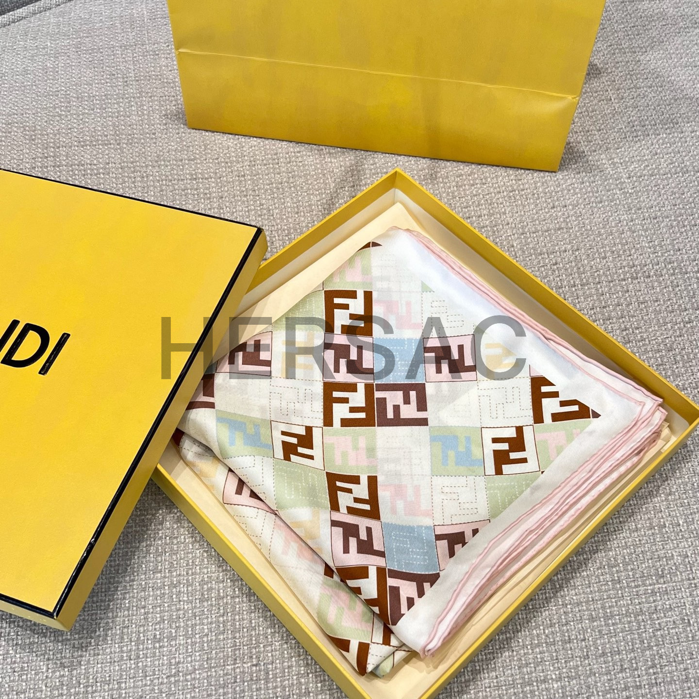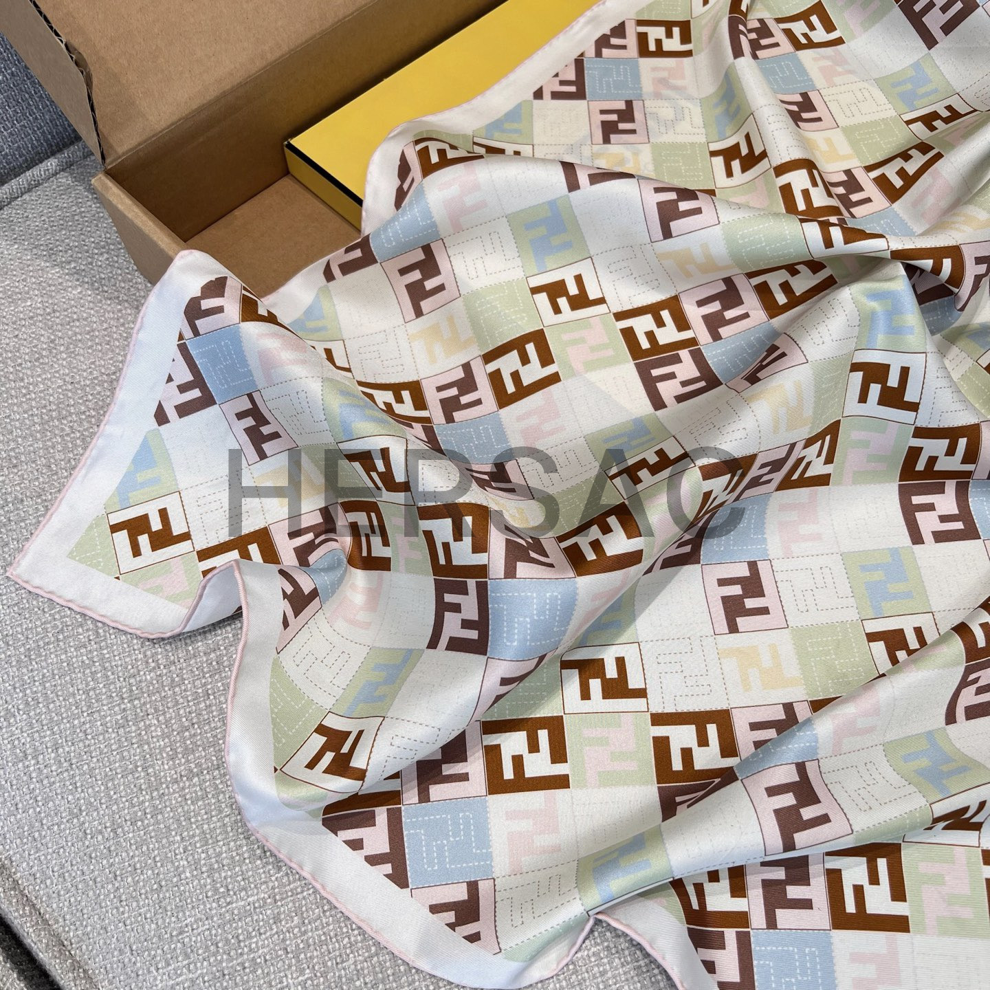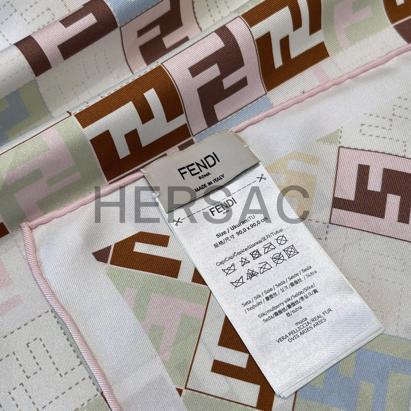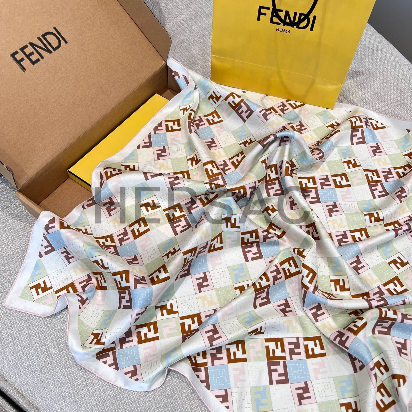 펜디 베이지 컬러의 실크 스카프 FXT091AUMDF0VG2