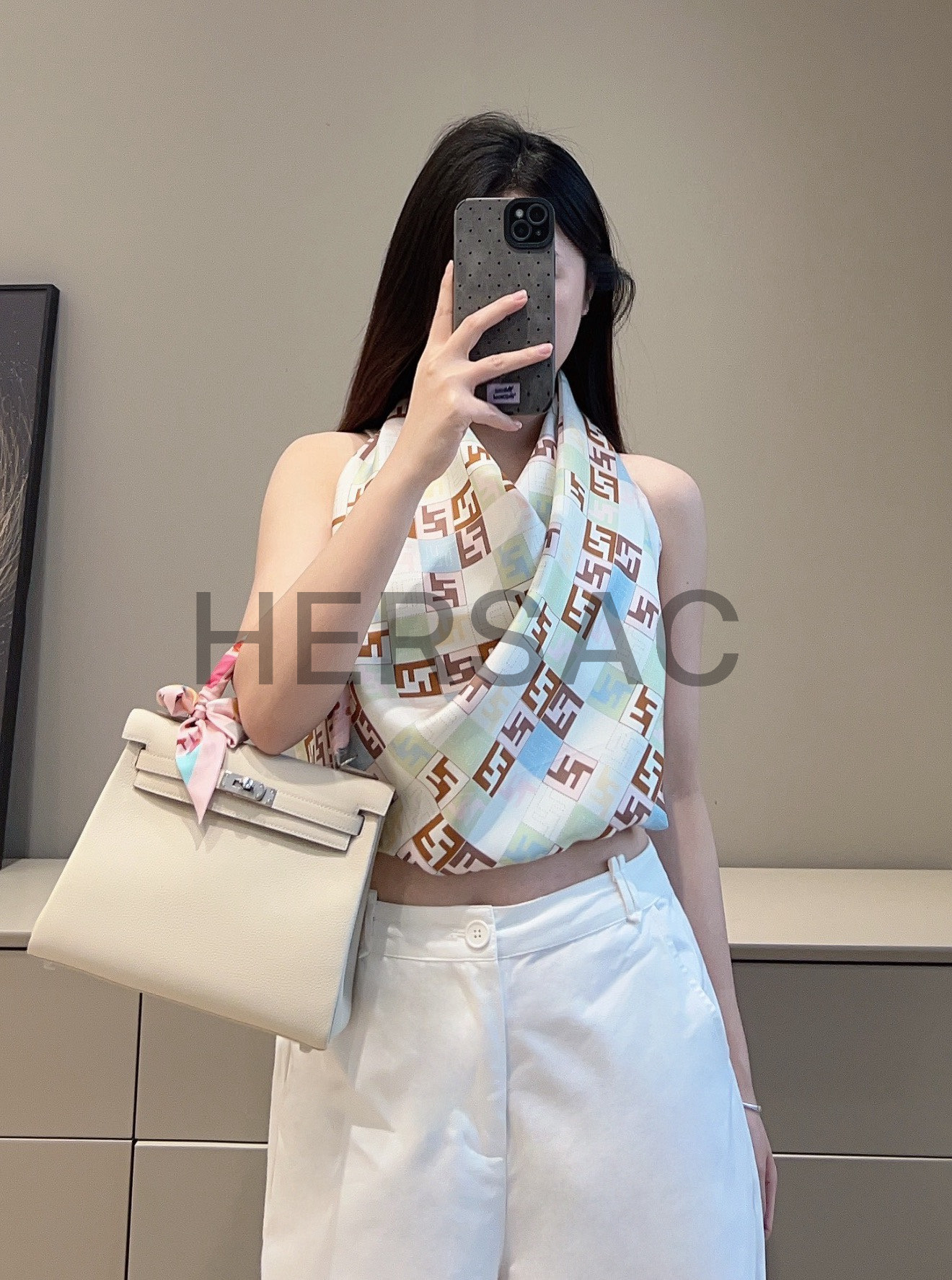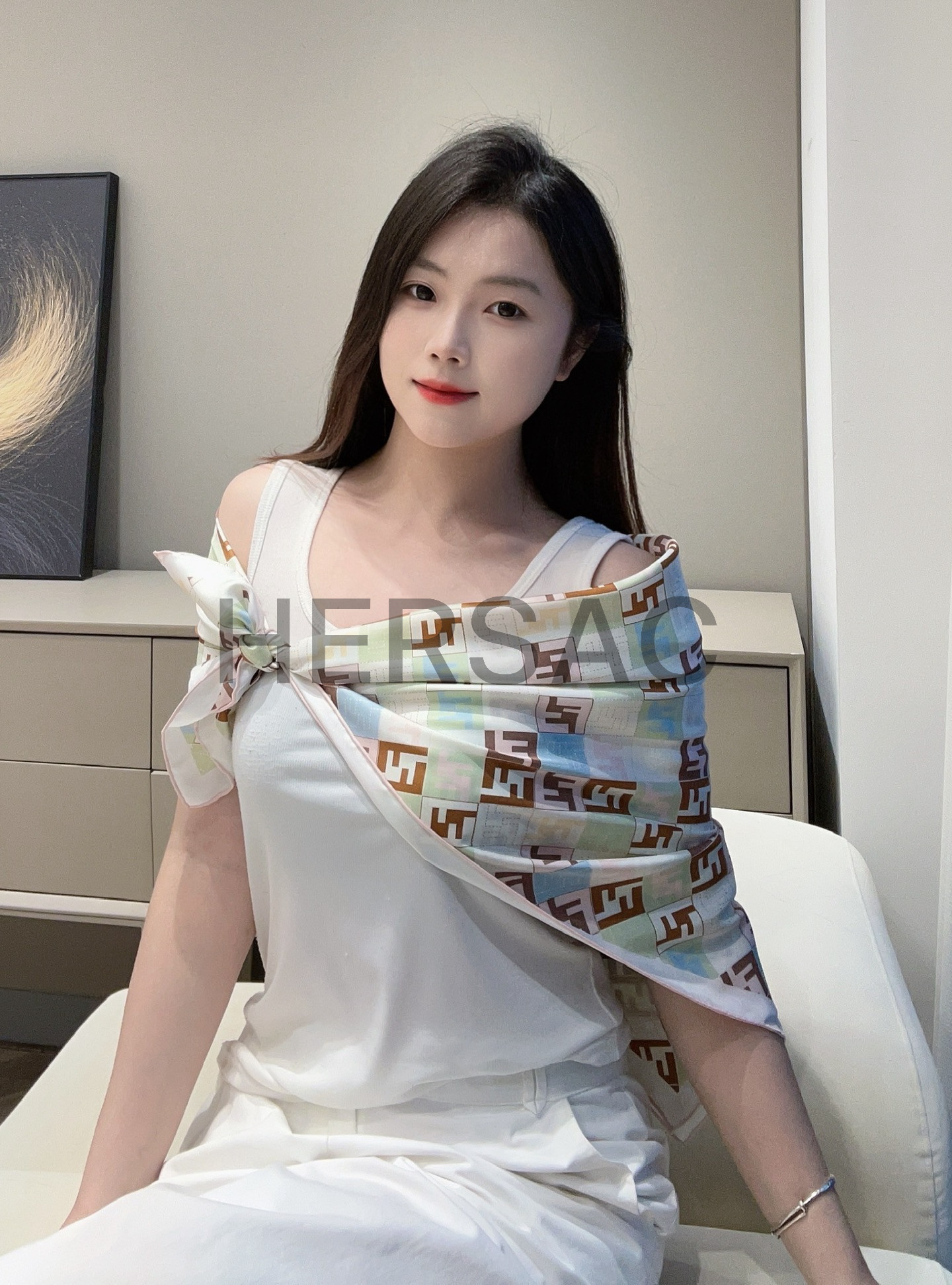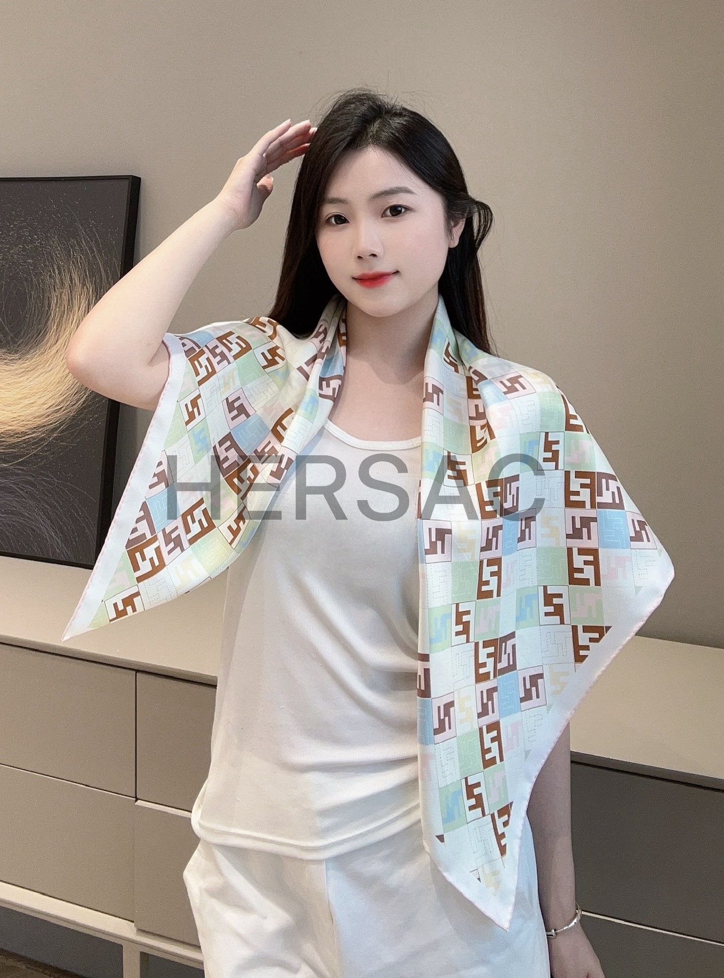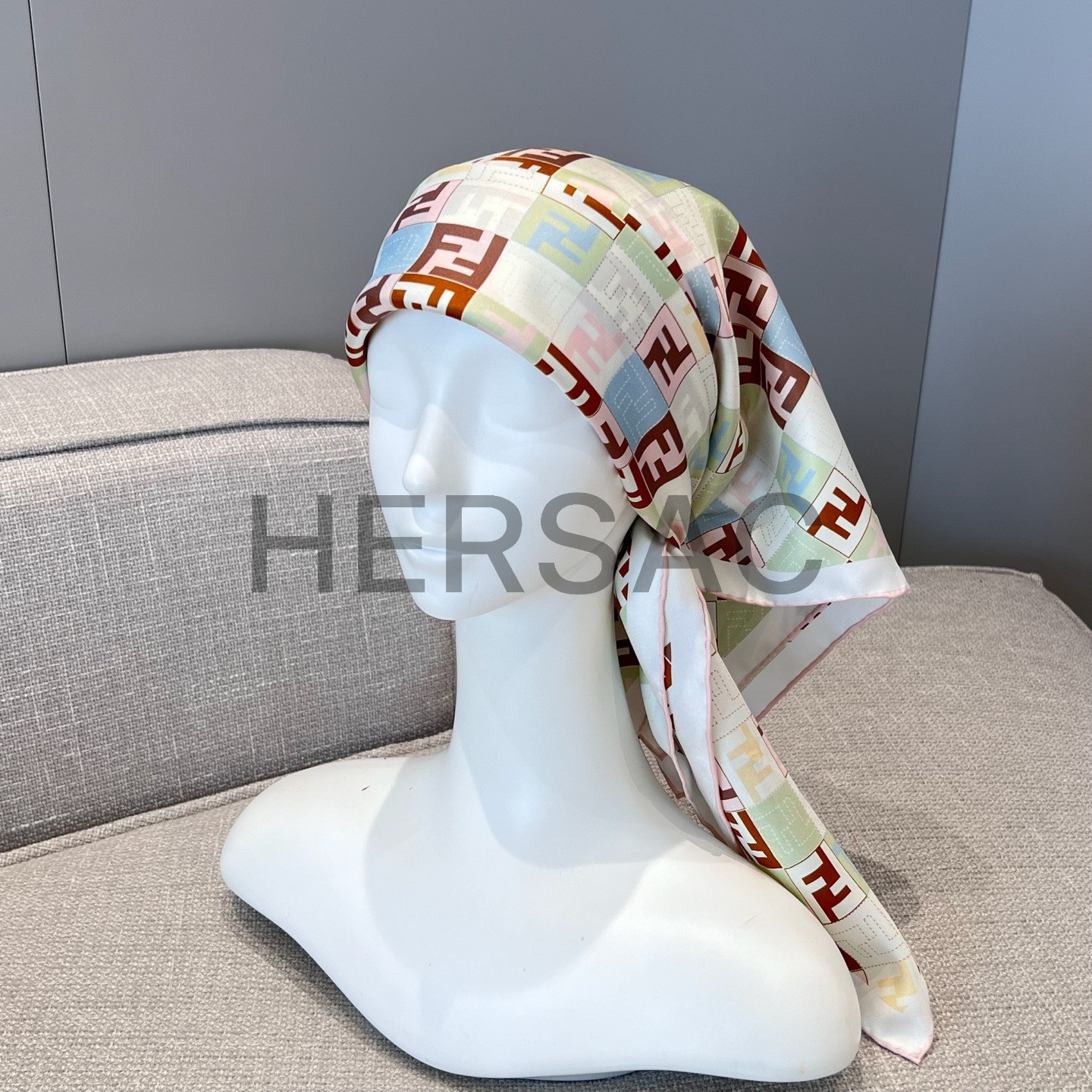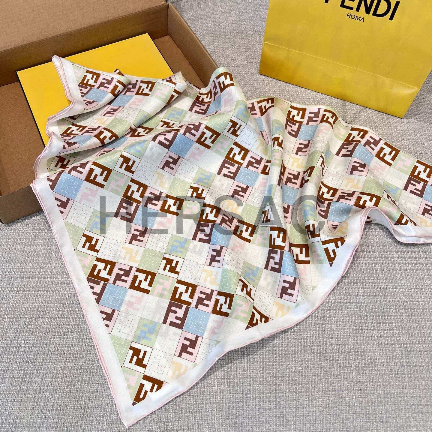 펜디 베이지 컬러의 실크 스카프 FXT091AUMDF0VG2