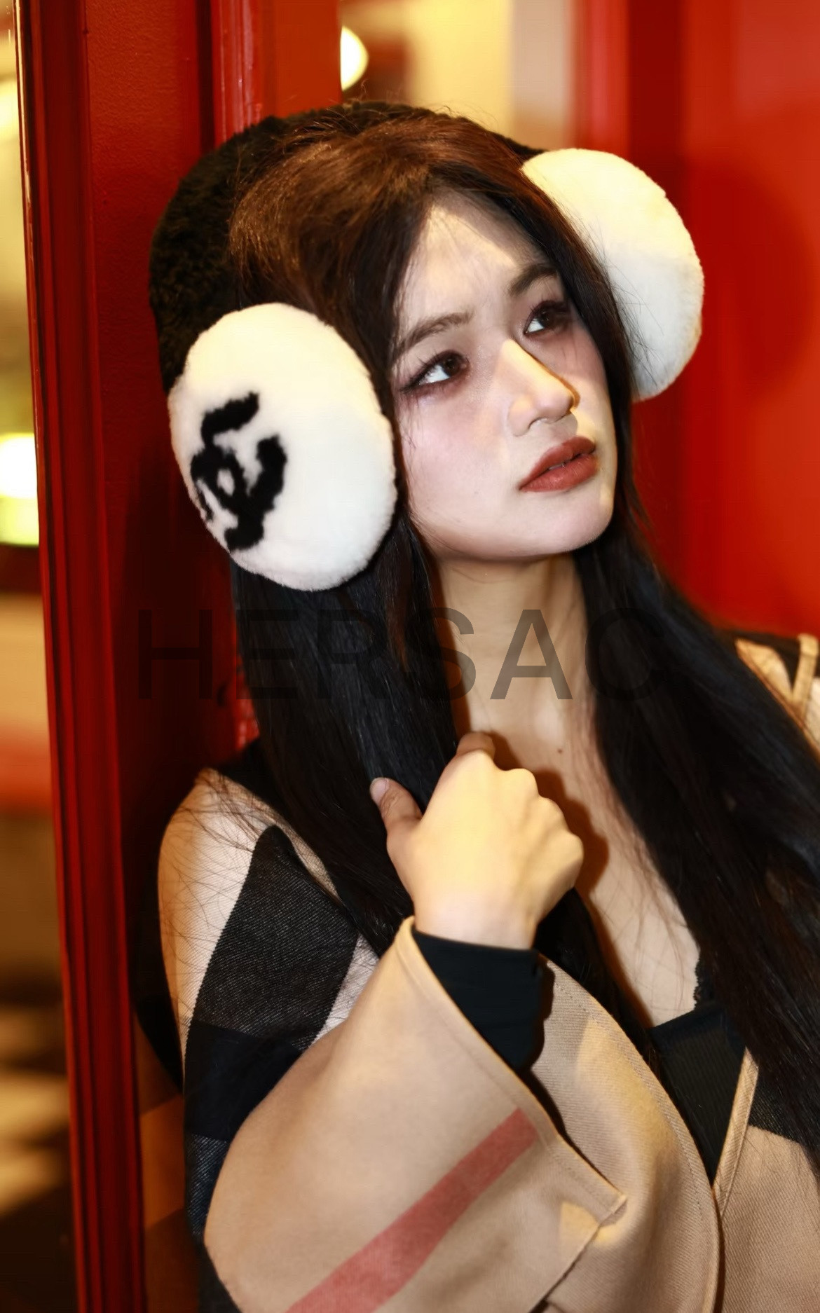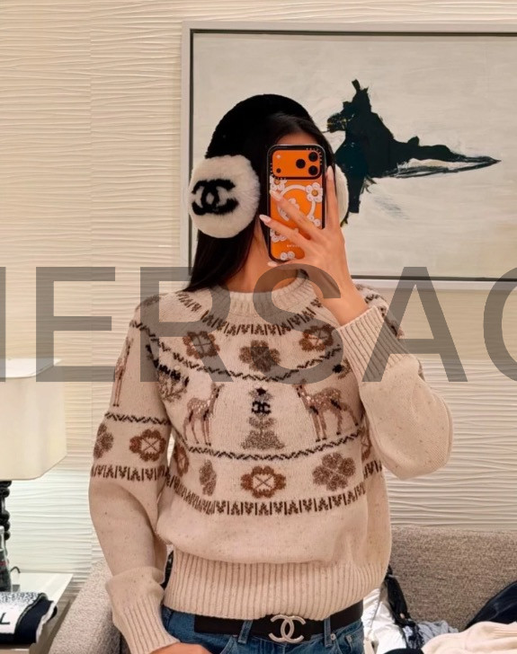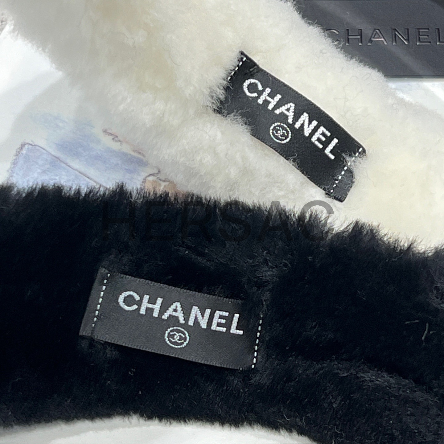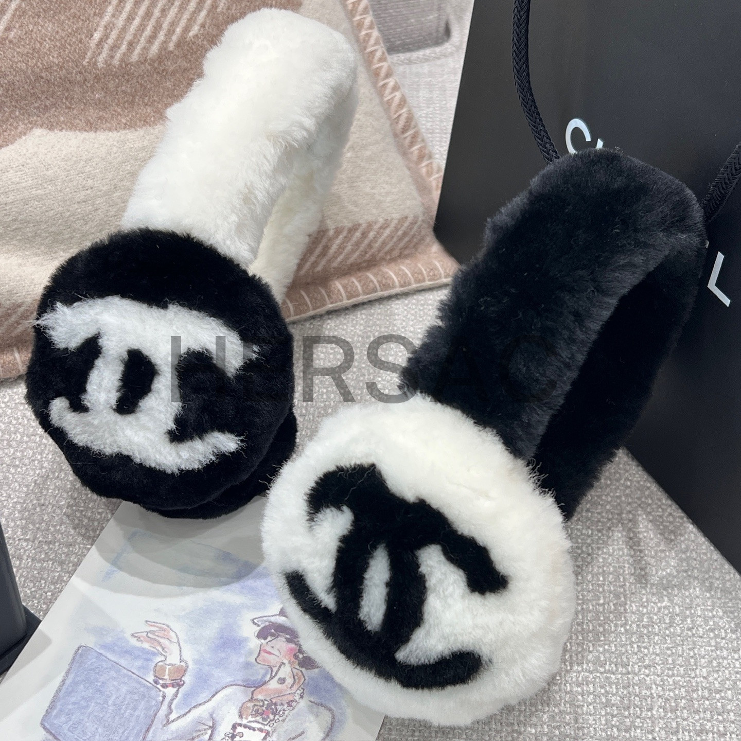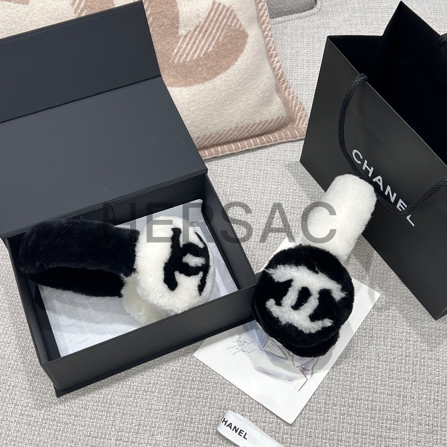 샤넬 2025/26 코코 네쥬 컬렉션 귀마개 시어링 램스킨 에크루 블랙 AAB261-B21473-U2759
