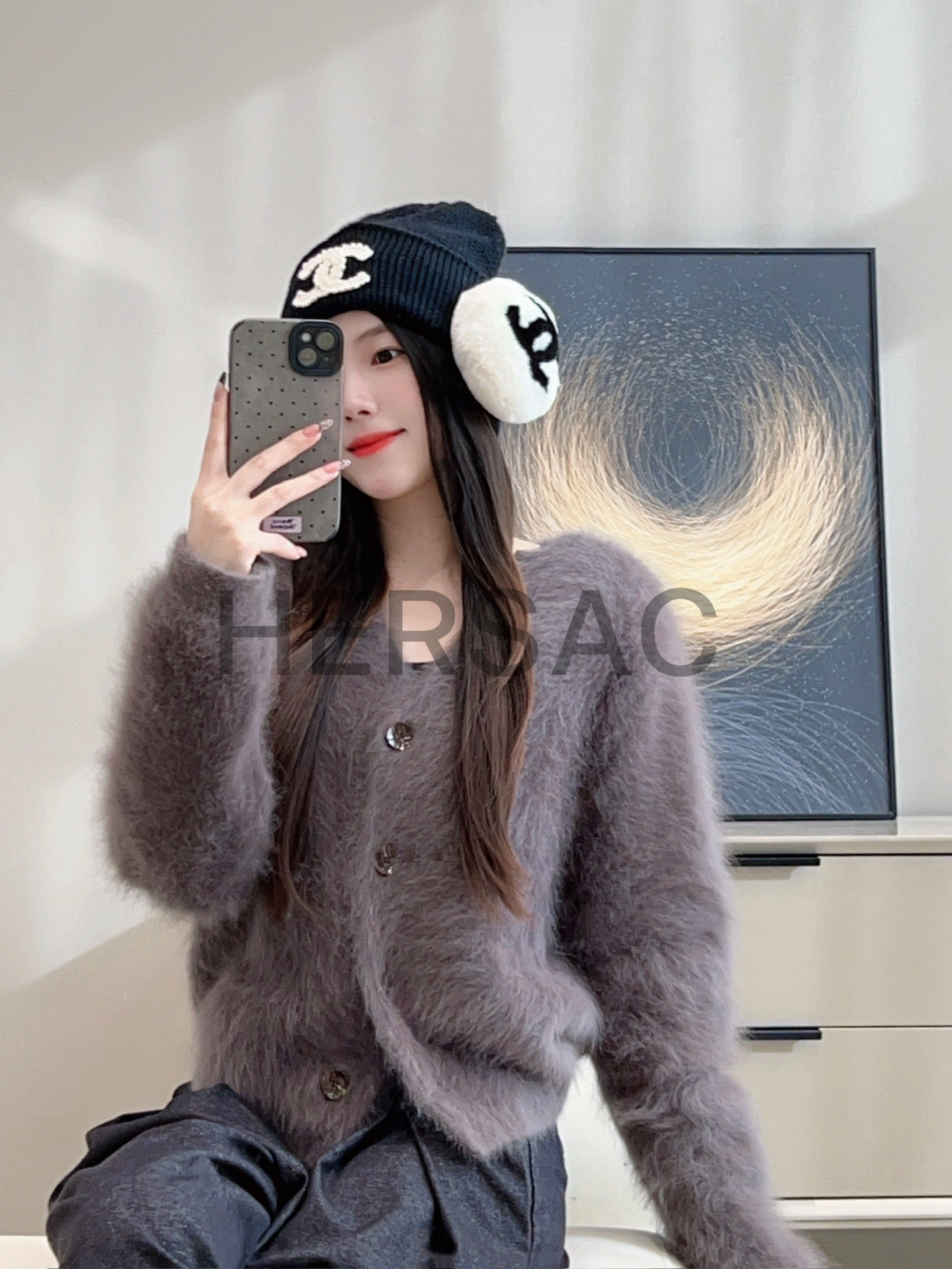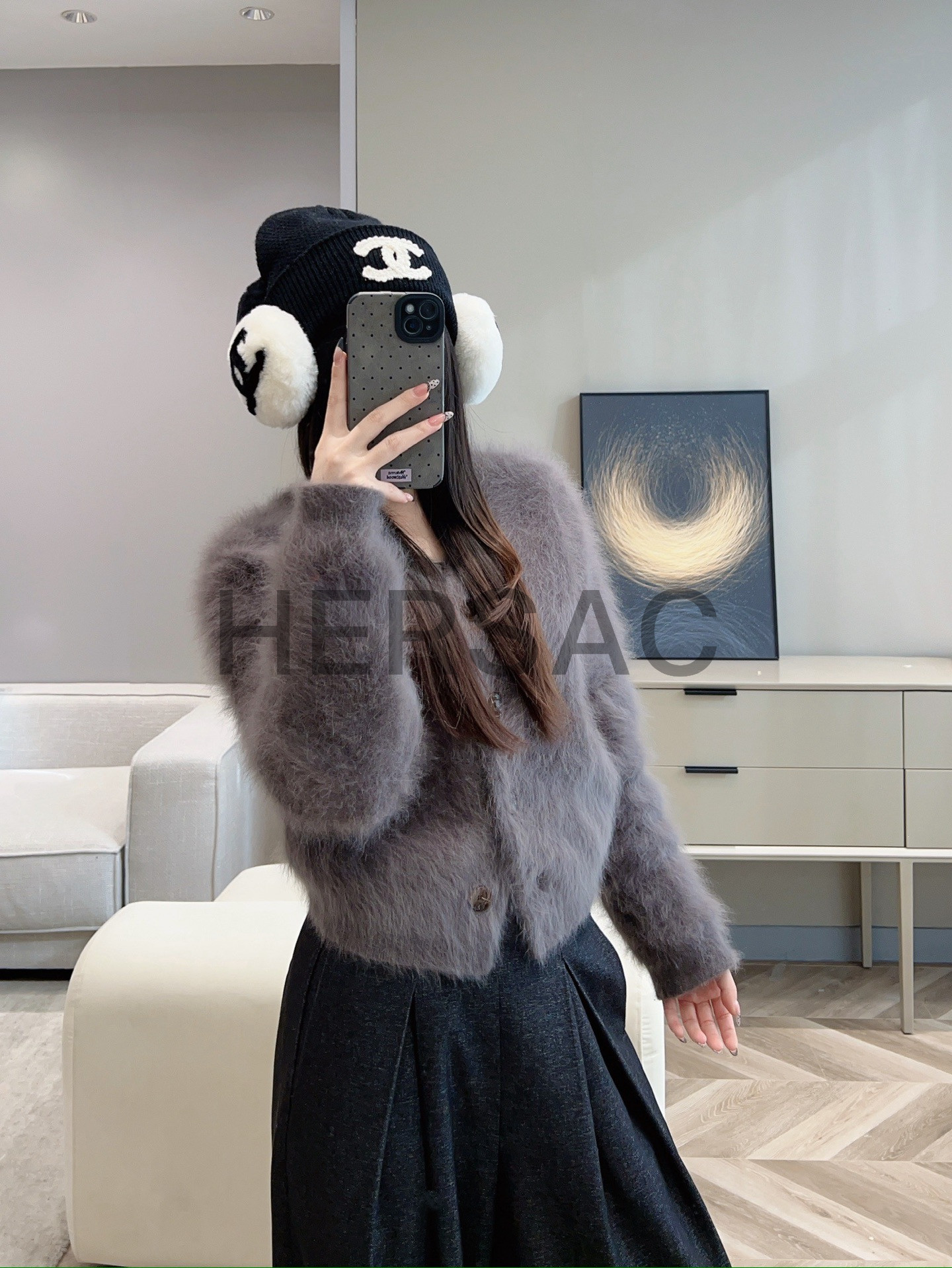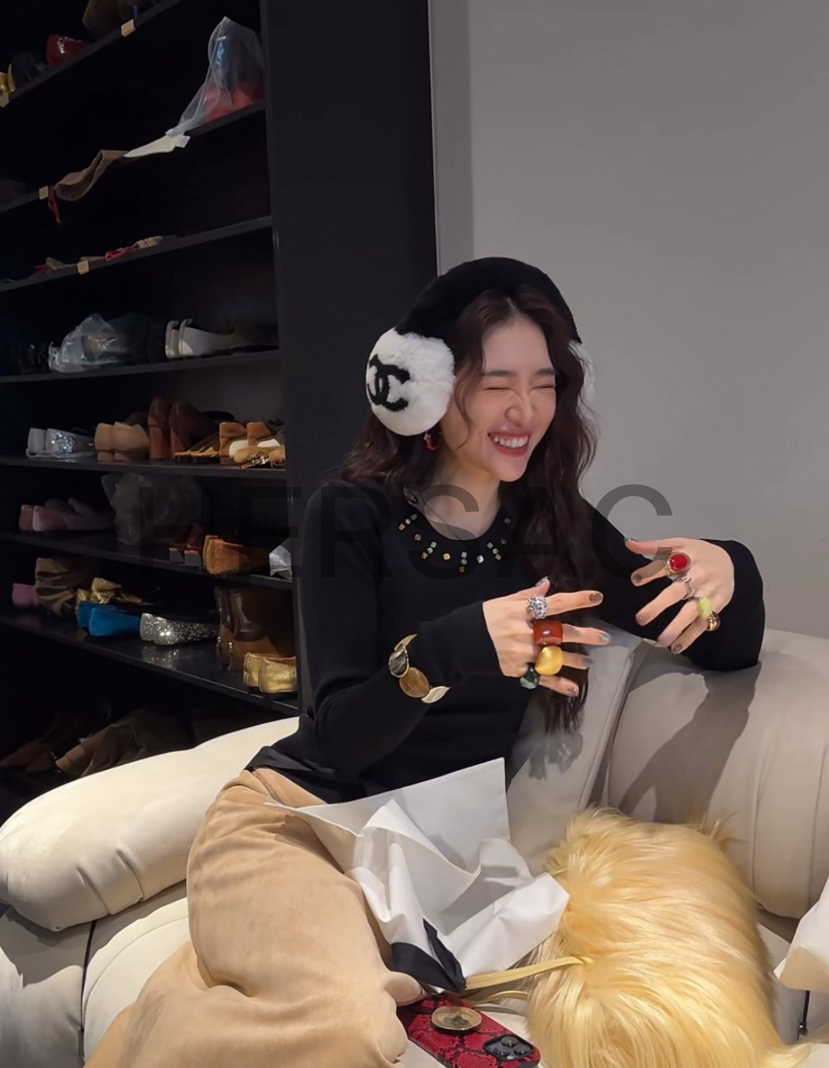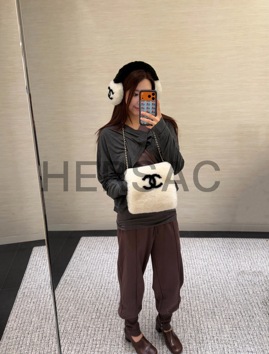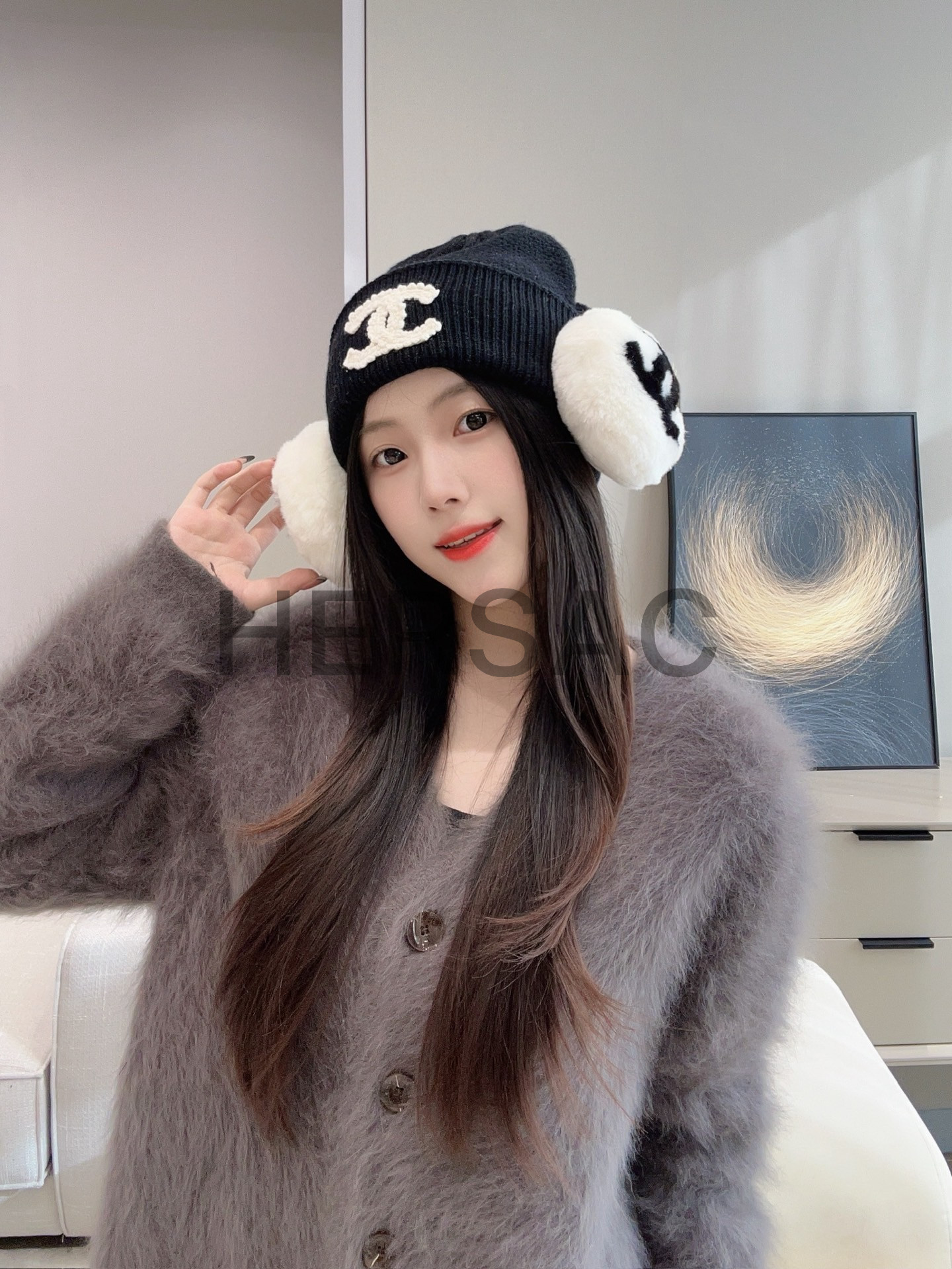 샤넬 2025/26 코코 네쥬 컬렉션 귀마개 시어링 램스킨 에크루 블랙 AAB261-B21473-U2759