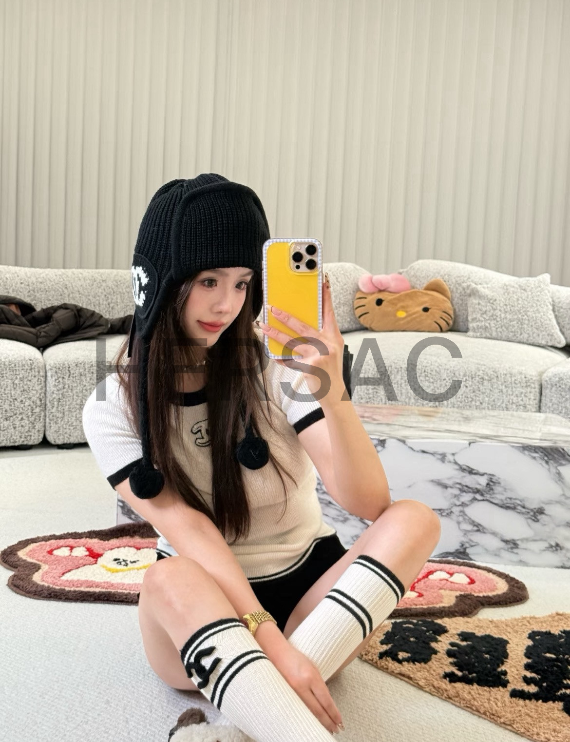 샤넬 2025/26 가을-겨울 프리-컬렉션 비니 캐시미어 블랙 에크루 모자 AAB271-B21482-U2779