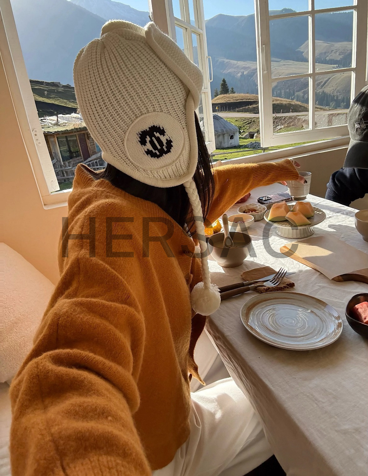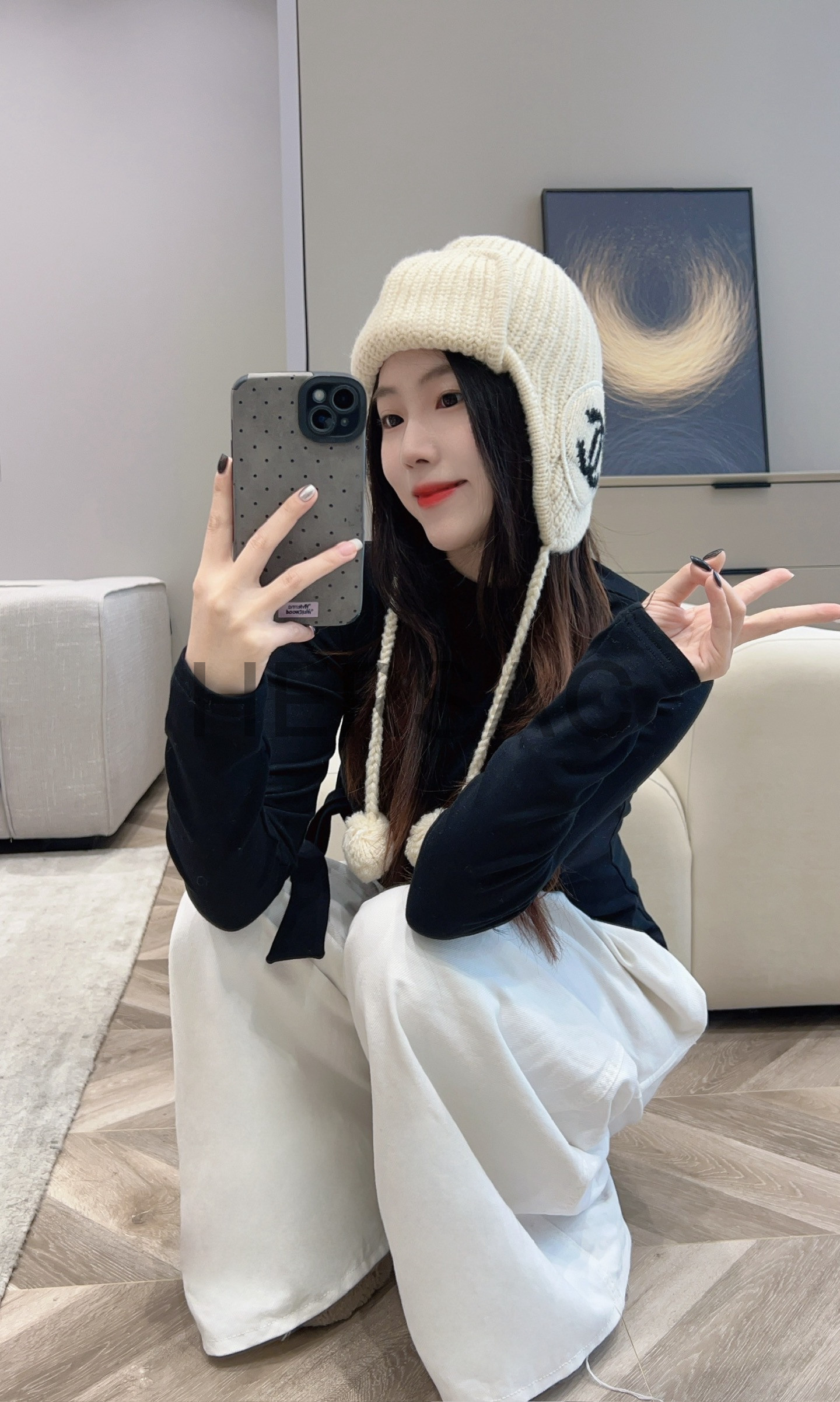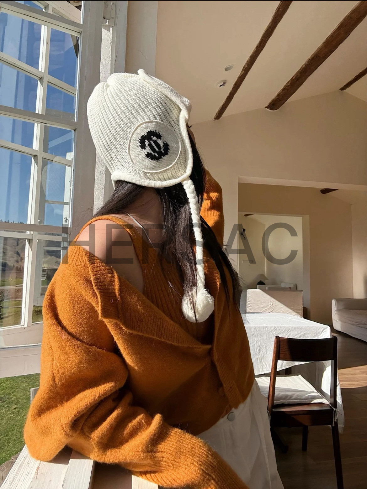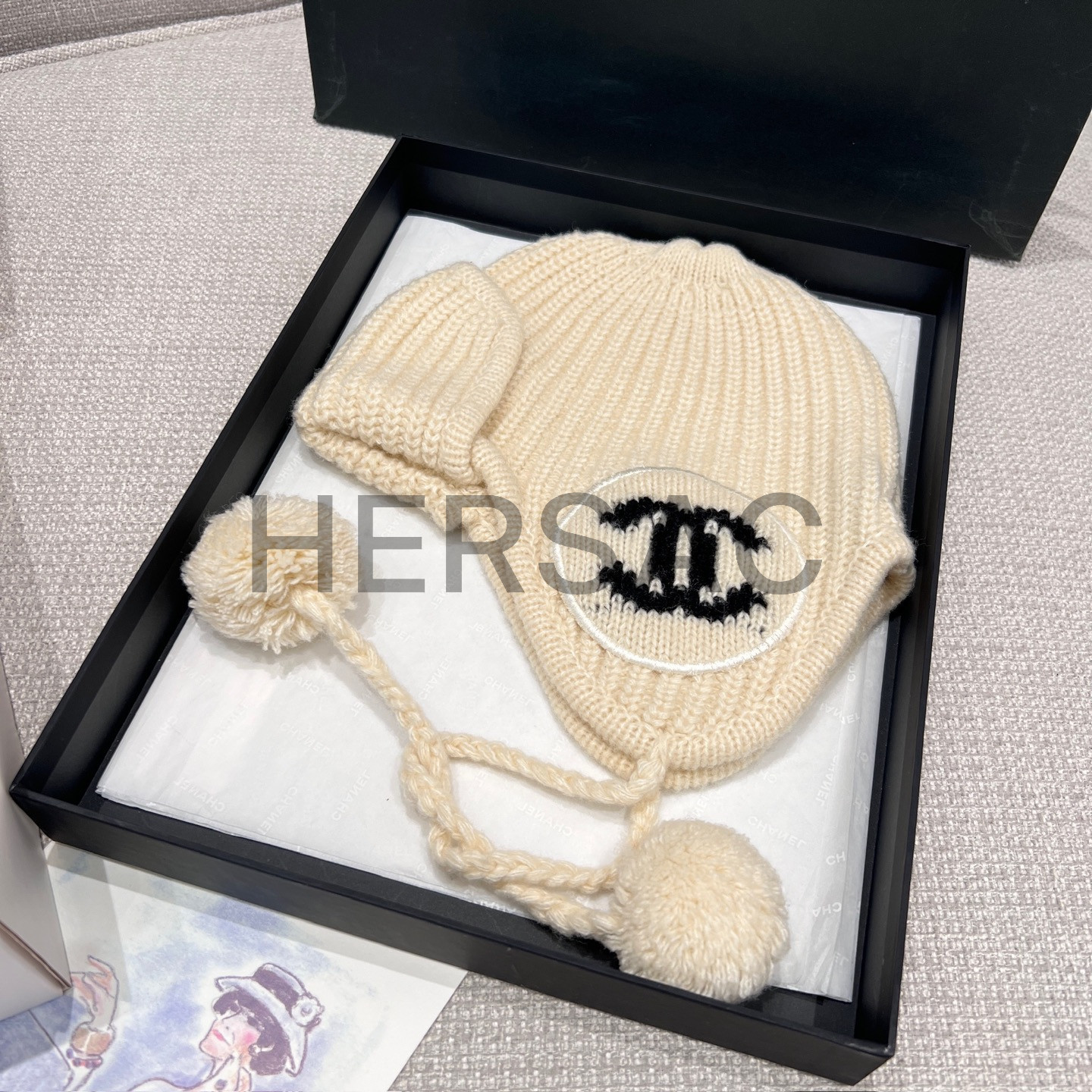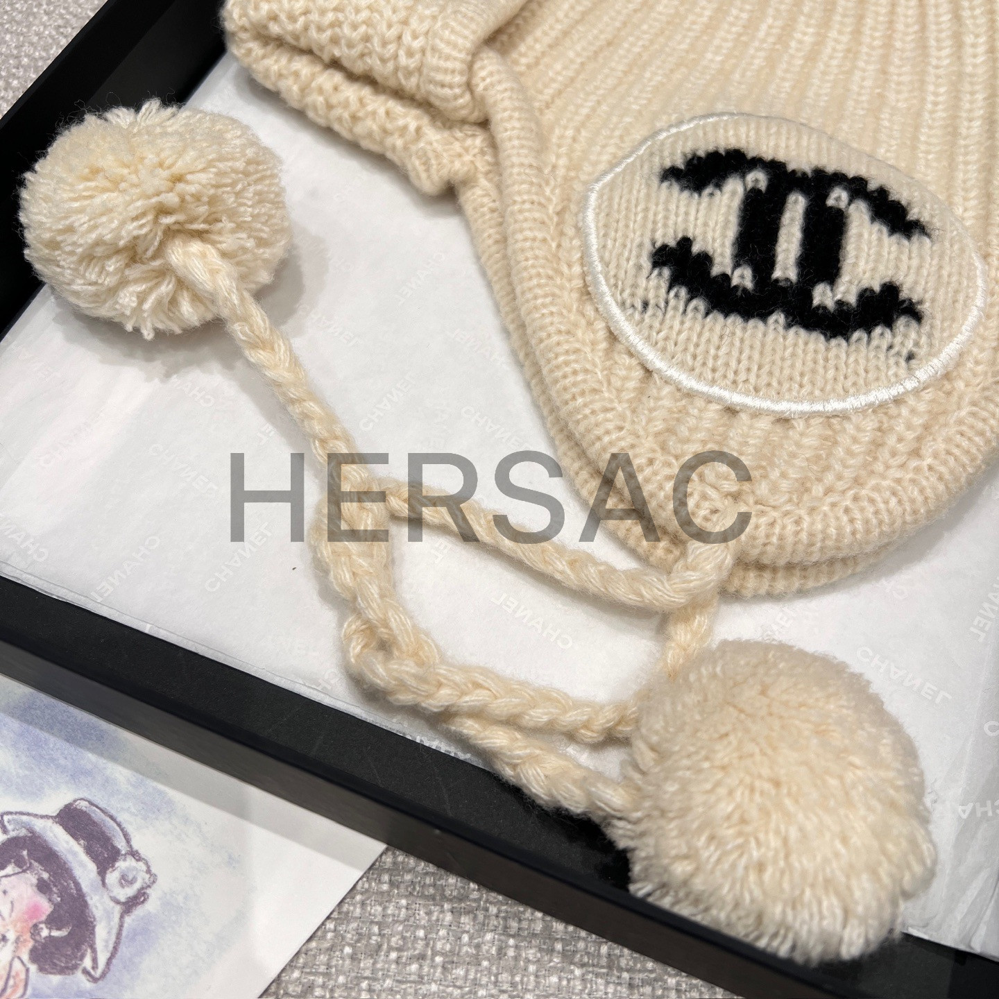 샤넬 2025/26 가을-겨울 프리-컬렉션 비니 모자 캐시미어 에크루 블랙 AAB271-B21482-U2780
