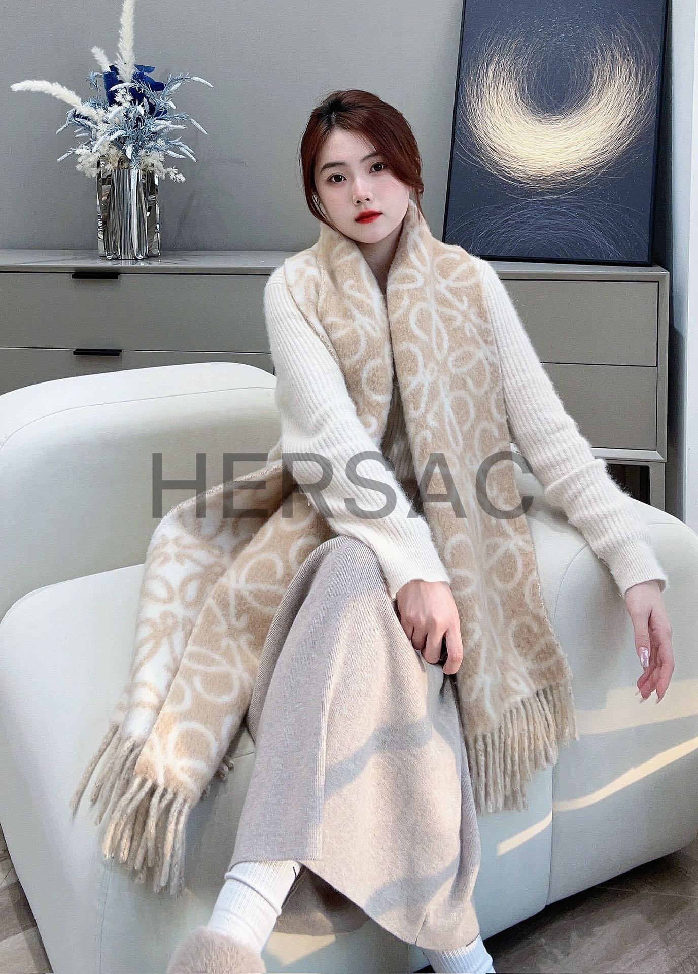 로에베 애너그램 스카프 - 알파카 & 울 혼방 F811257X23.CIL0010913564