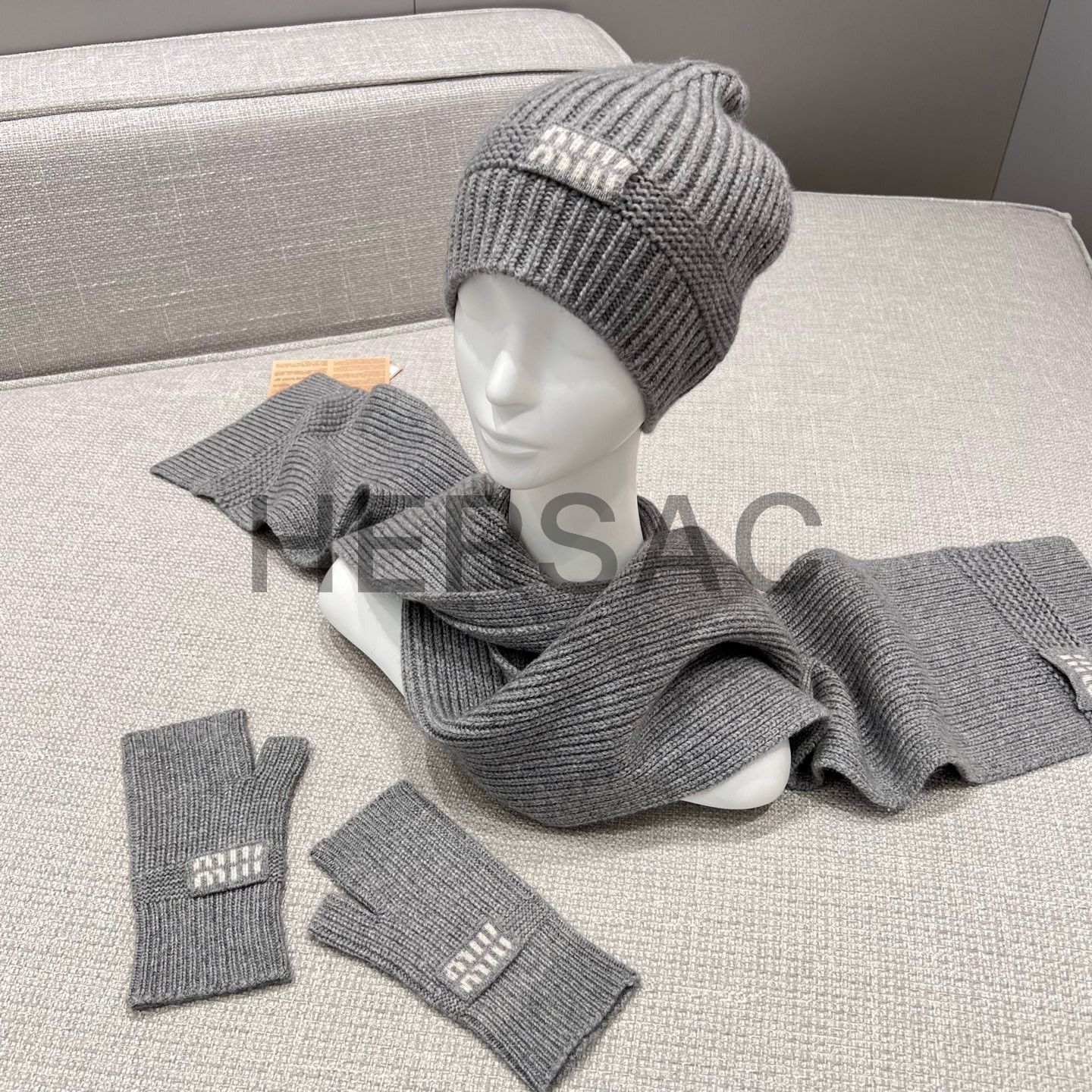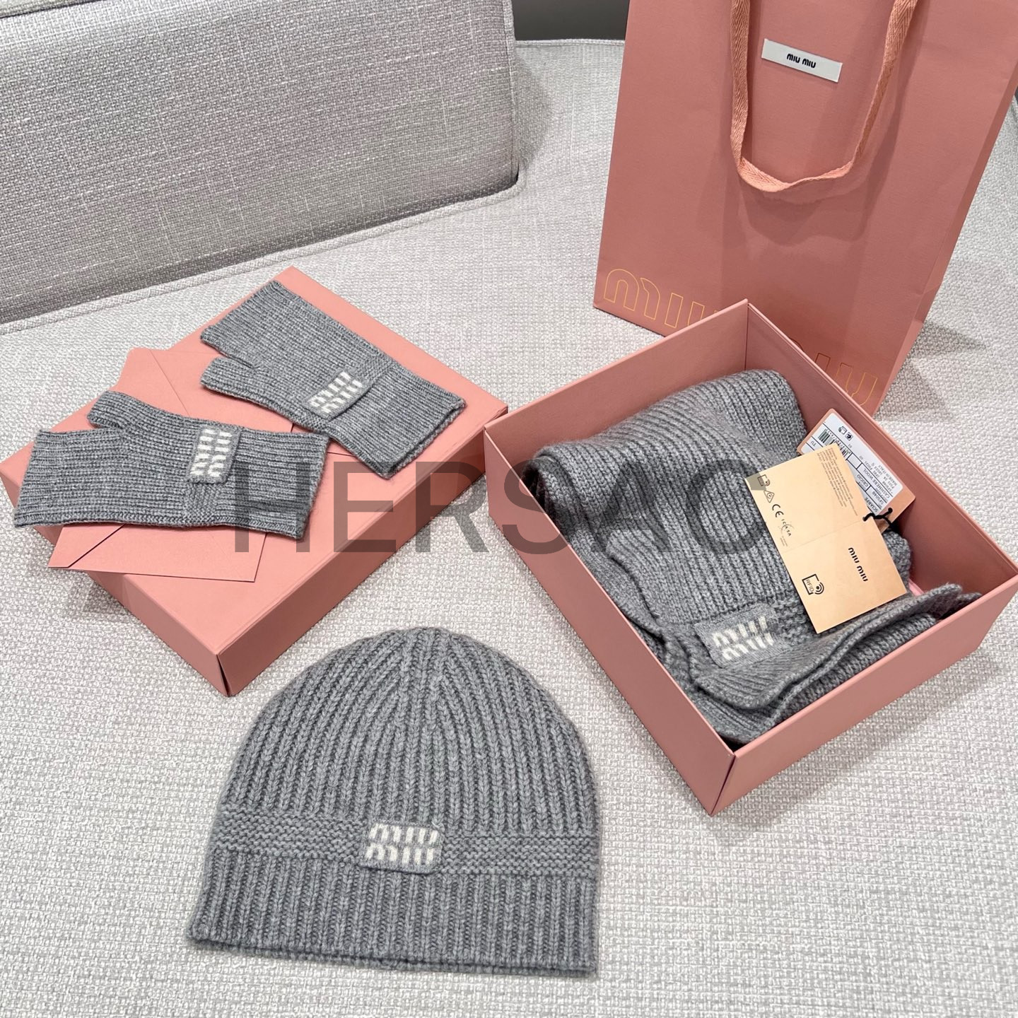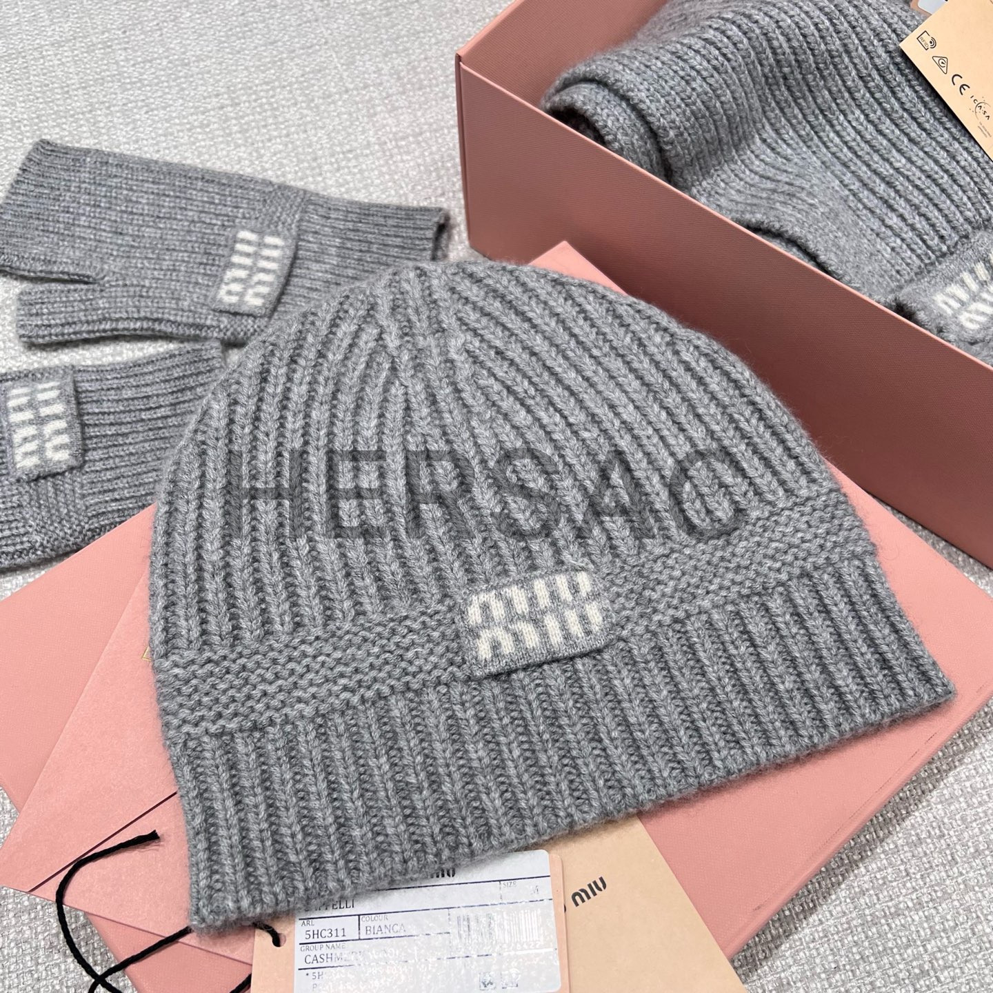 미우미우 울 및 캐시미어 비니 모자 다크 그레이 5HC311_2F8S_F0031