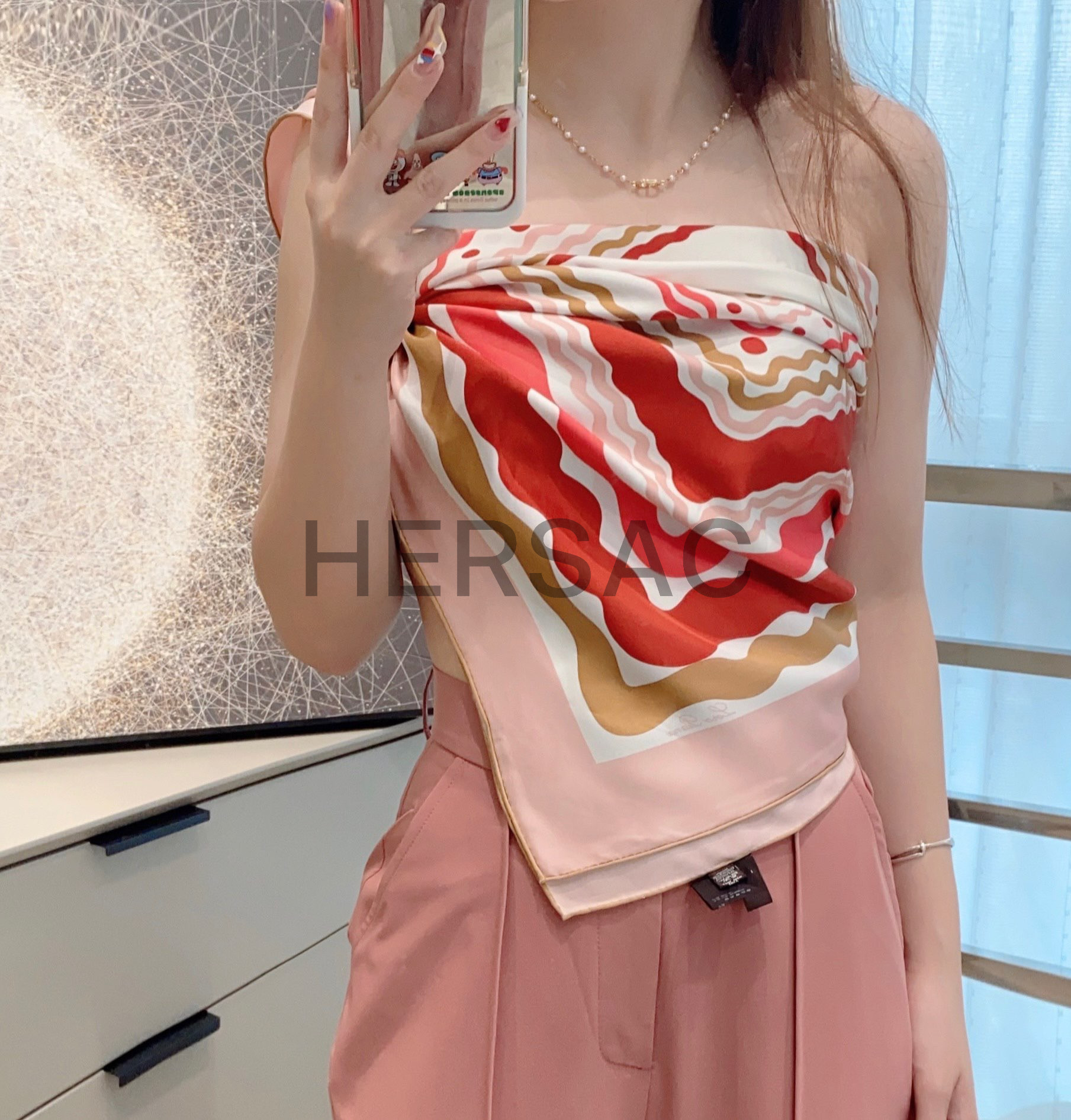 로로피아나 라 무리나 프린트 실크 스카프