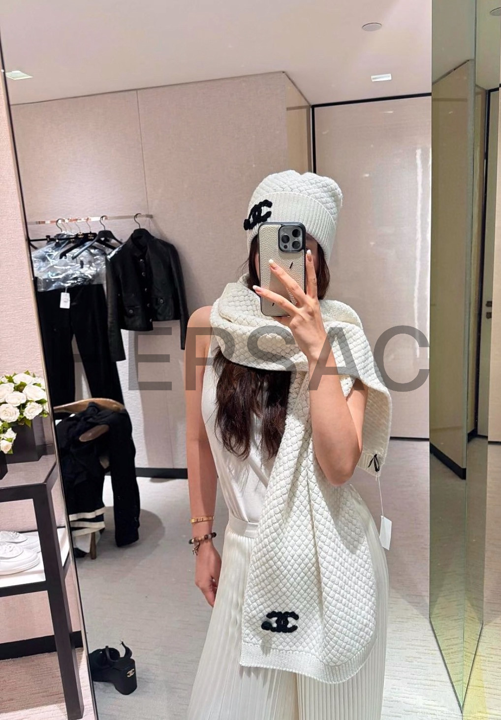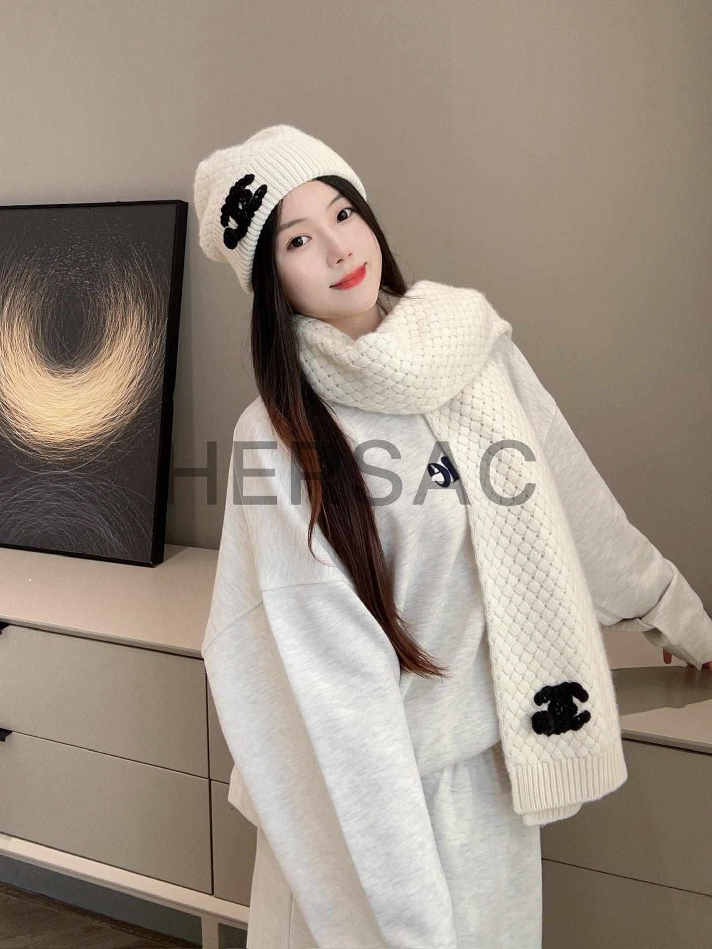 샤넬 25FW 캐시미어 비니 CC로고 까멜리아 니트 모자 AAB133-B20782-U1604