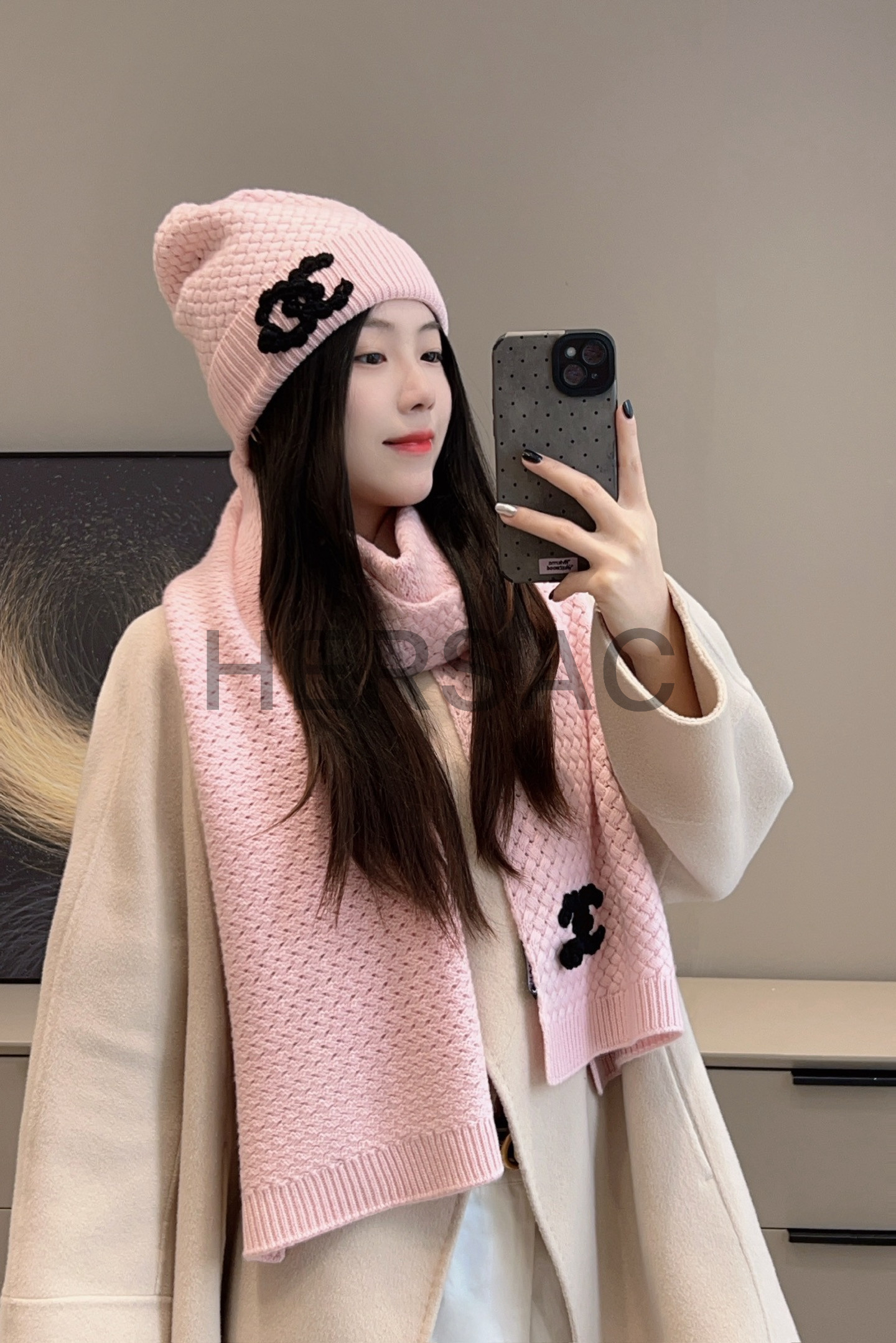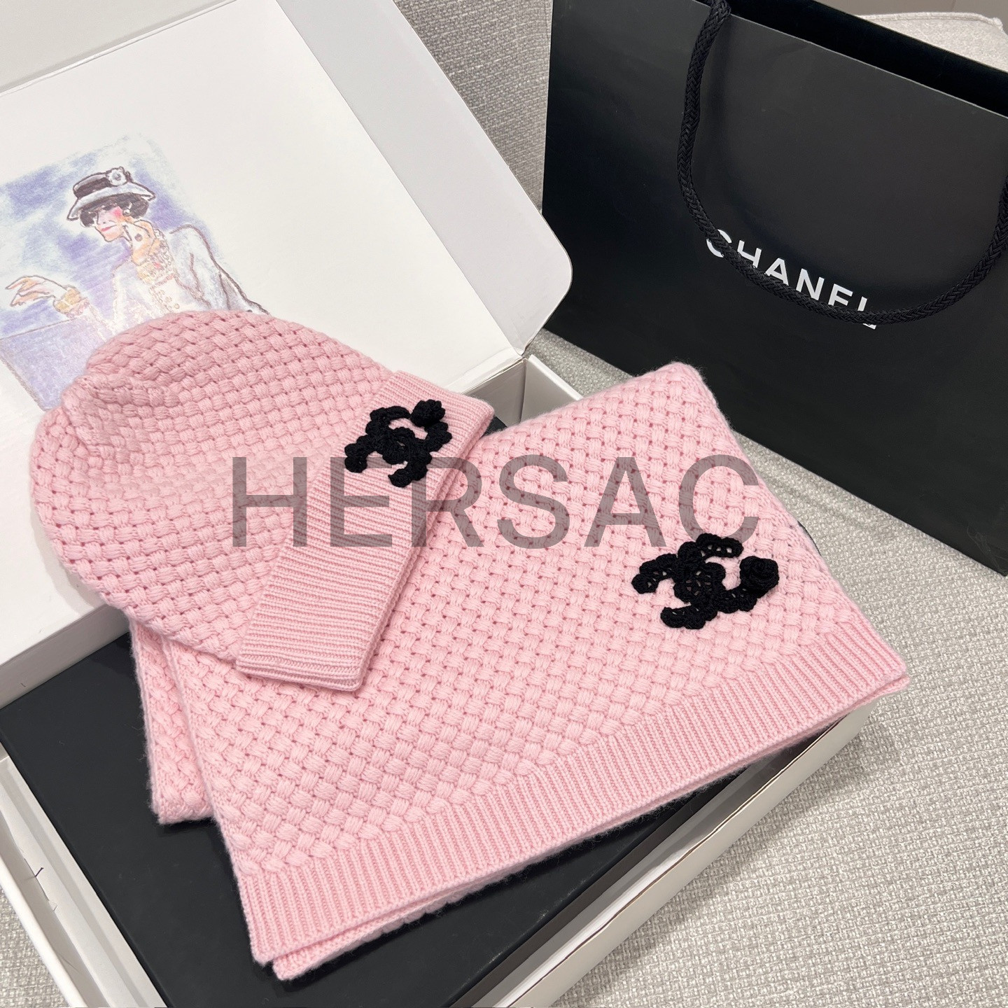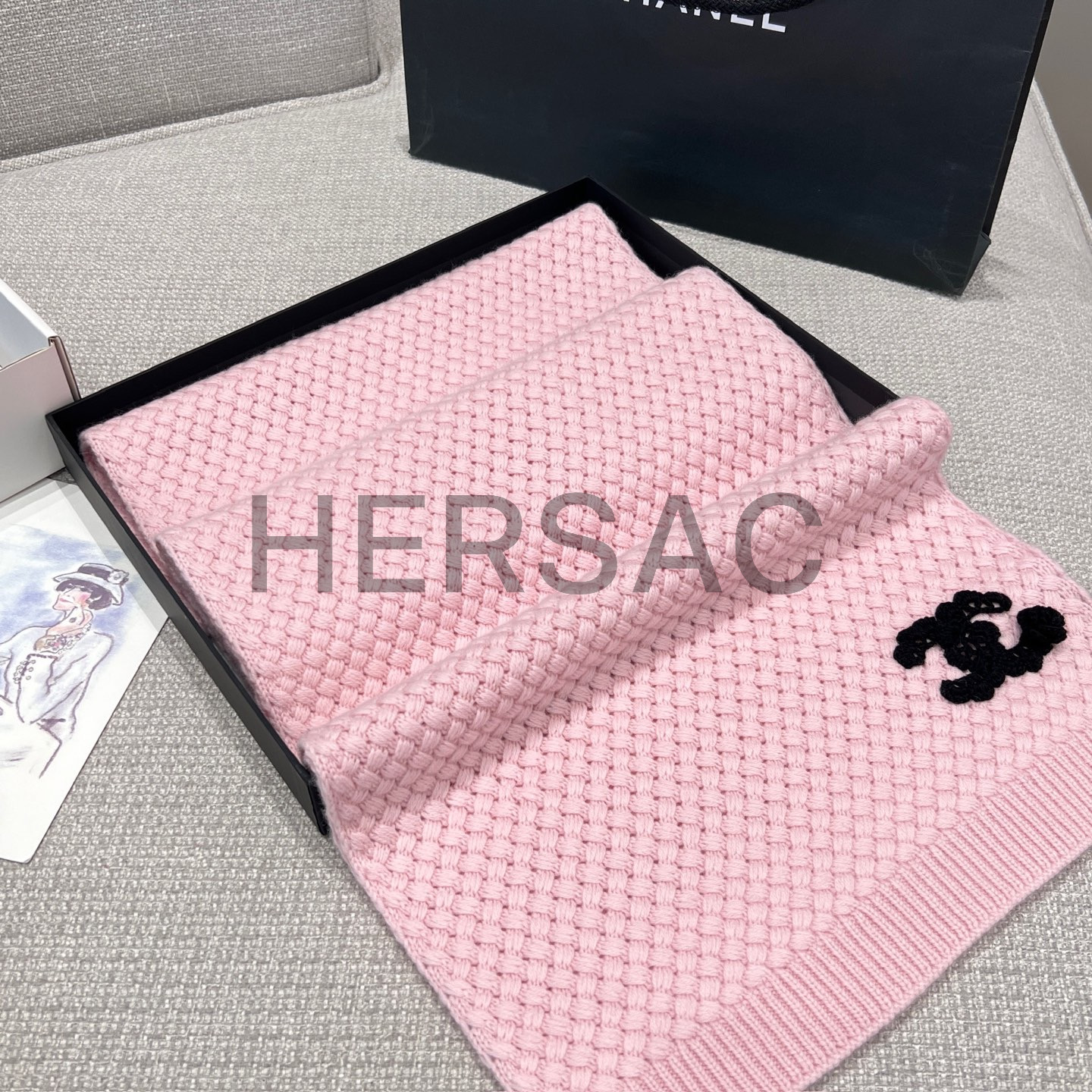 샤넬 25FW 캐시미어 CC로고 까멜리아 니트 스카프 AAB132 B20782 U0018