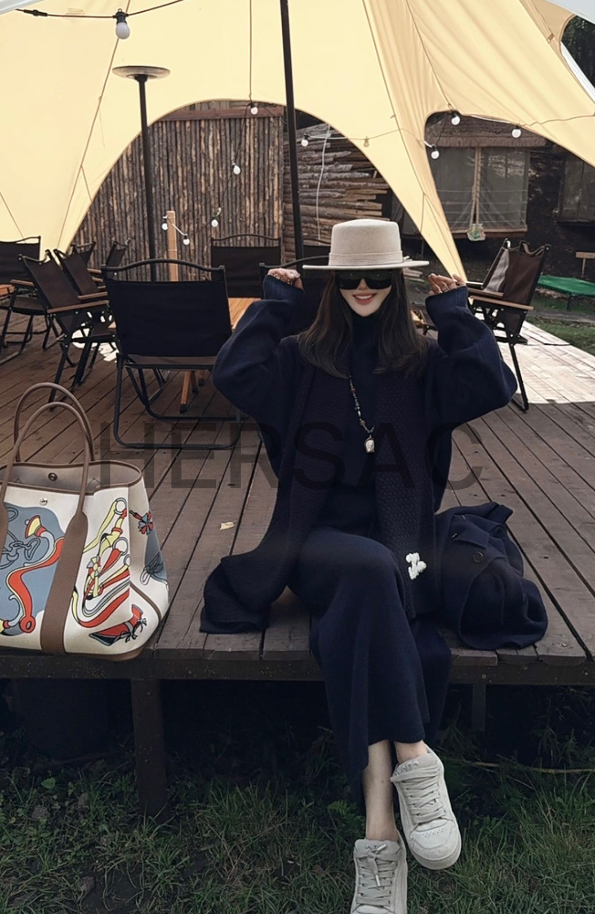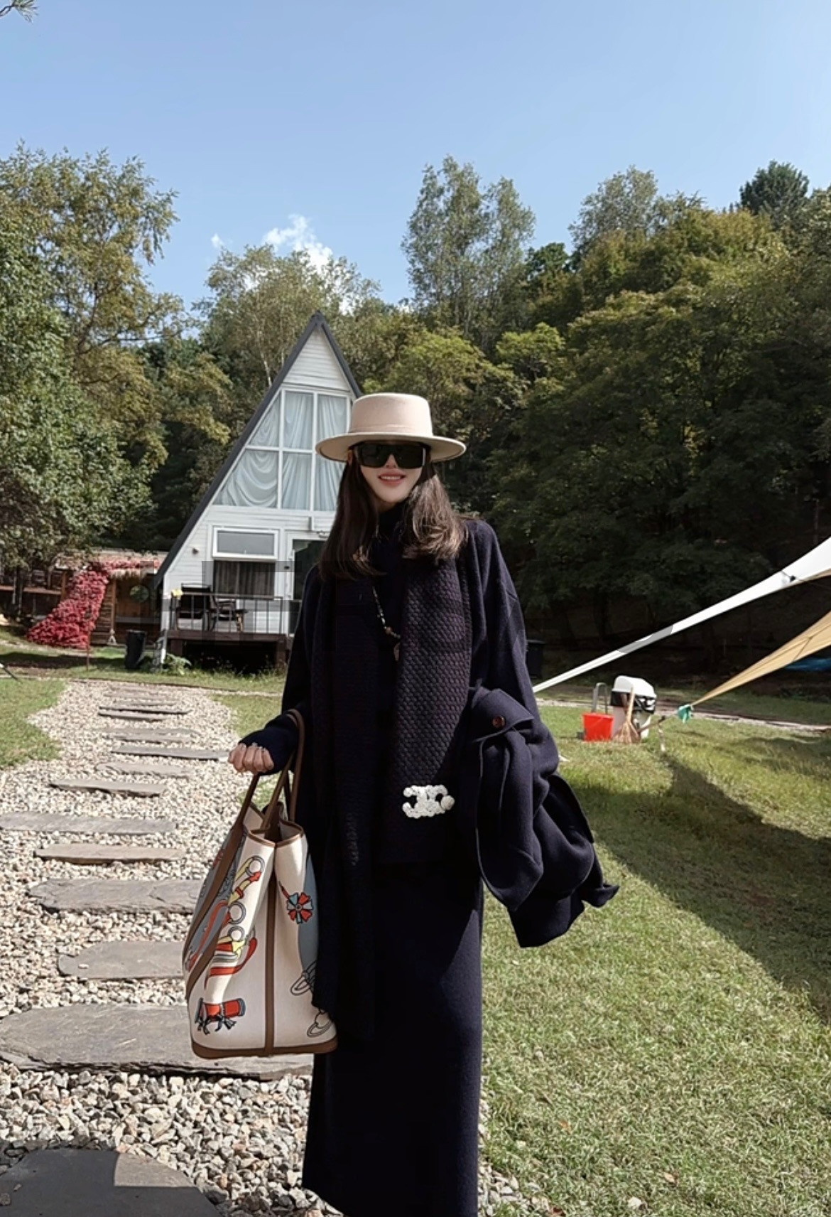 샤넬 25FW 캐시미어 CC로고 까멜리아 니트 스카프 AAB132 B20782 U1605