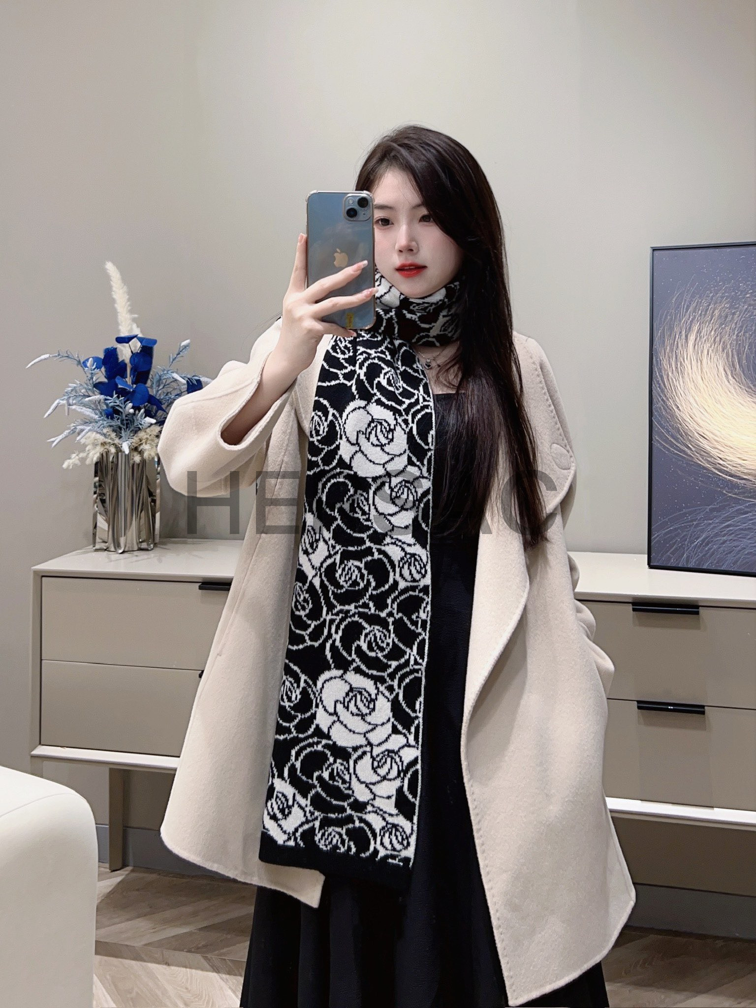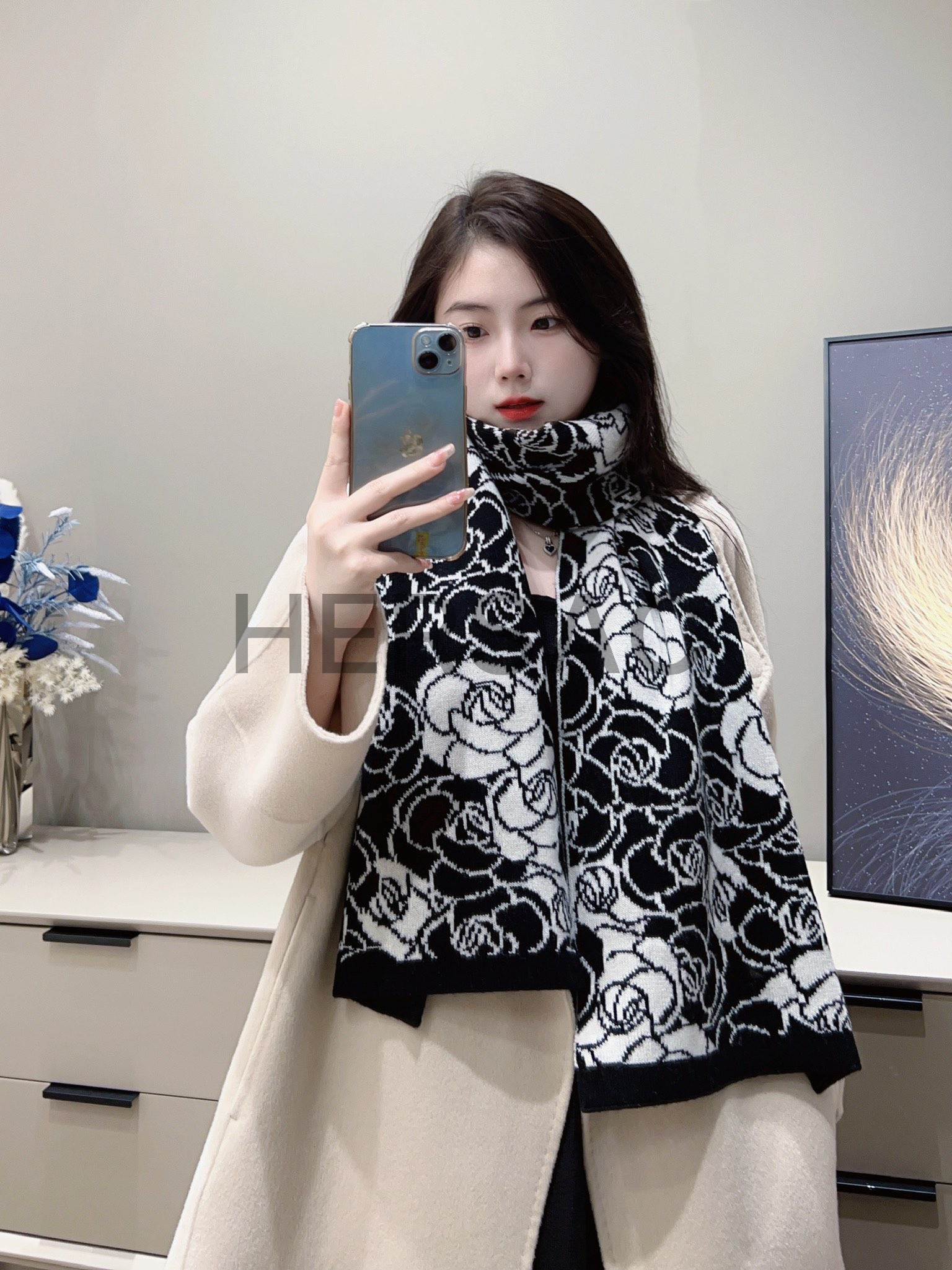 샤넬 스카프 캐시미어 & 블랙 화이트 AA9507-B14321-NR96