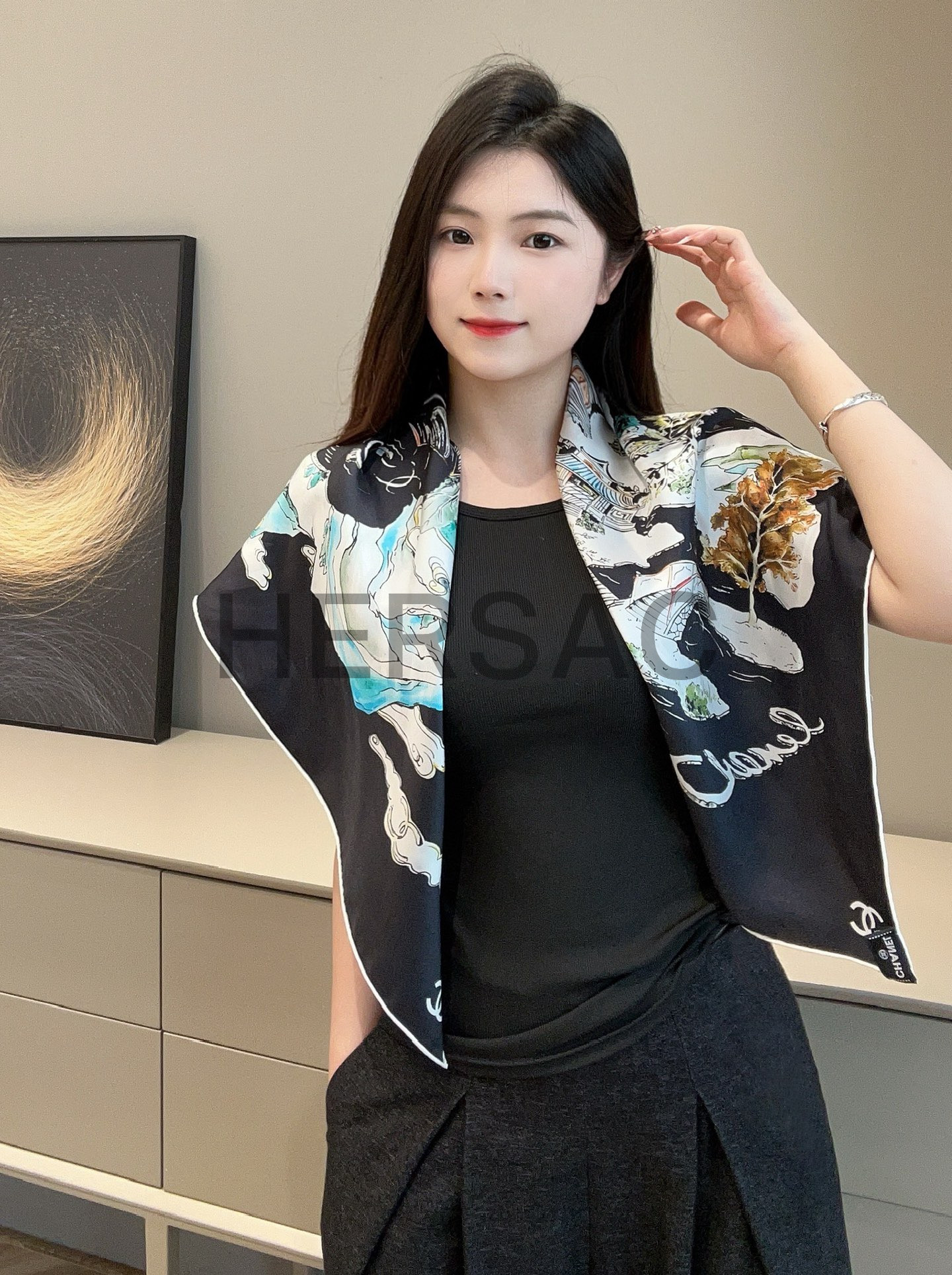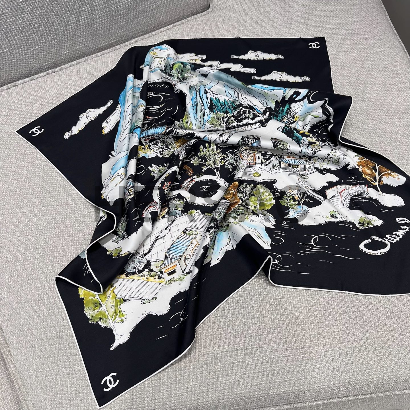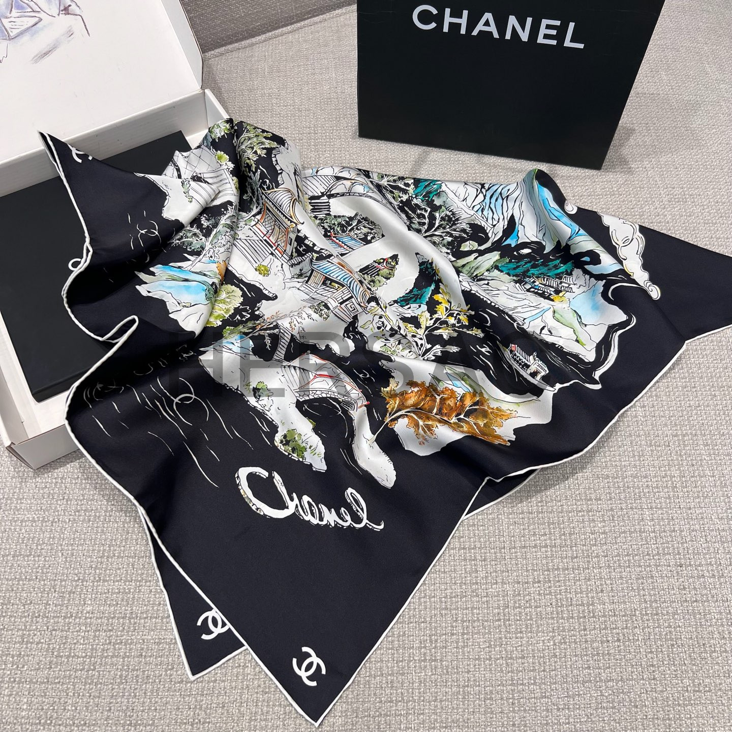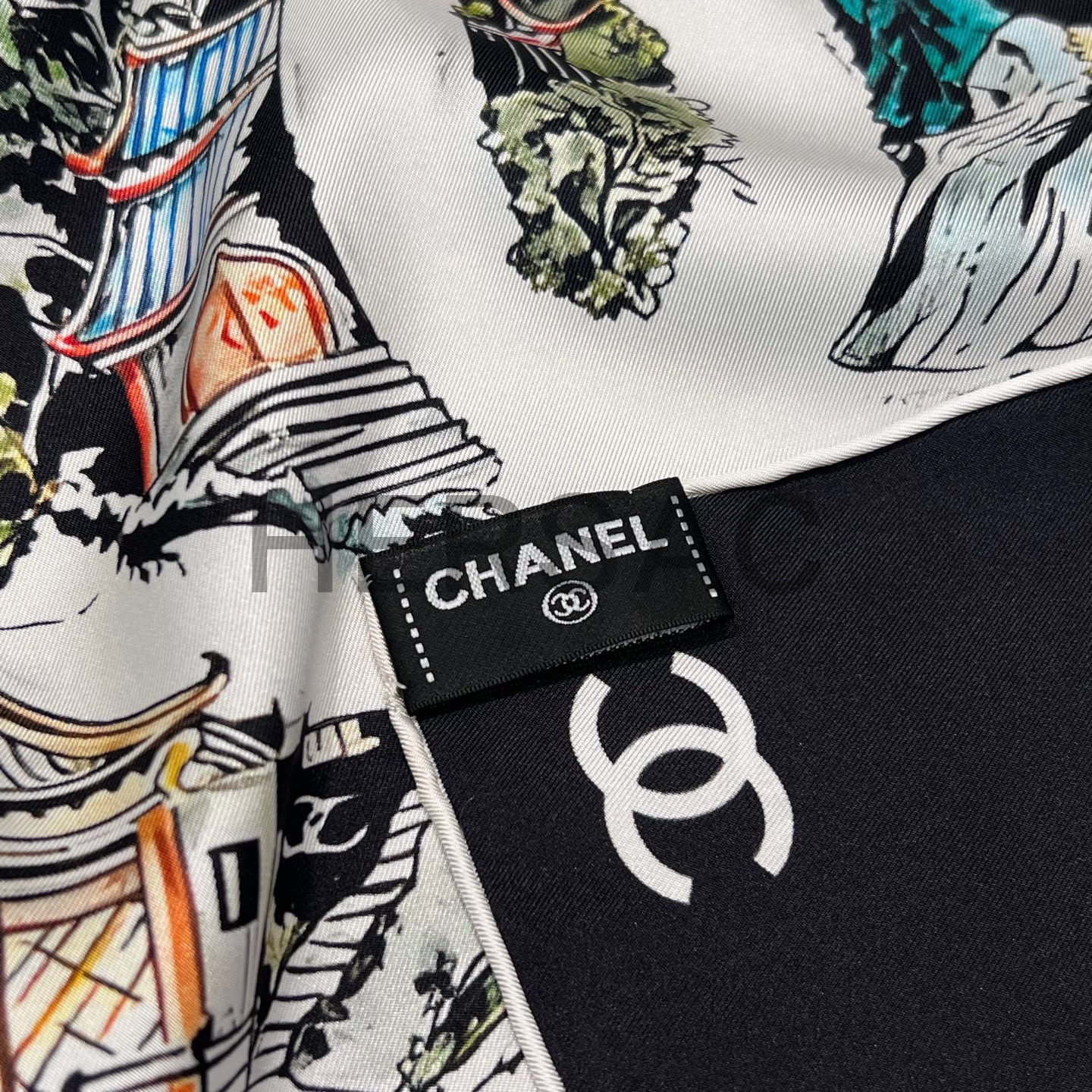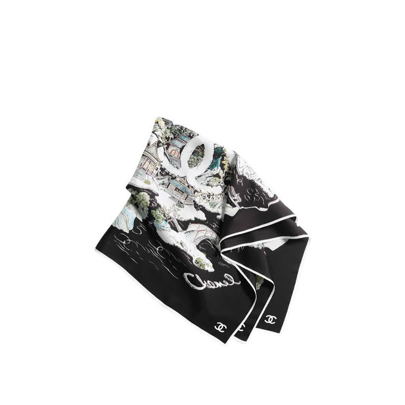샤넬 스퀘어 스카프 실크 트윌 & 블랙 멀티컬러 화이트 AAB102-B20750-U1949