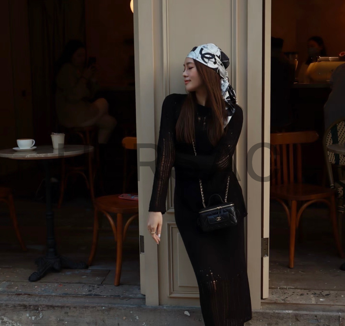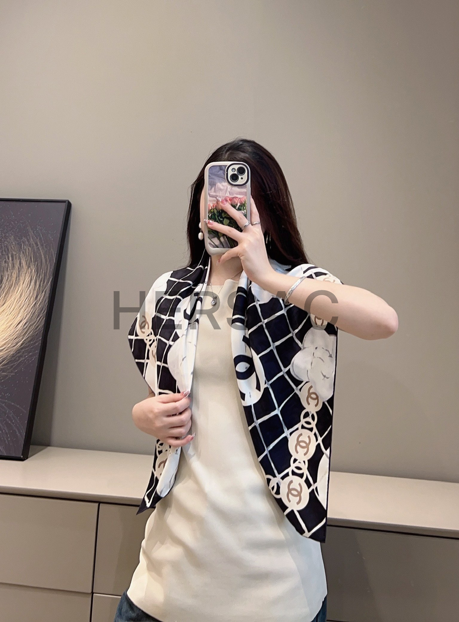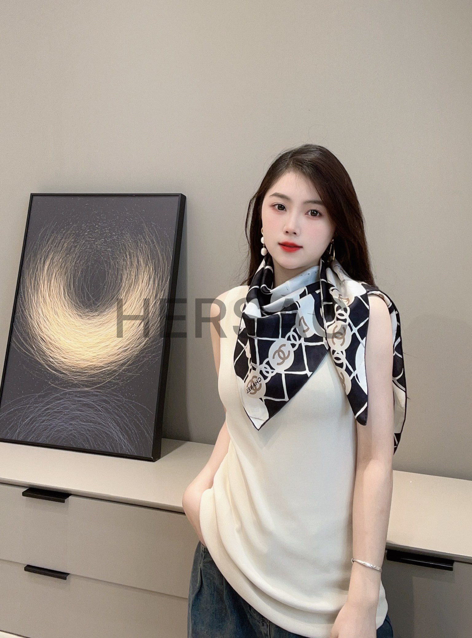 샤넬 스퀘어 스카프 실크 트윌 & 블랙 A39577-X10321-94305
