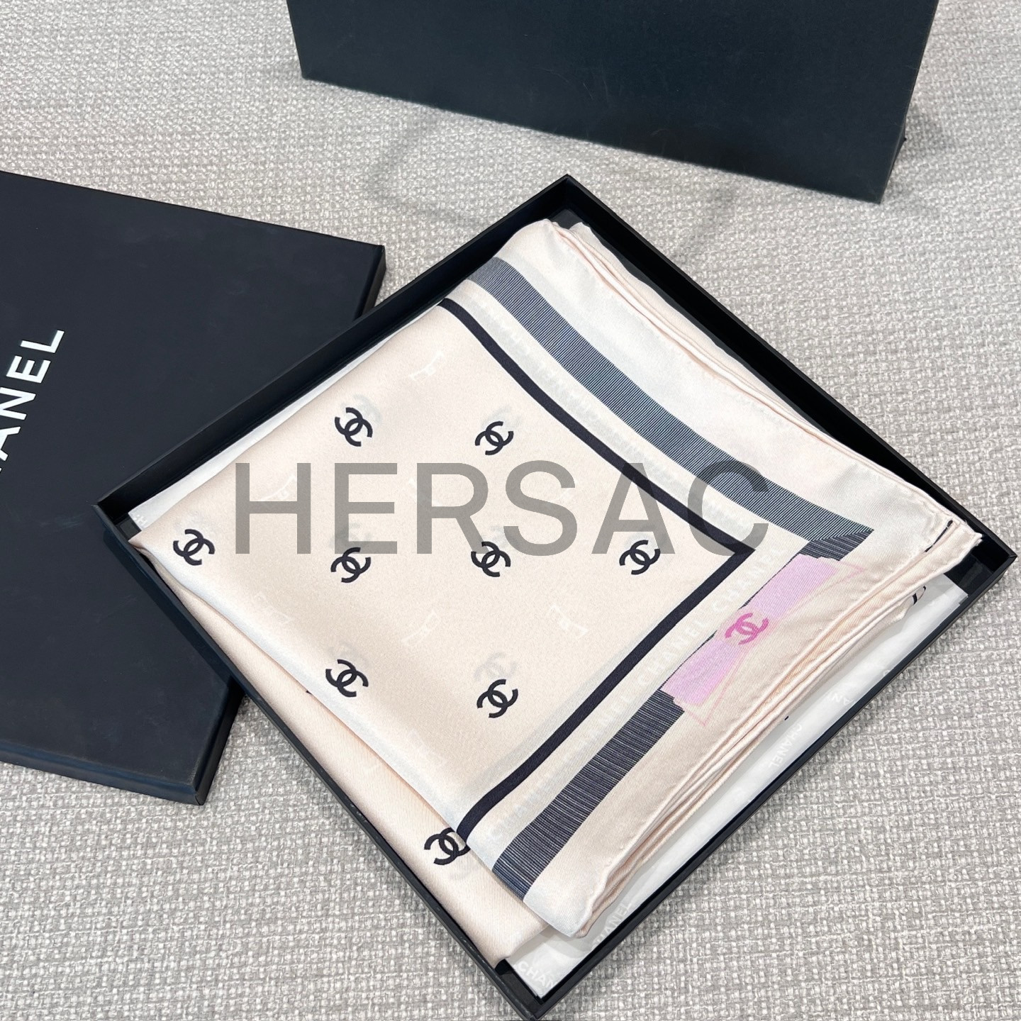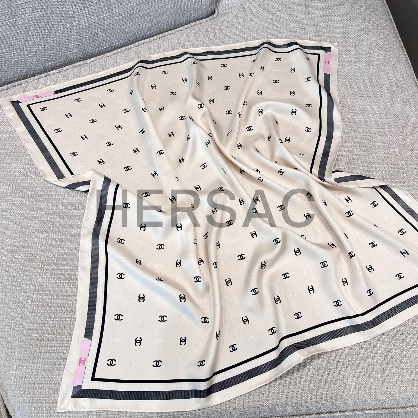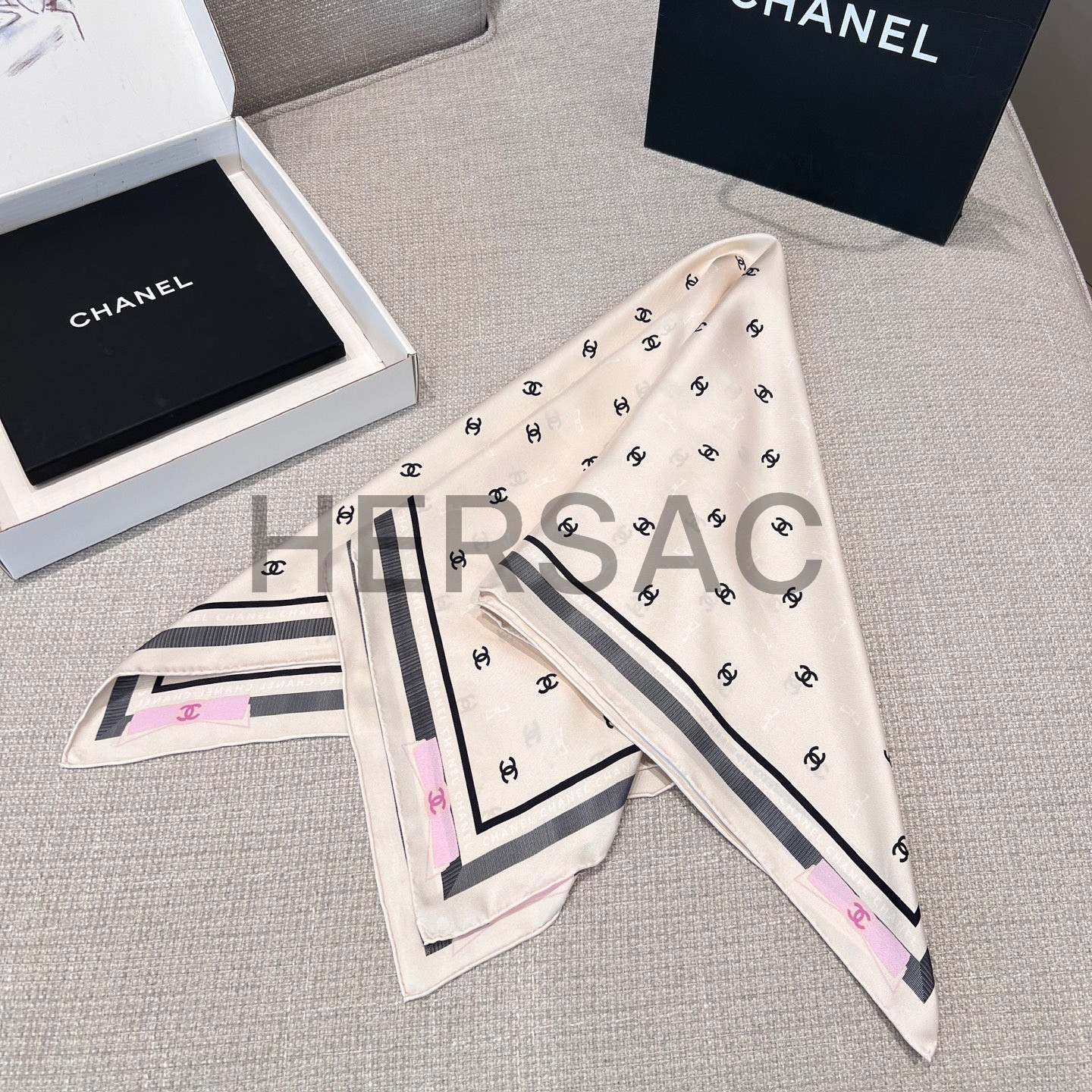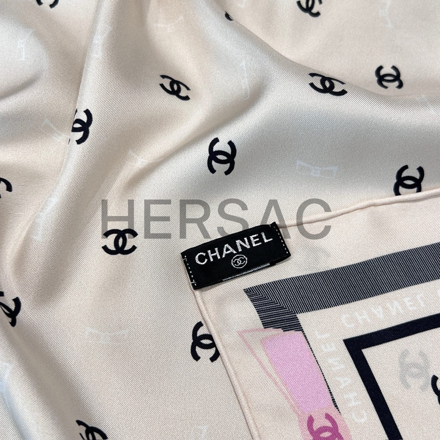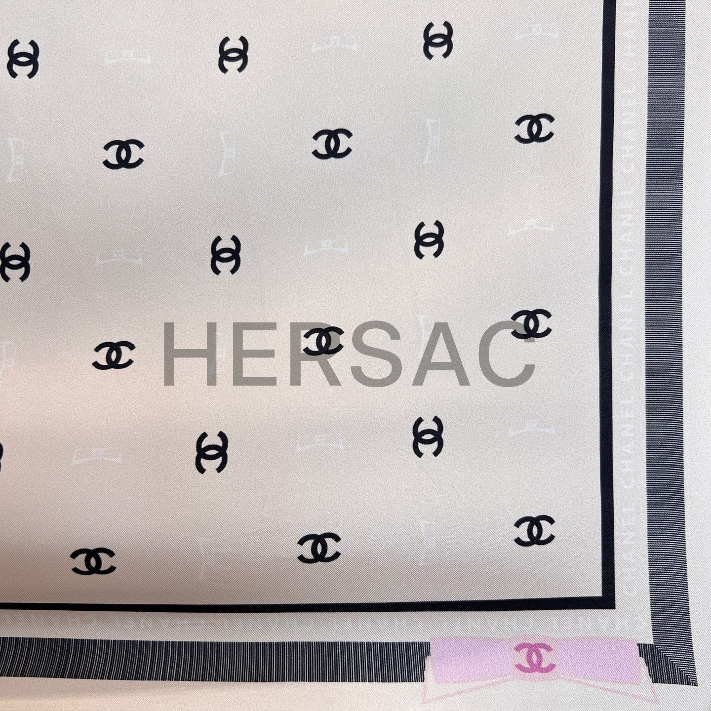 샤넬 스퀘어 스카프 자카드 실크 트윌 & 에크루 블랙 라이트 핑크 AAA777-B19447-NAFFT