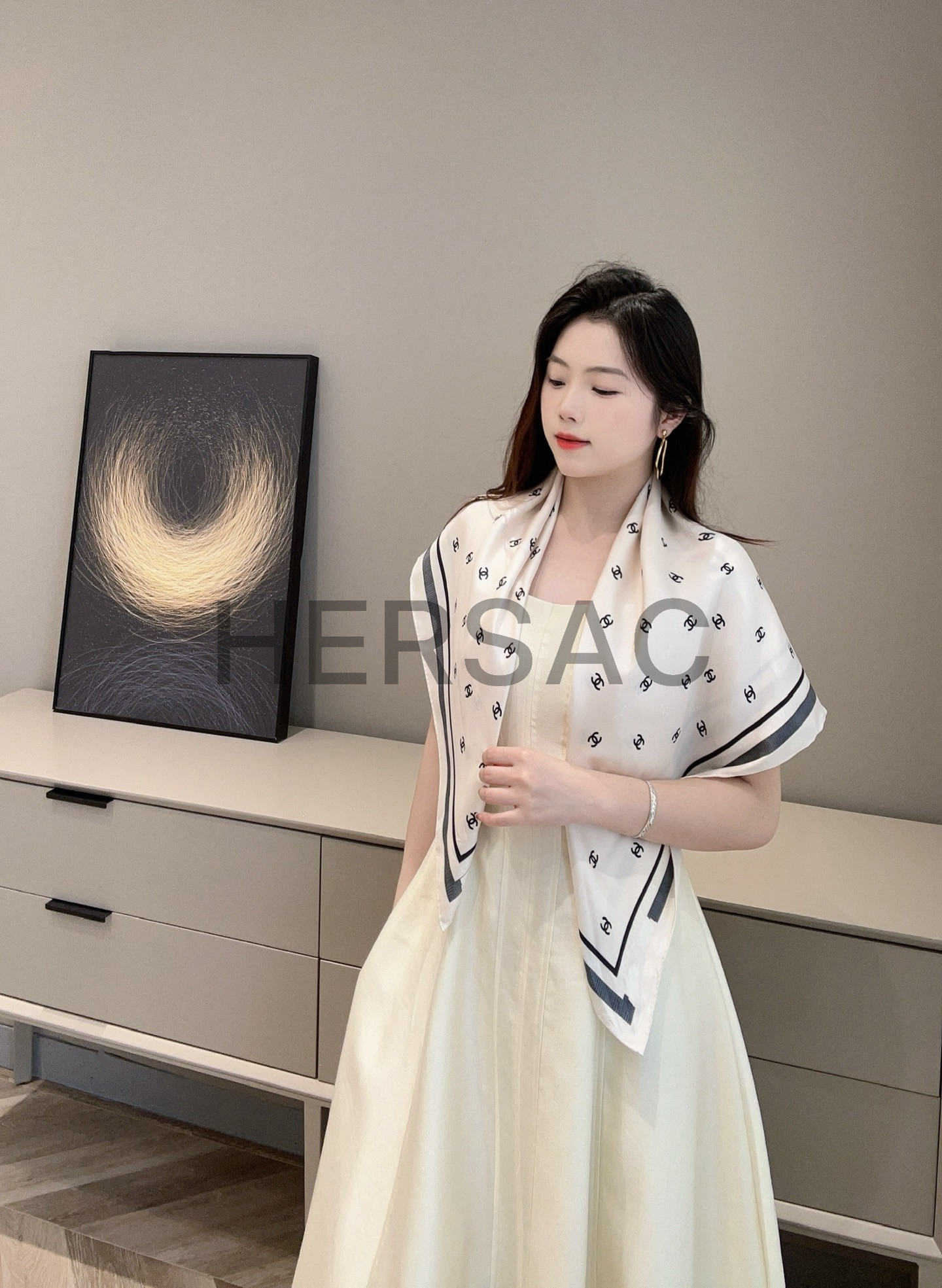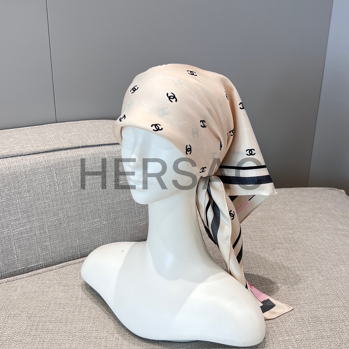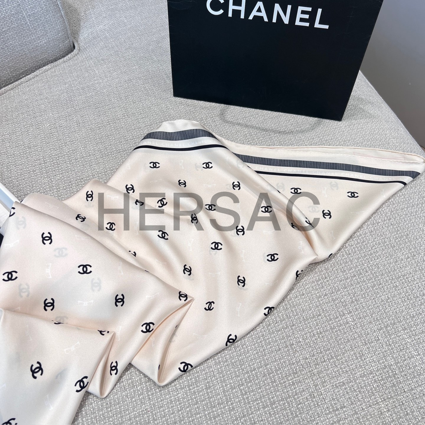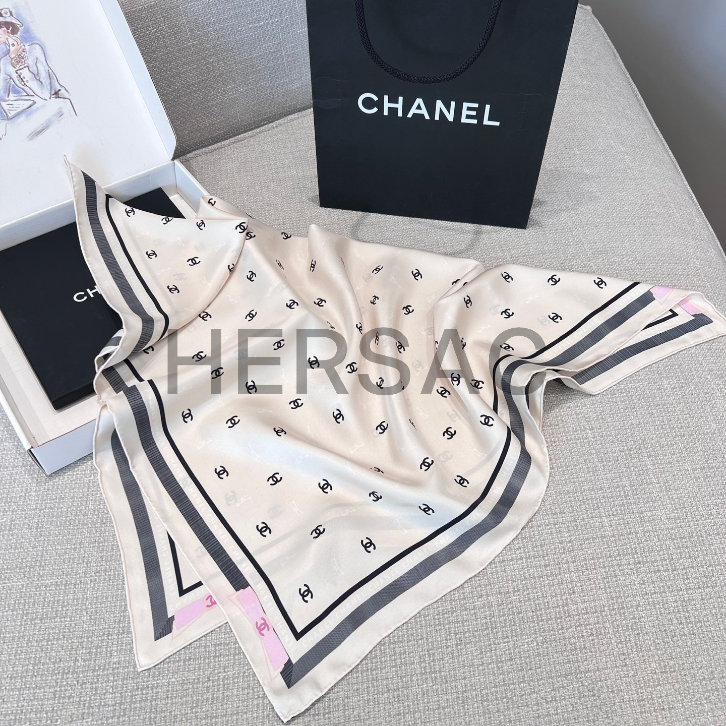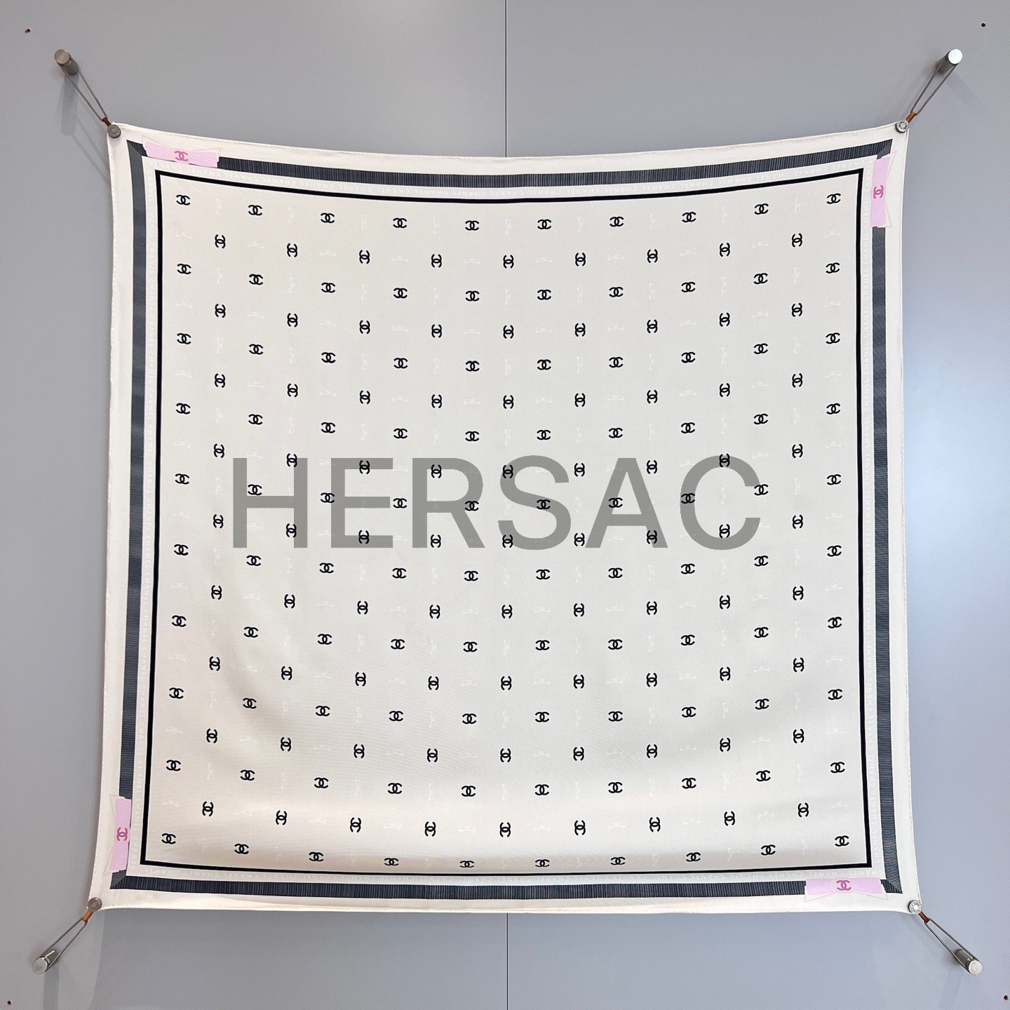 샤넬 스퀘어 스카프 자카드 실크 트윌 & 에크루 블랙 라이트 핑크 AAA777-B19447-NAFFT
