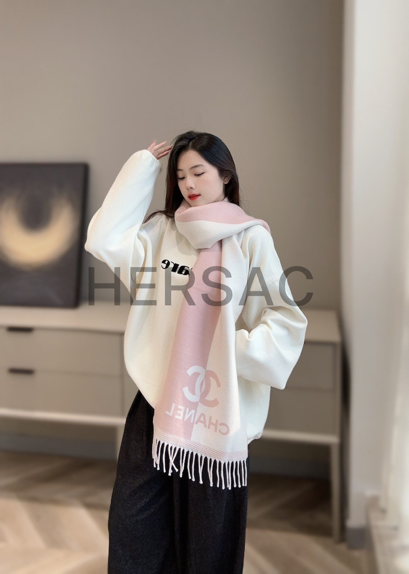 샤넬 스톨 캐시미어 전단 양가죽 머플리 AAA255-B17089-NZ302