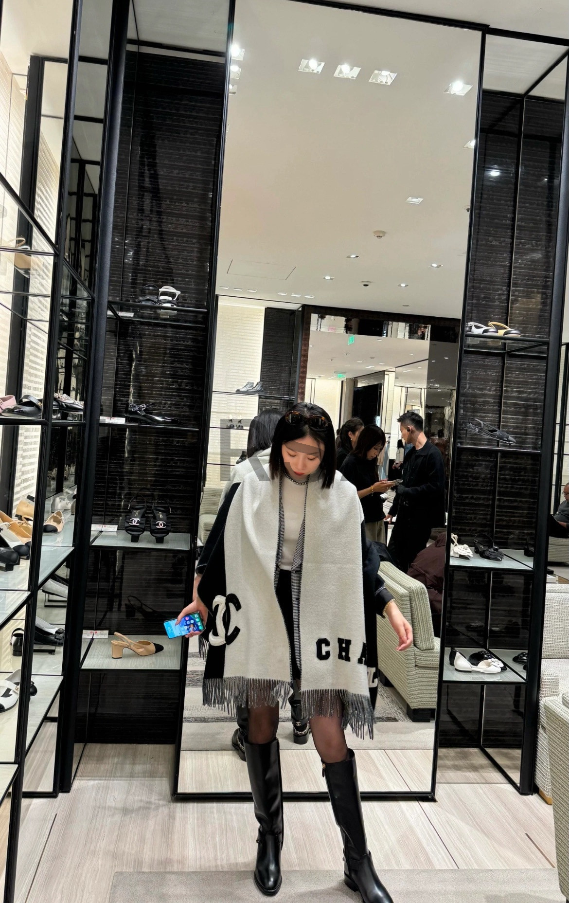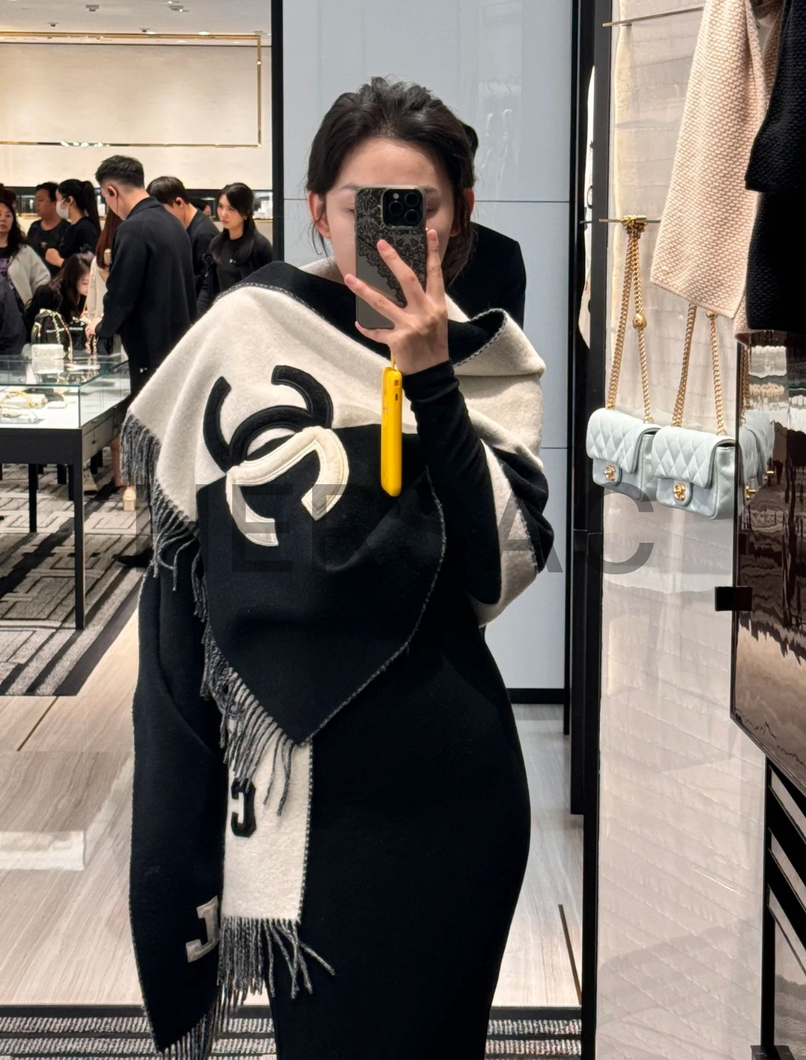 샤넬 스톨 캐시미어 전단 양가죽 머플리 AAA255B17089NZ303