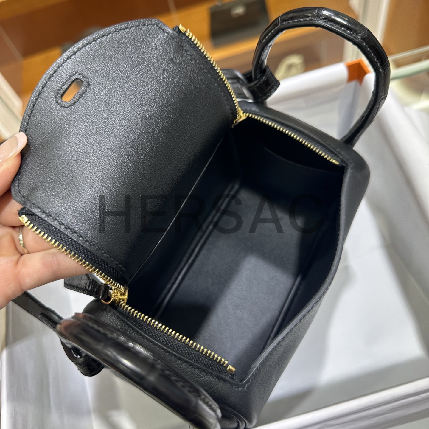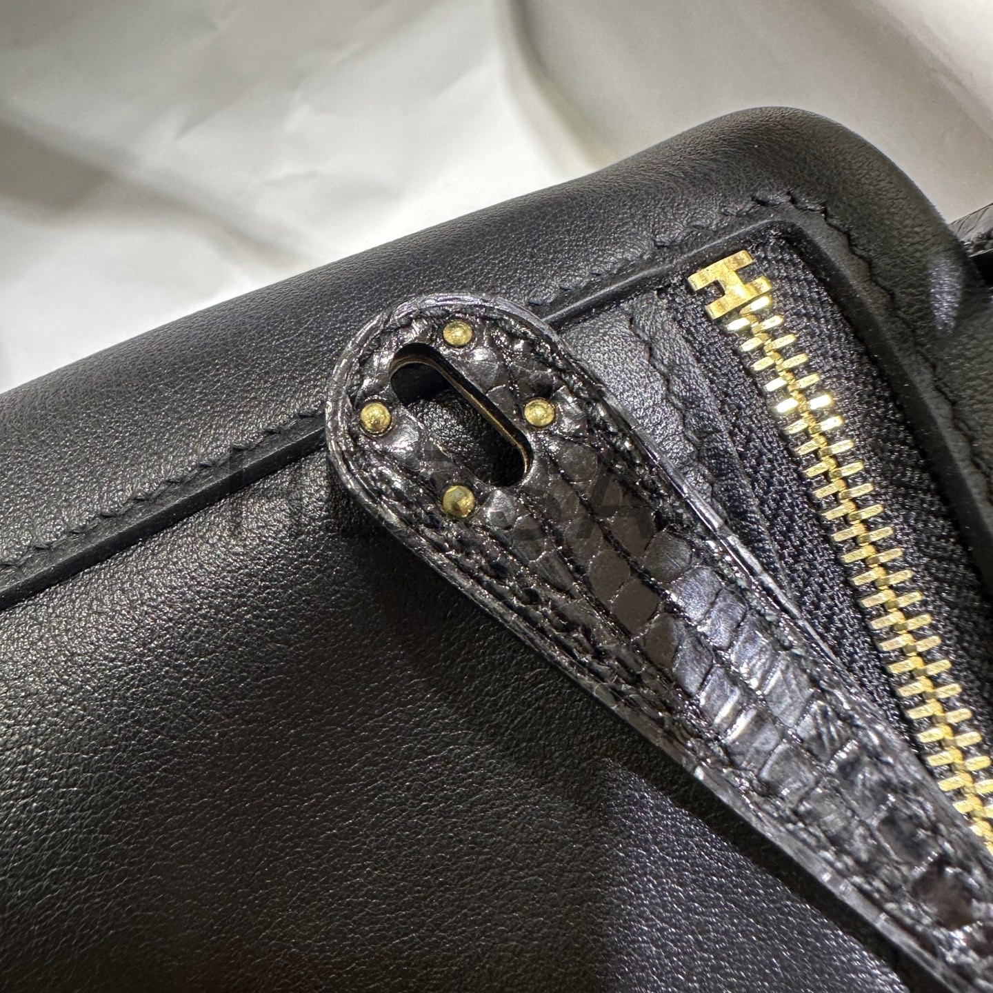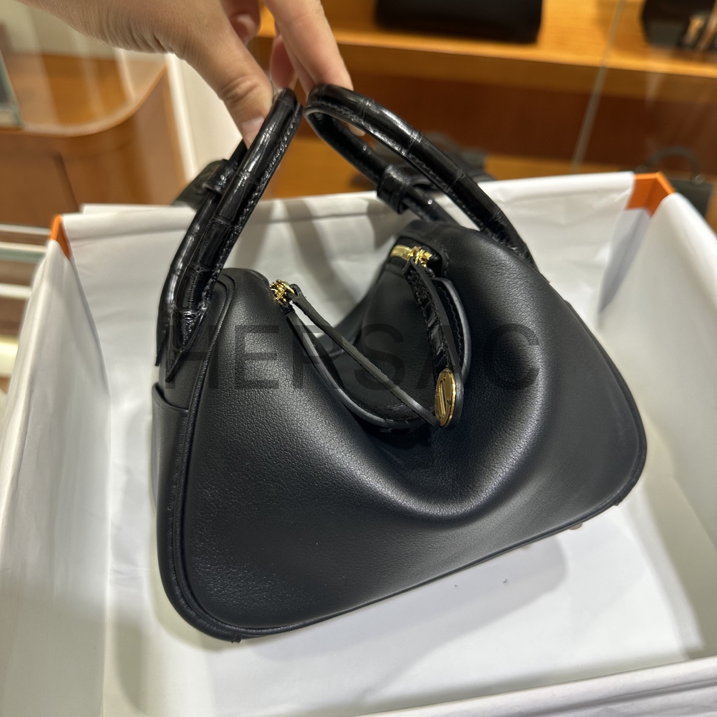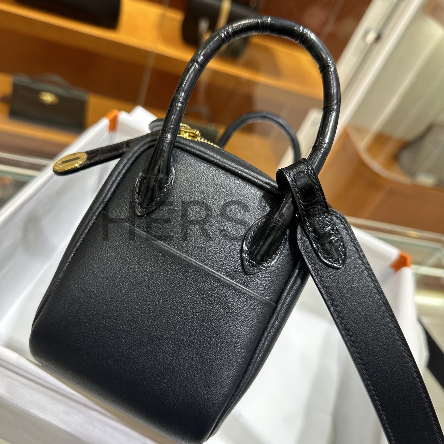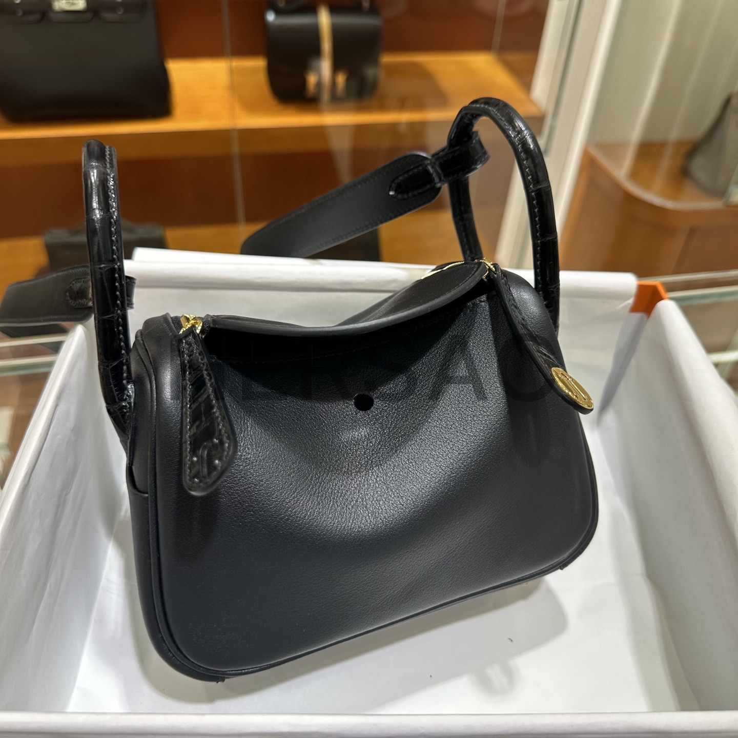 에르메스 미니 터치 린디 스위프트 엘리게이터 블랙 골드