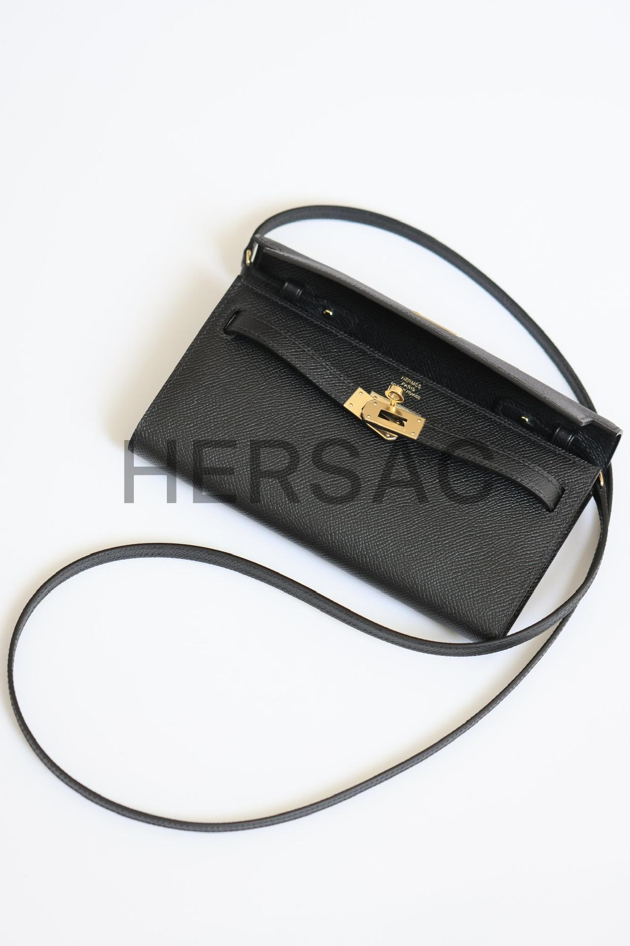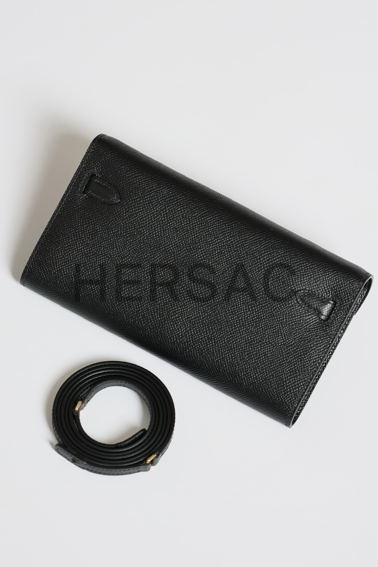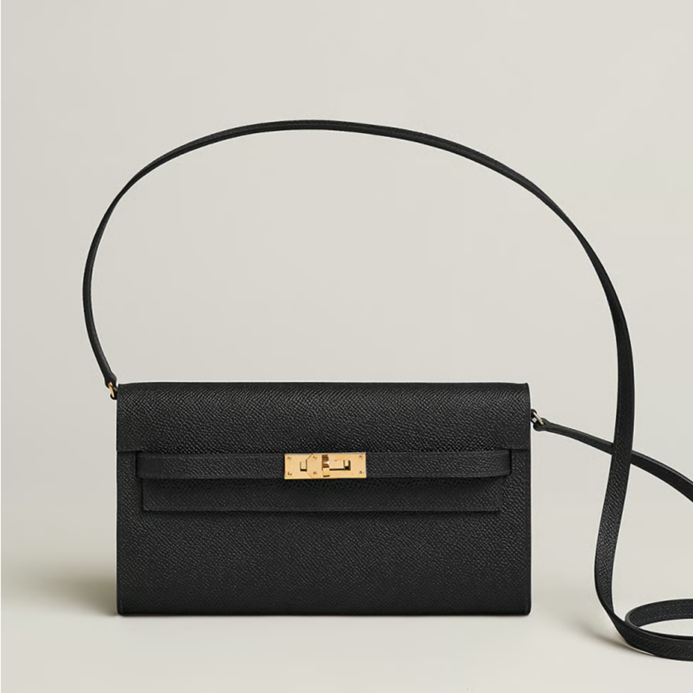 Hermes Kelly To Go Epsom Noir Gold > 클러치