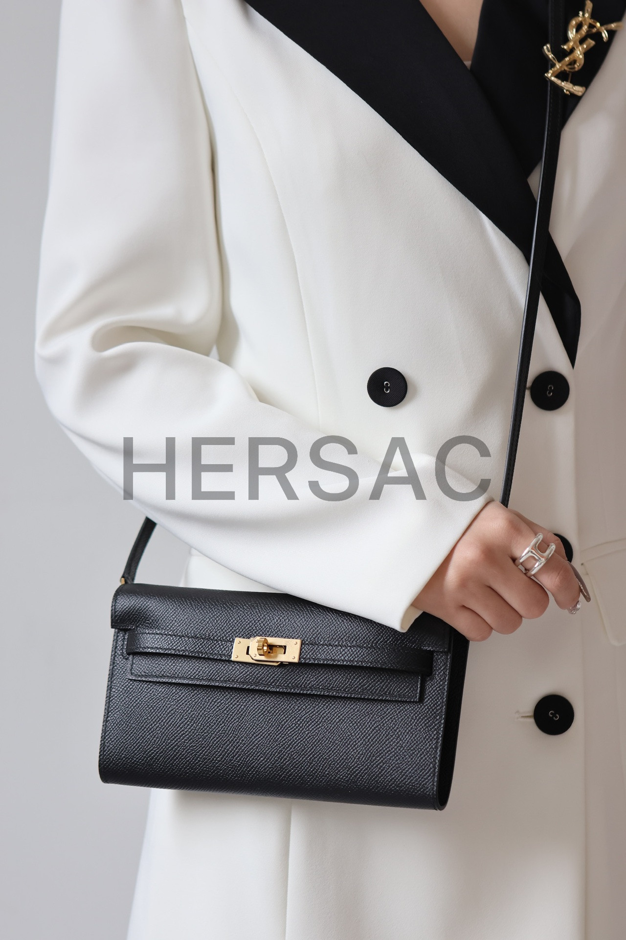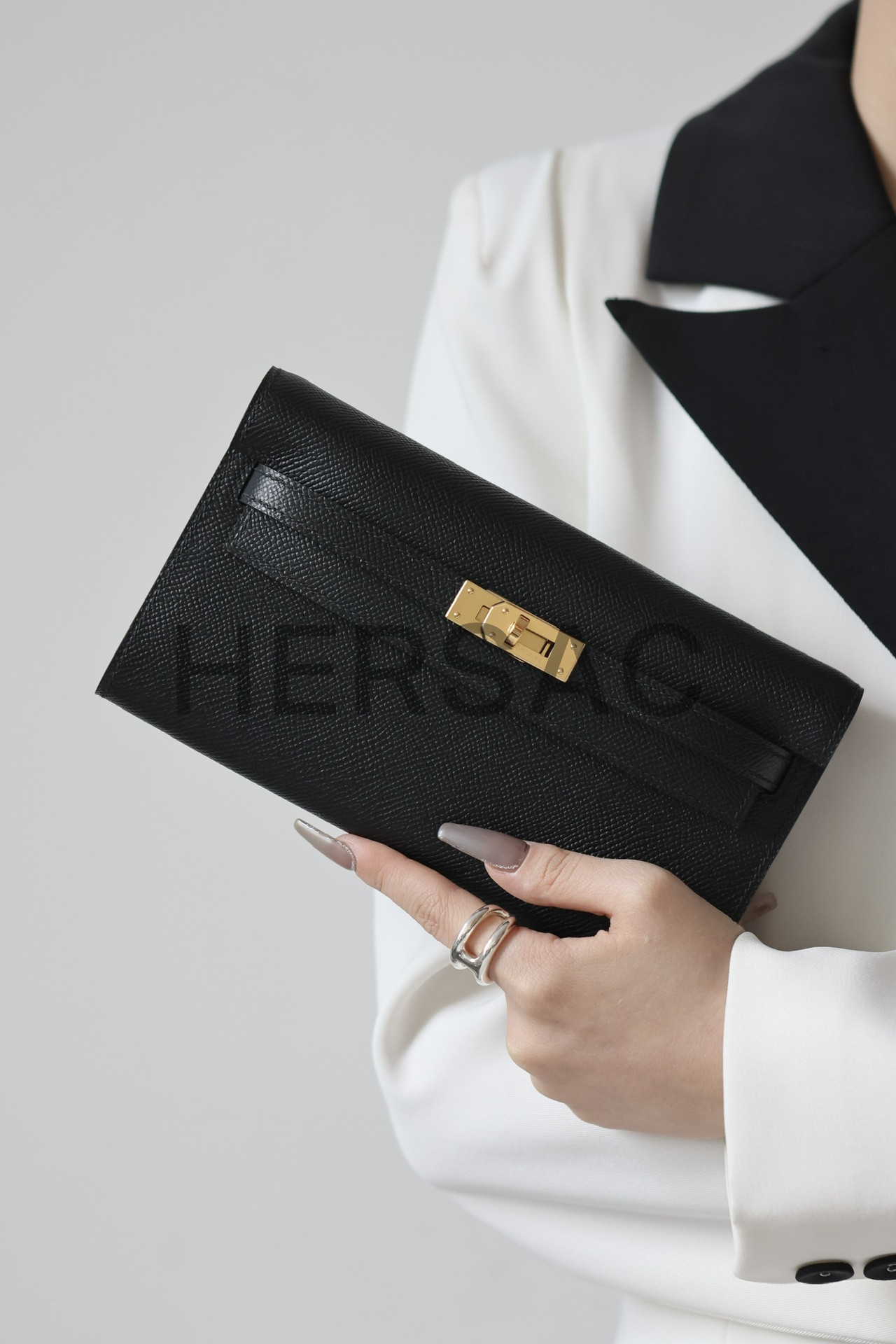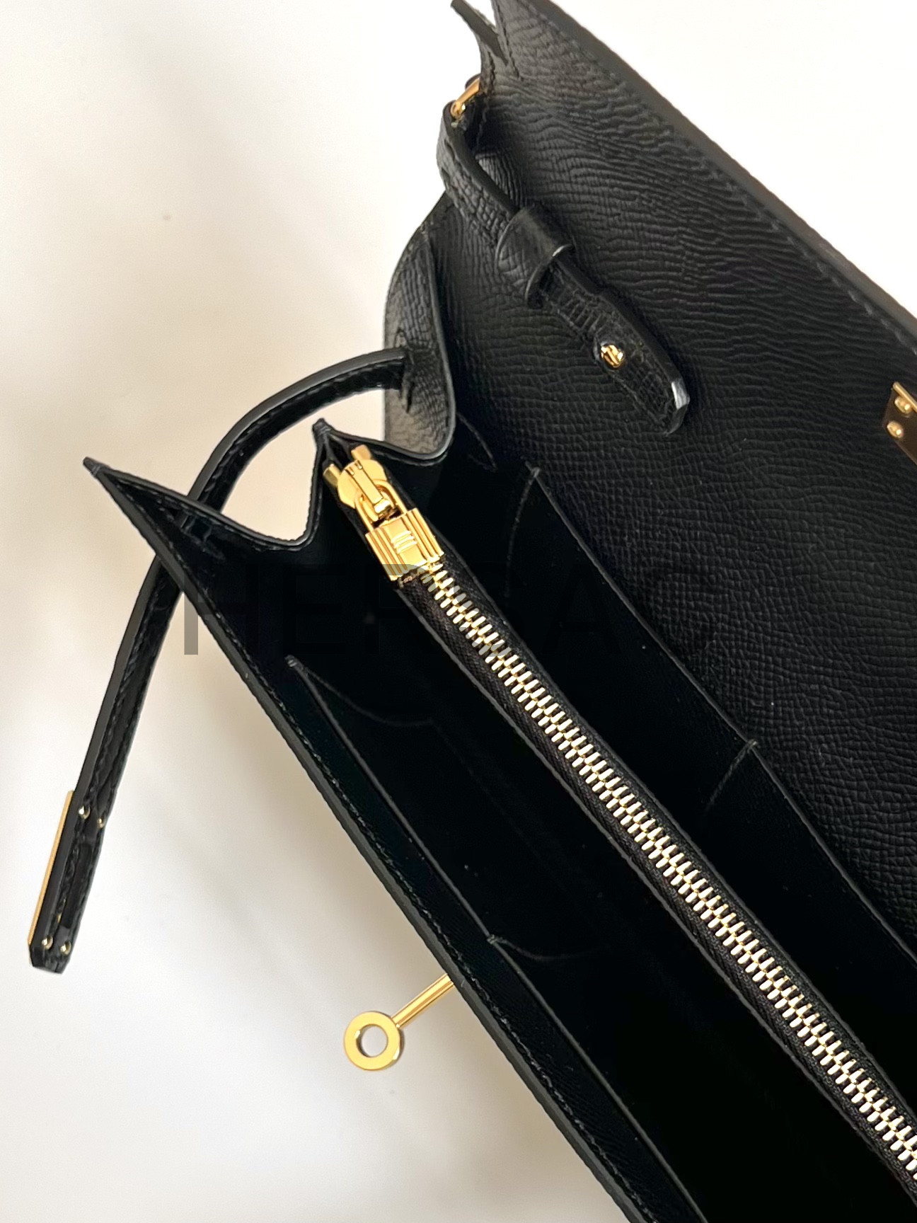 Hermes Kelly To Go Epsom Noir Gold > 클러치