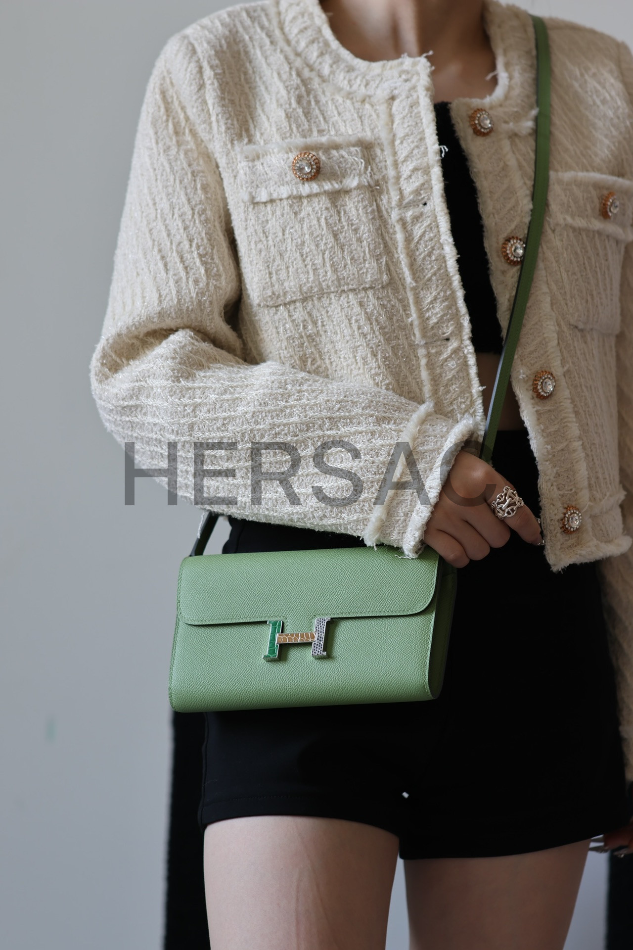 Hermes Constance to Go Wallet Epsom Vert Criquet > 클러치