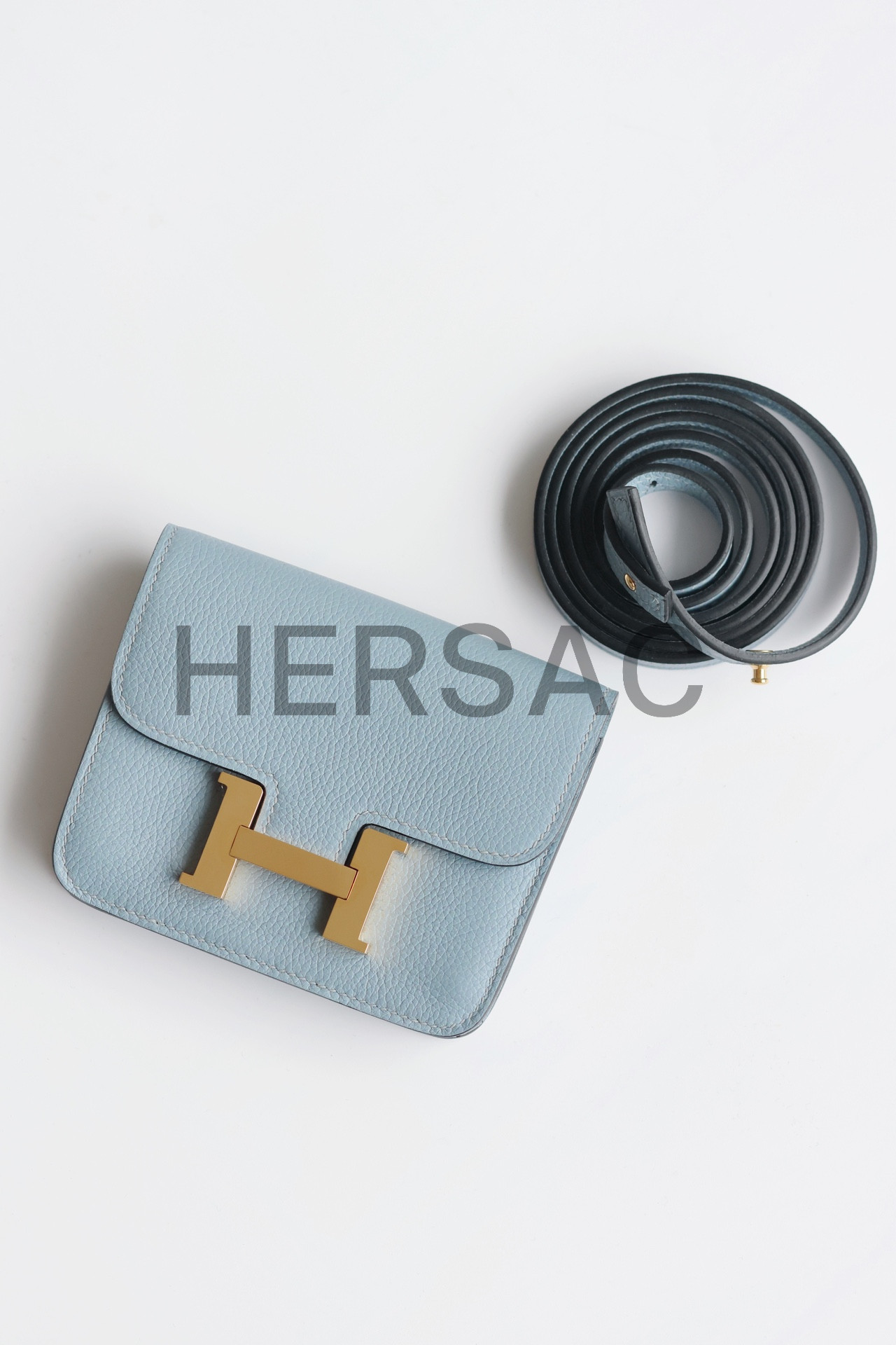 에르메스 콘스탄스 슬림 월렛 에버컬러 블루 린 골드 H082214CCJ7