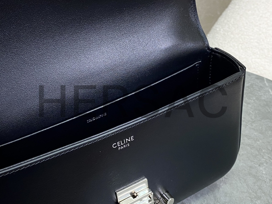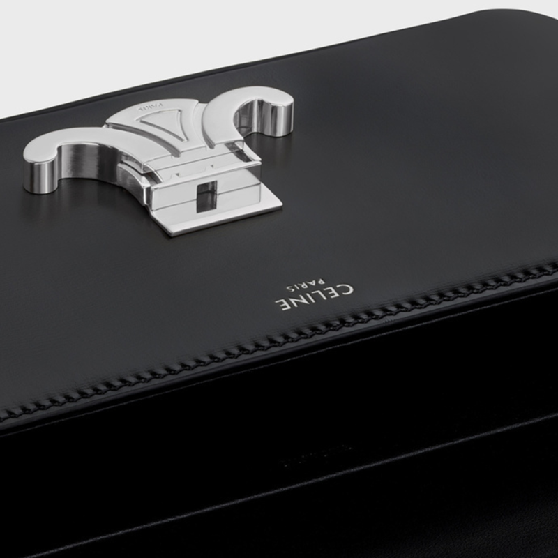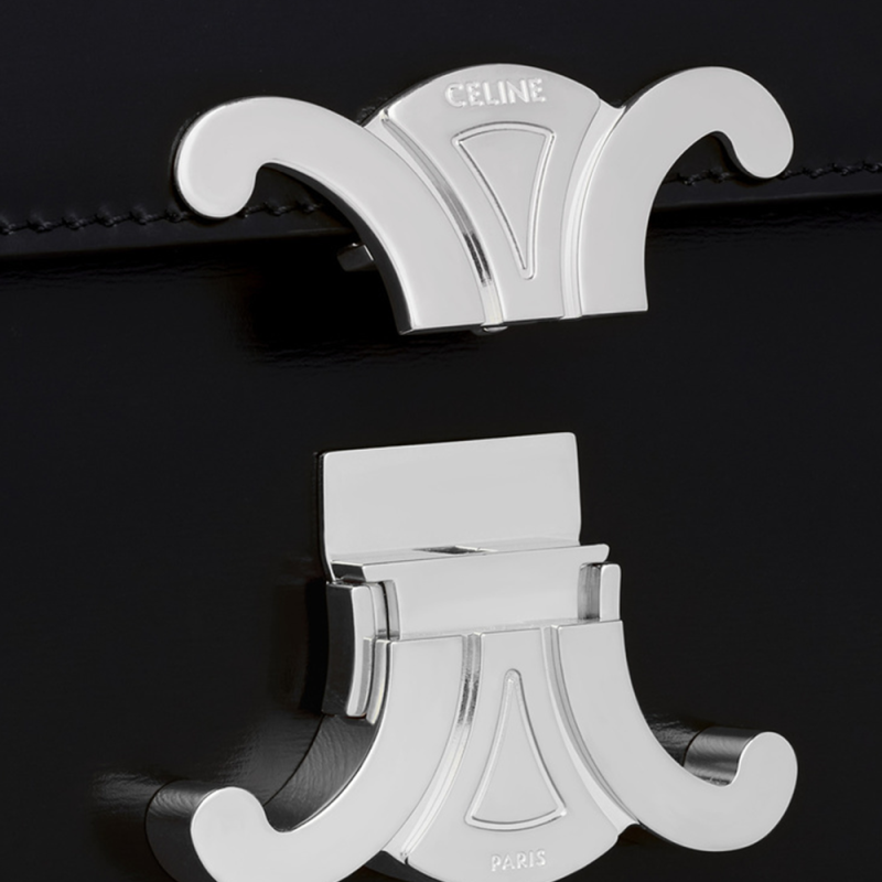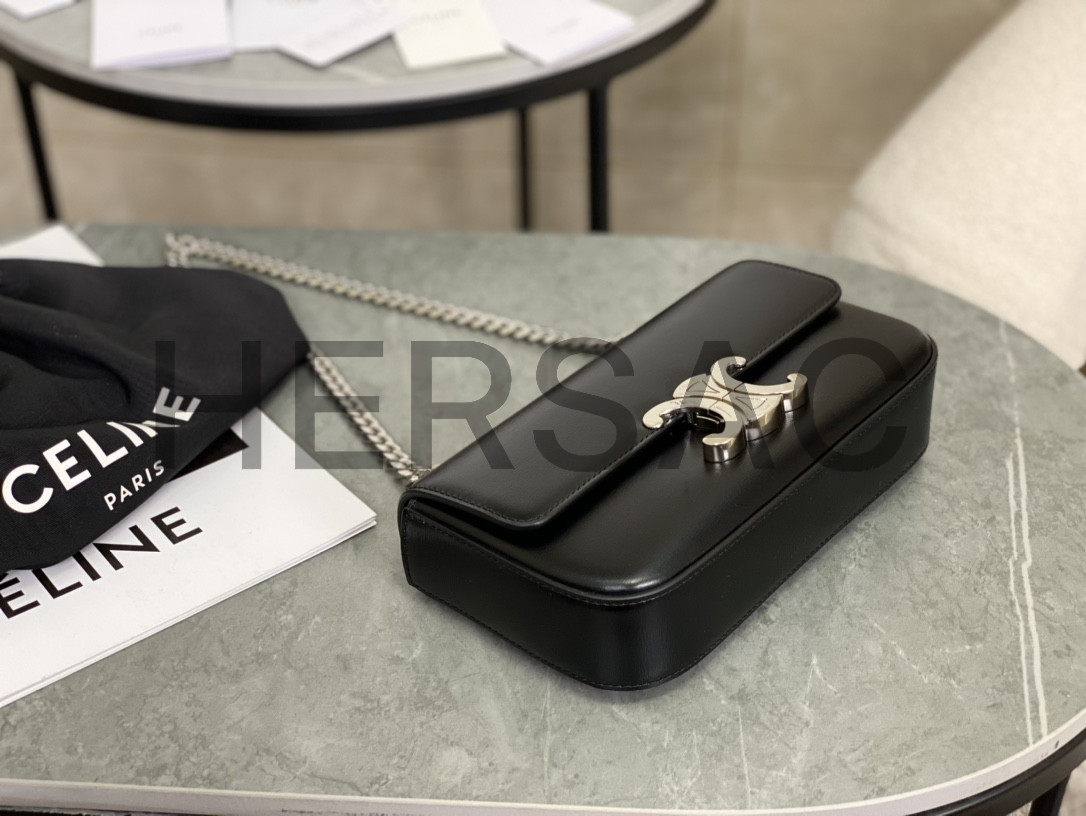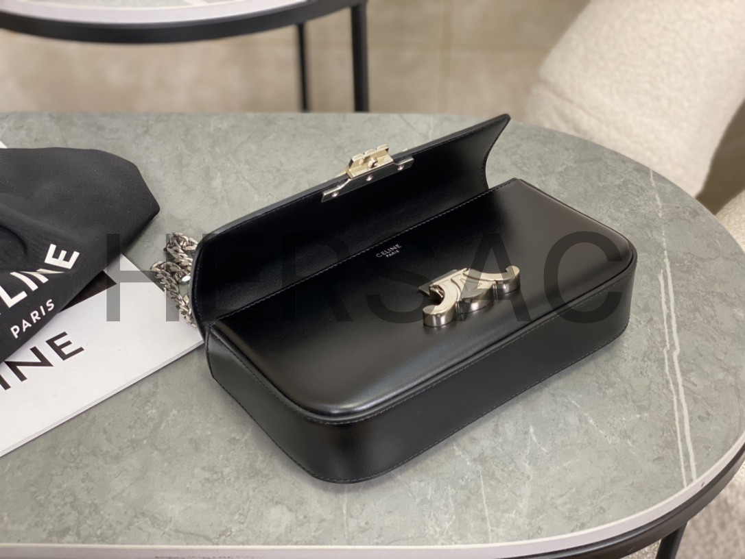 Celine Chain Shoulder Bag Triomphe In Shiny Calfskin