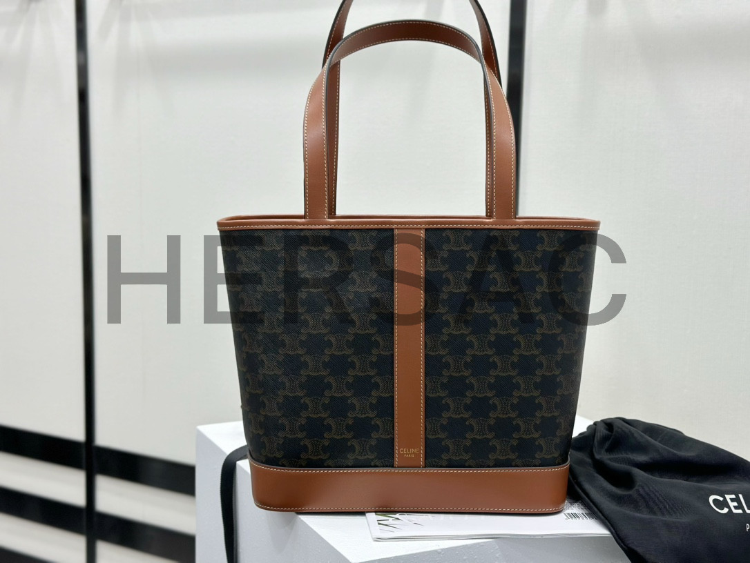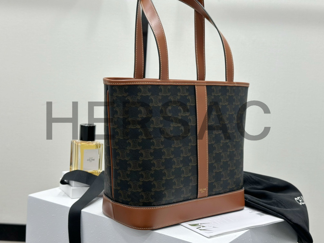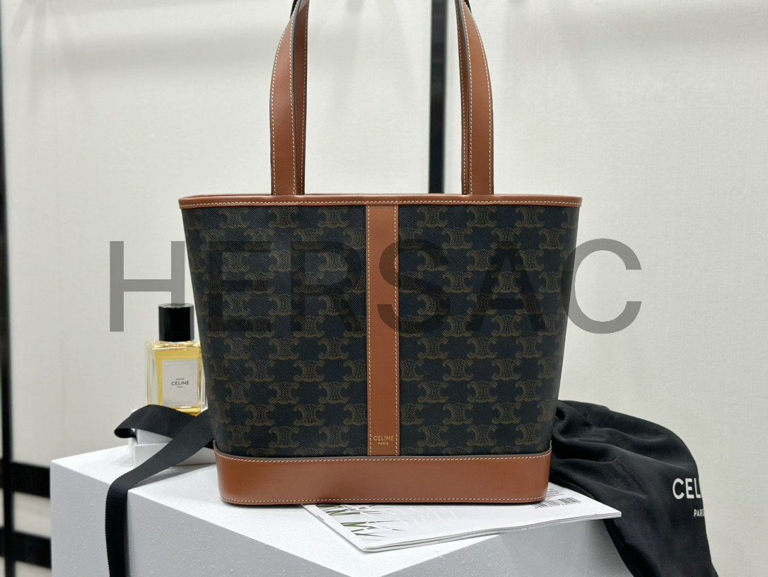 Celine Small Cabas Bag IN TRIOMPHE CANVAS AND CALFSKIN > 숄더백