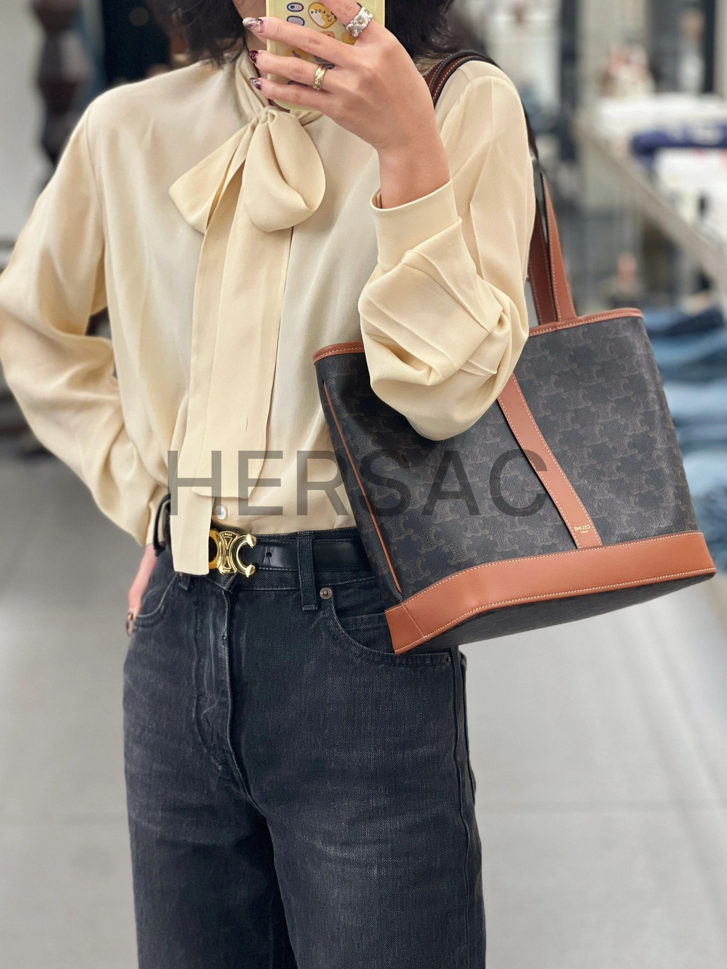 Celine Shoulder Bag Claude IN Triomphe canvas and calfskin