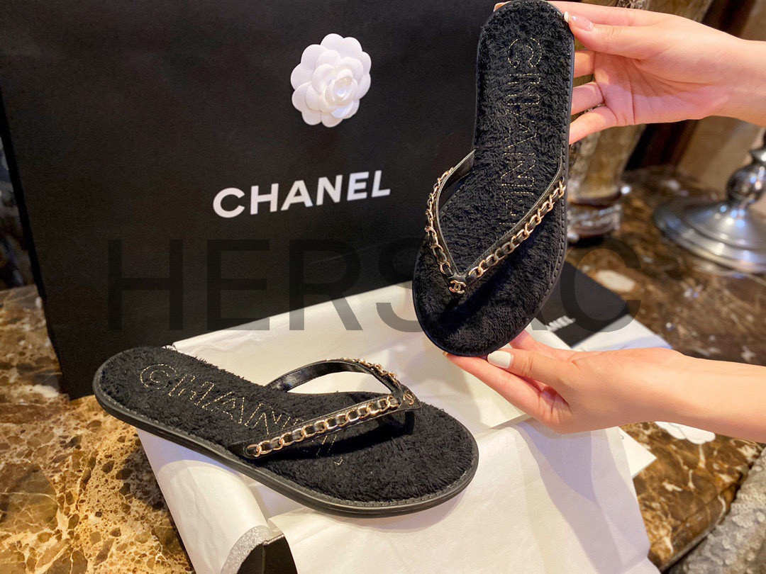 CHANEL CC Chain Long Flat Slippers > 슬리퍼&뮬&샌들