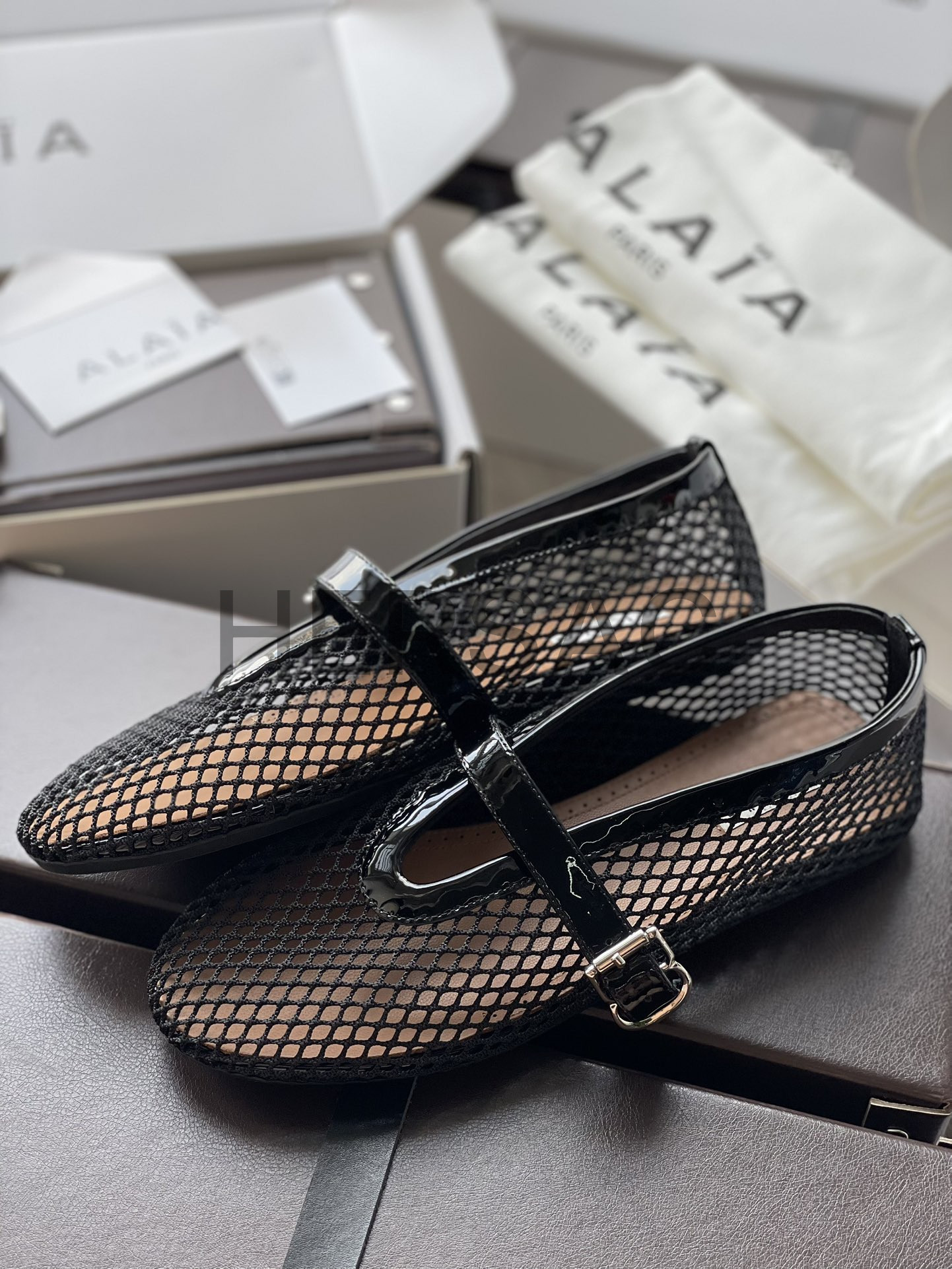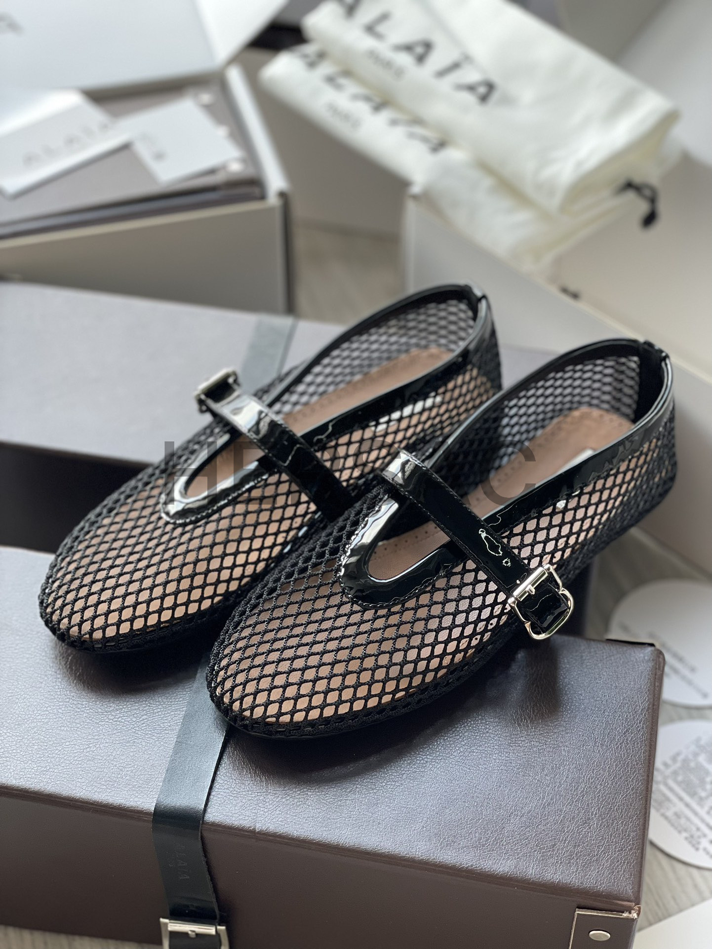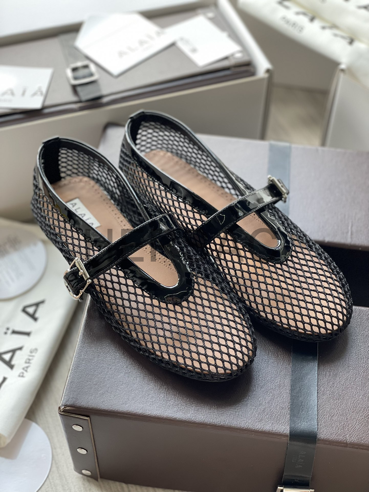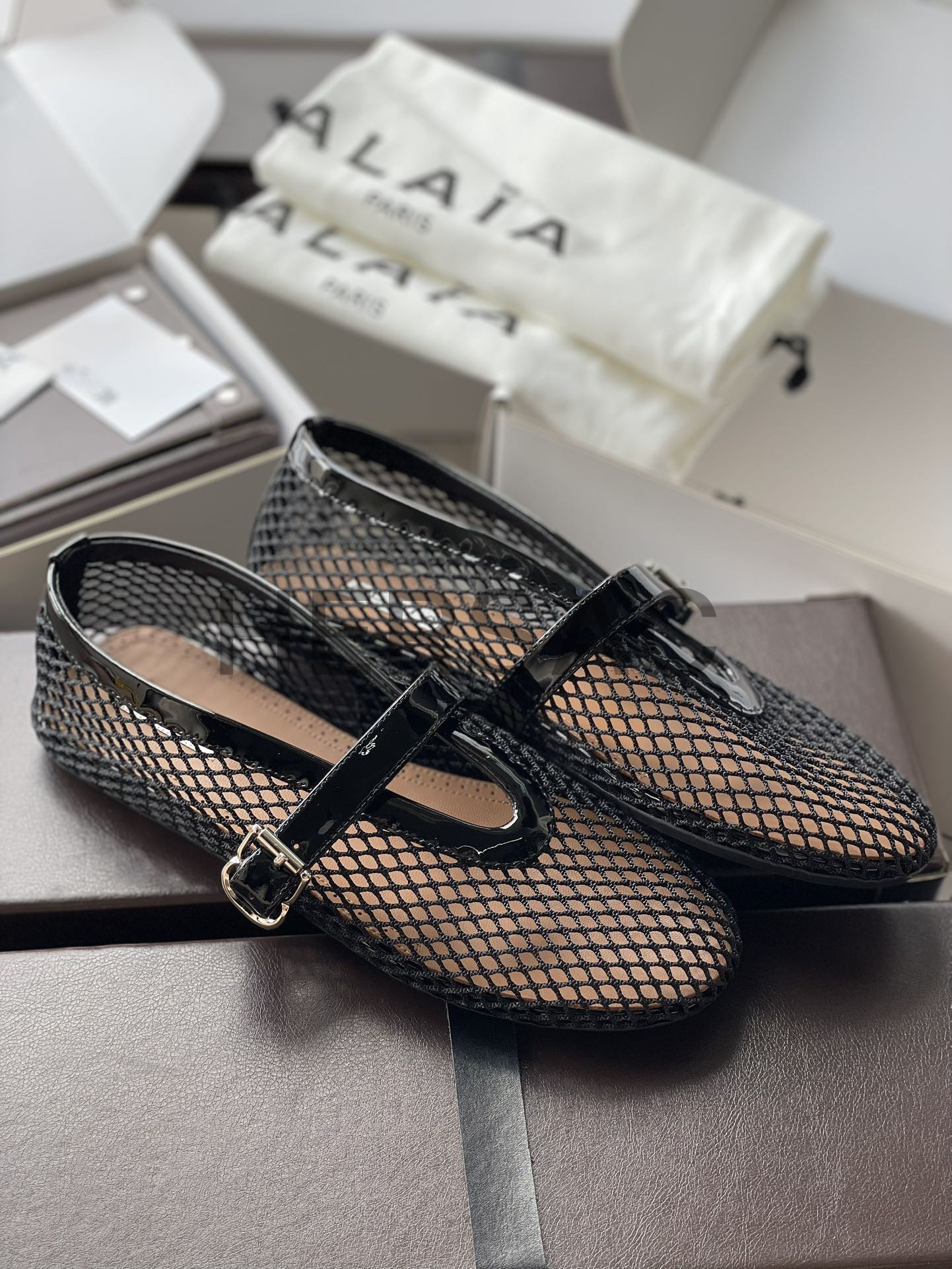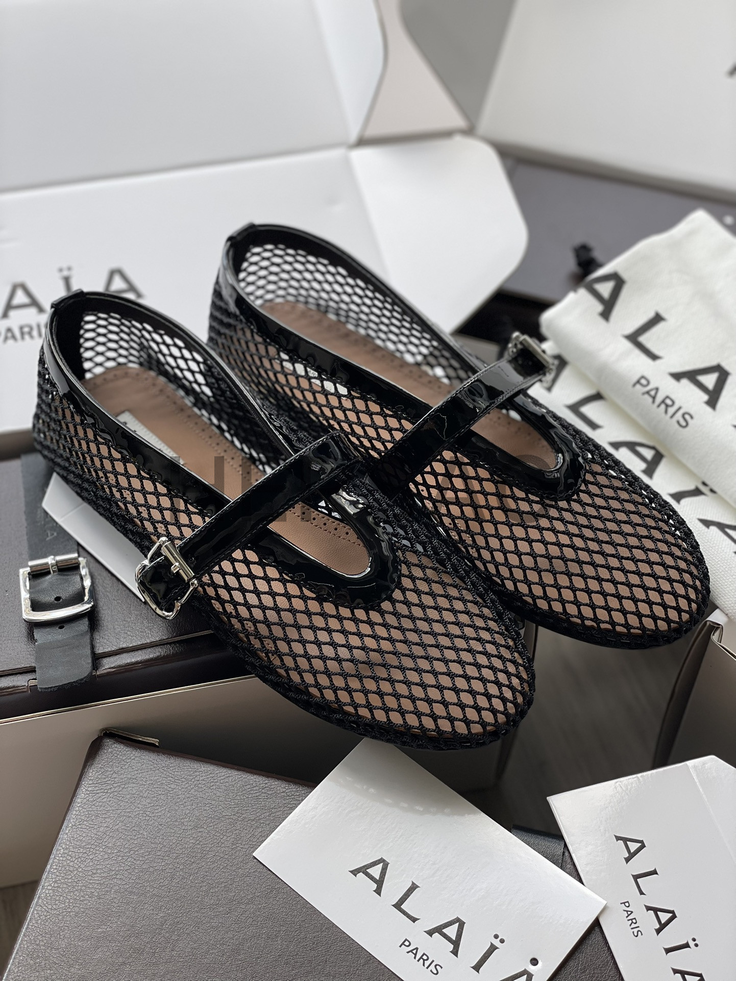 알라이아 피시넷 발레 플랫 슈즈 AA3A029TK007-999