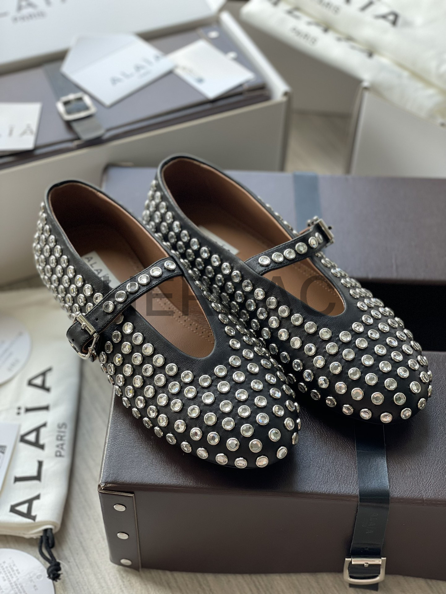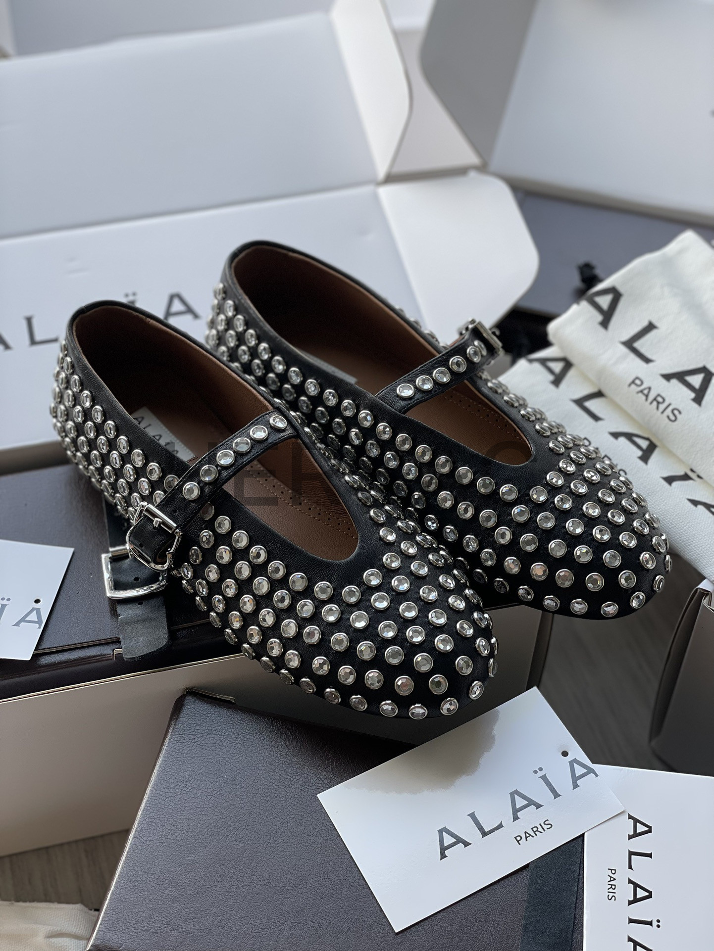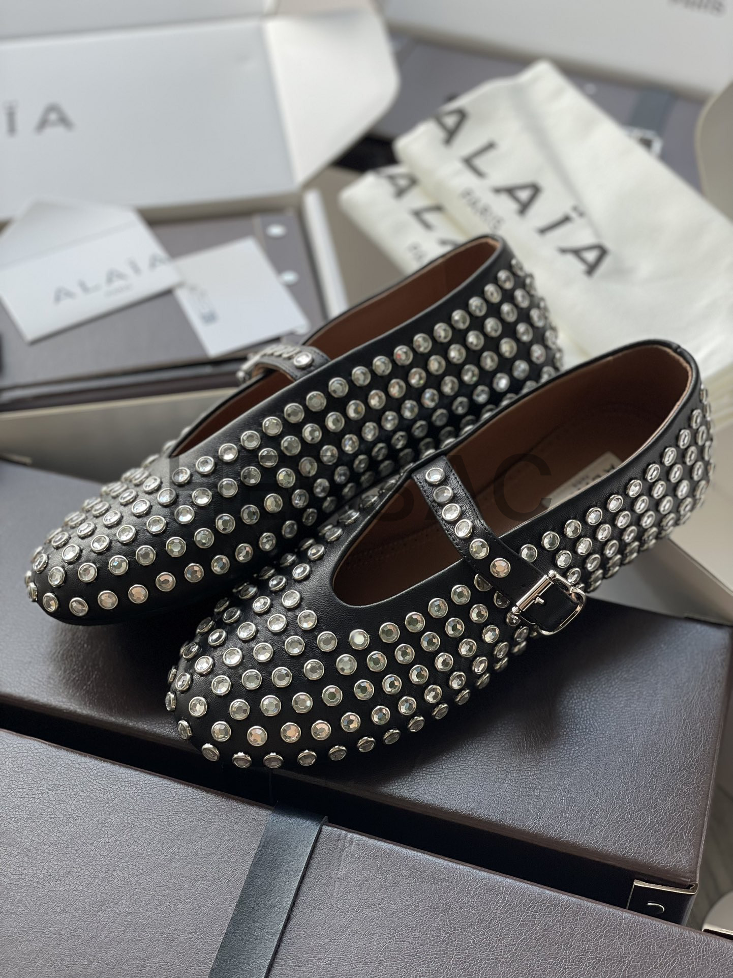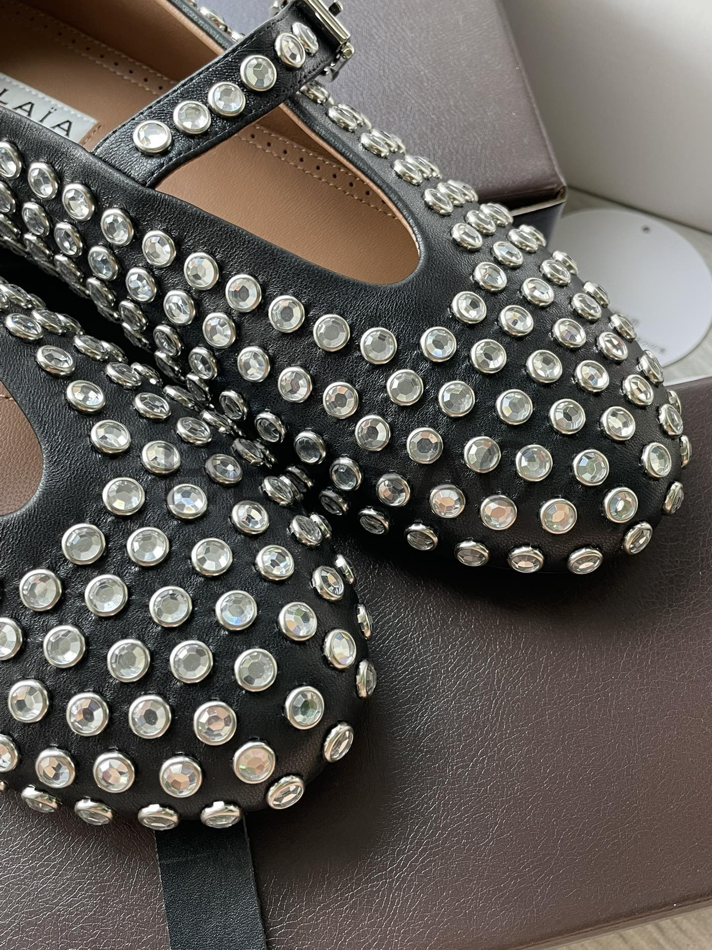 알라이아 라인스톤 양가죽 발레리나 AA3A029CK116- 999