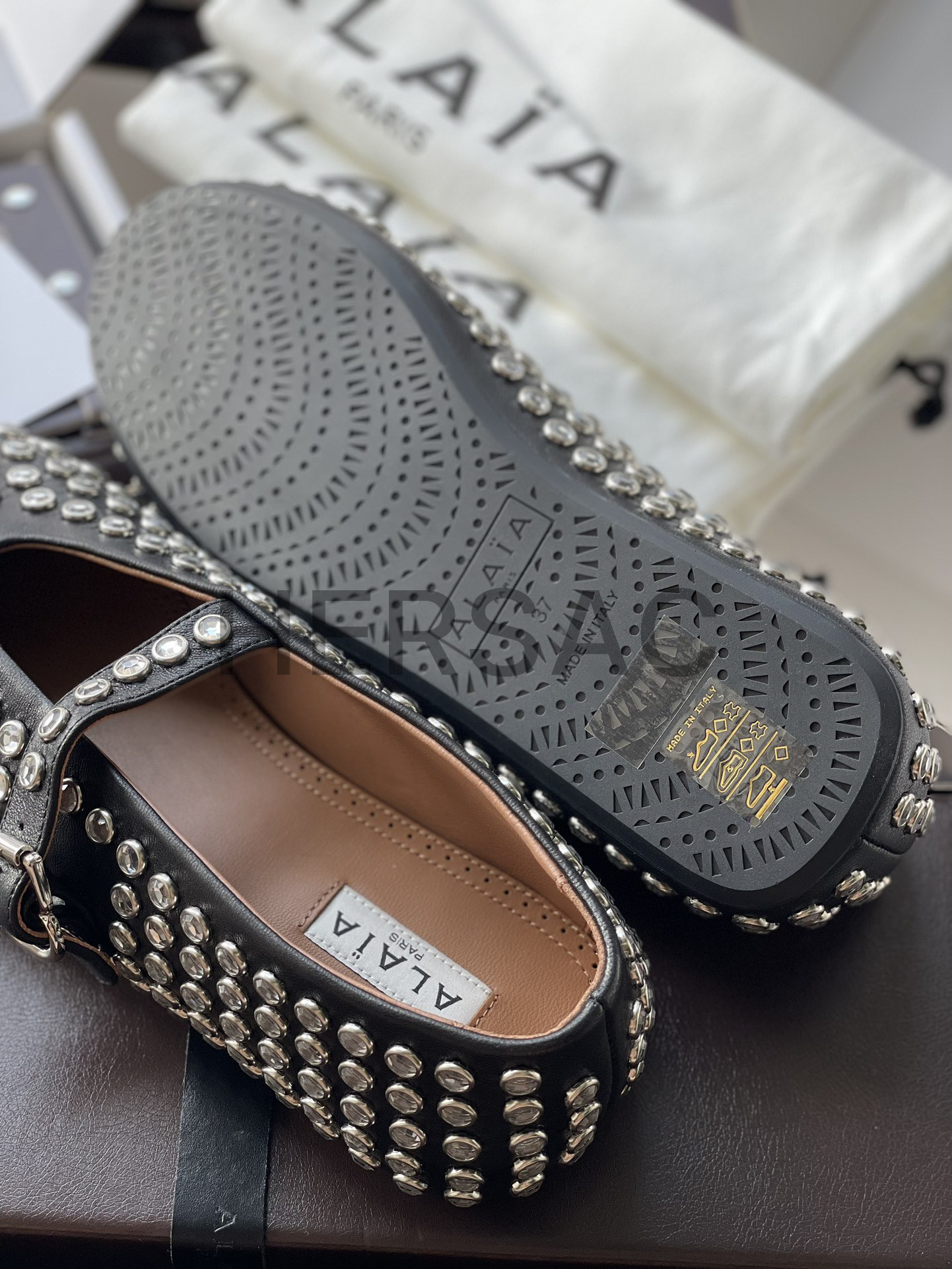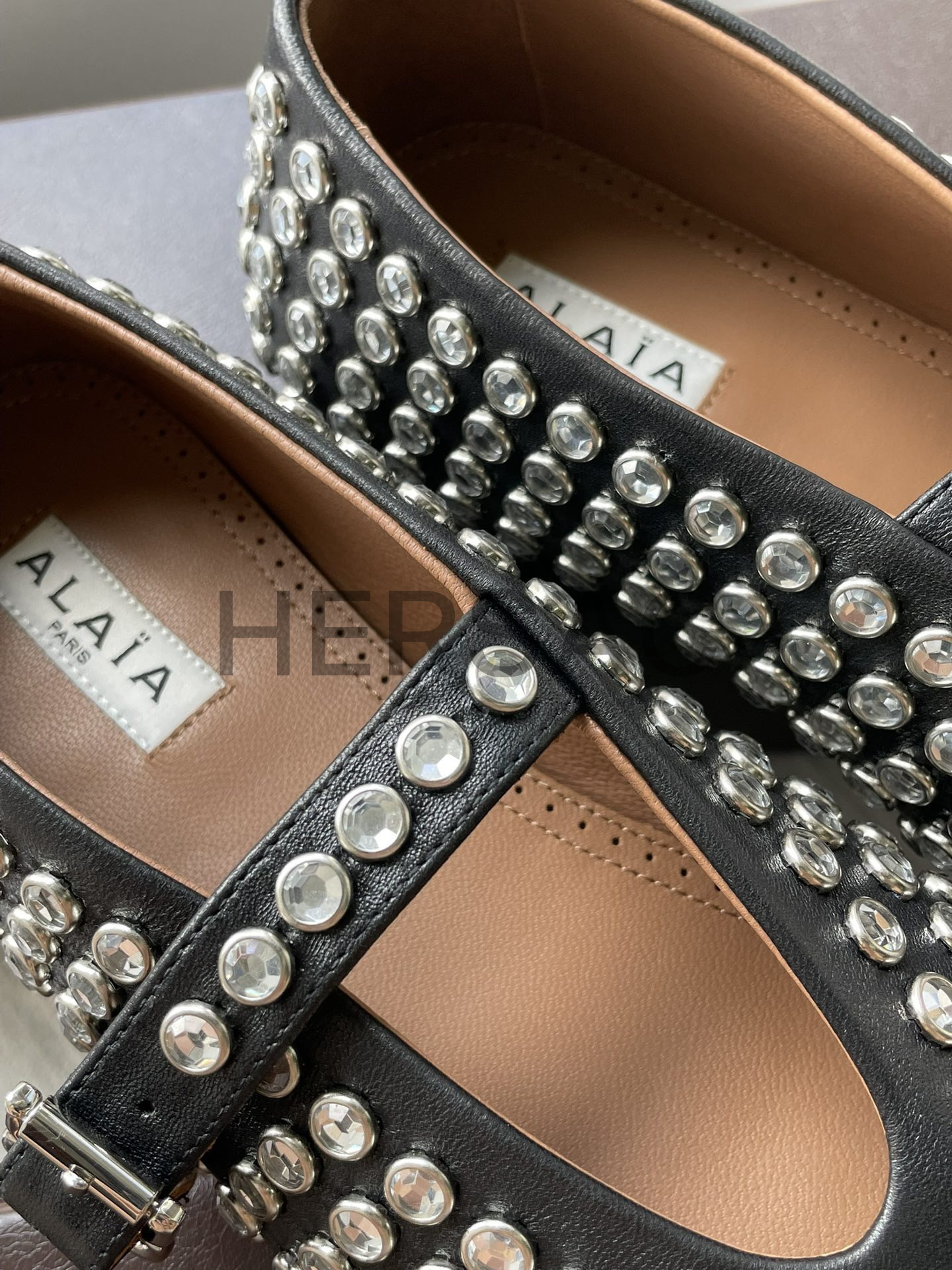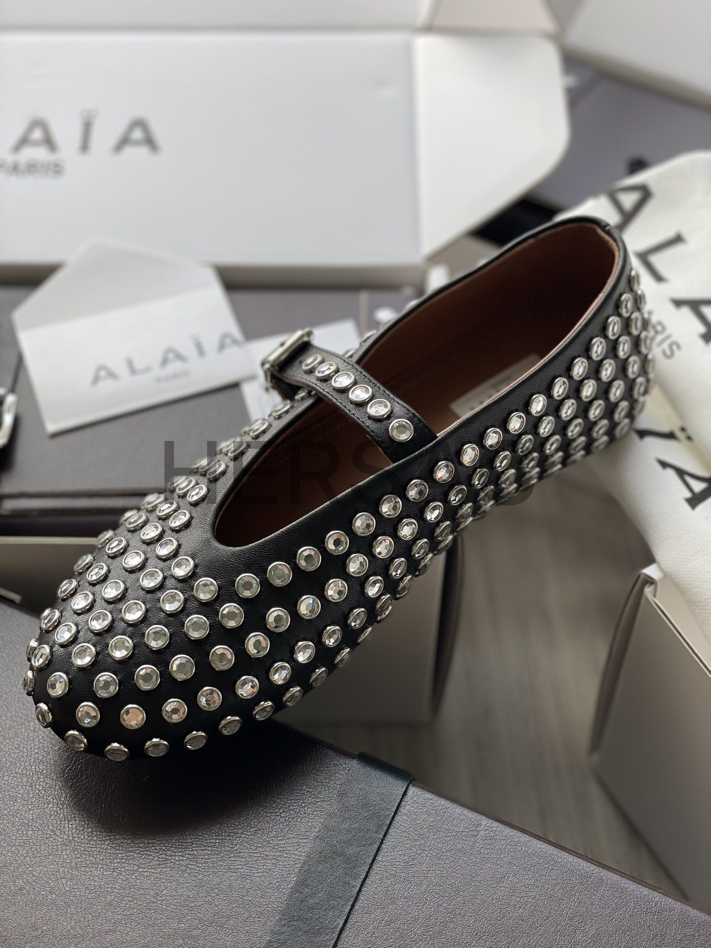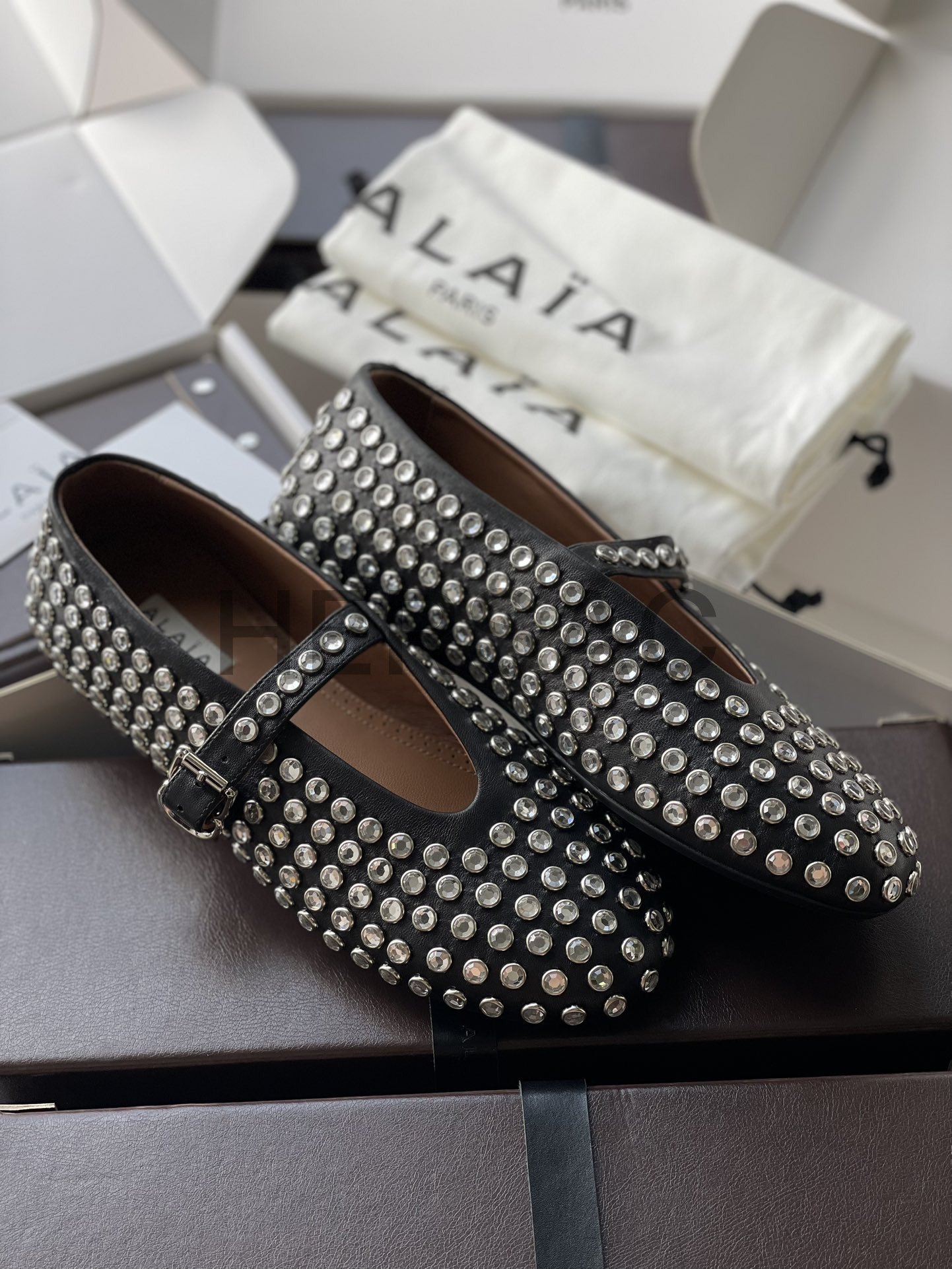 알라이아 라인스톤 양가죽 발레리나 AA3A029CK116- 999