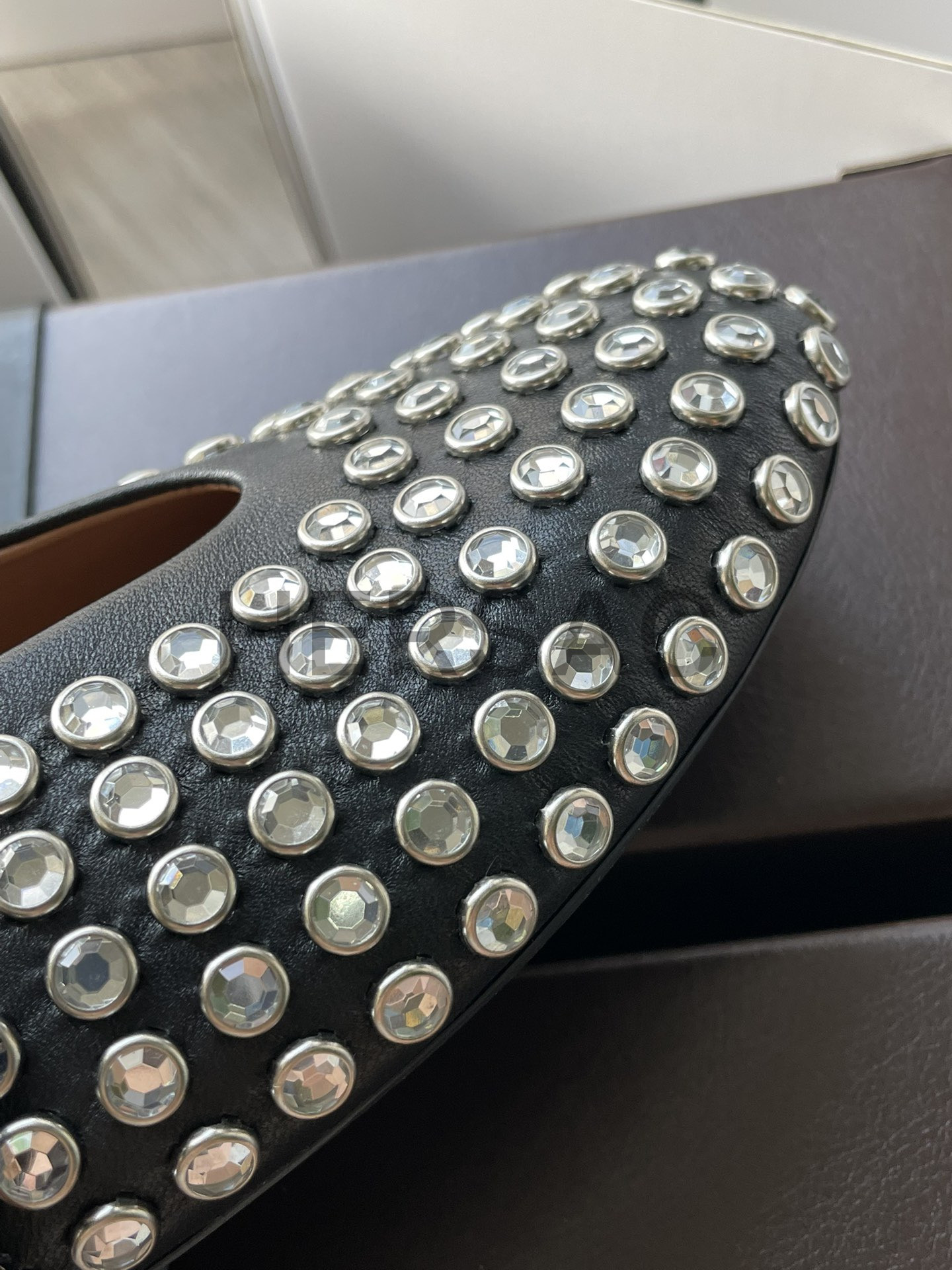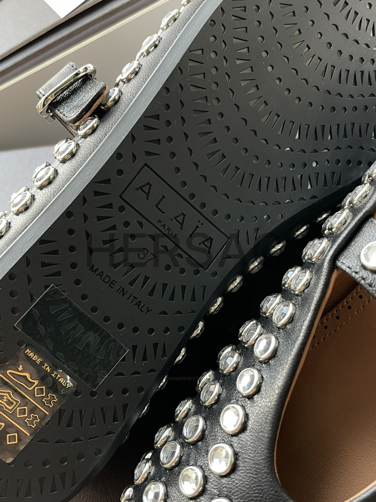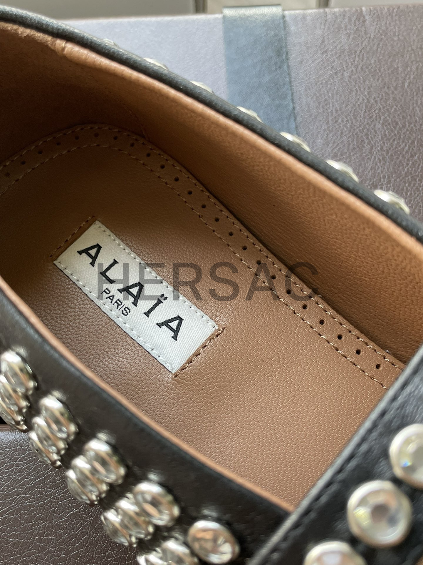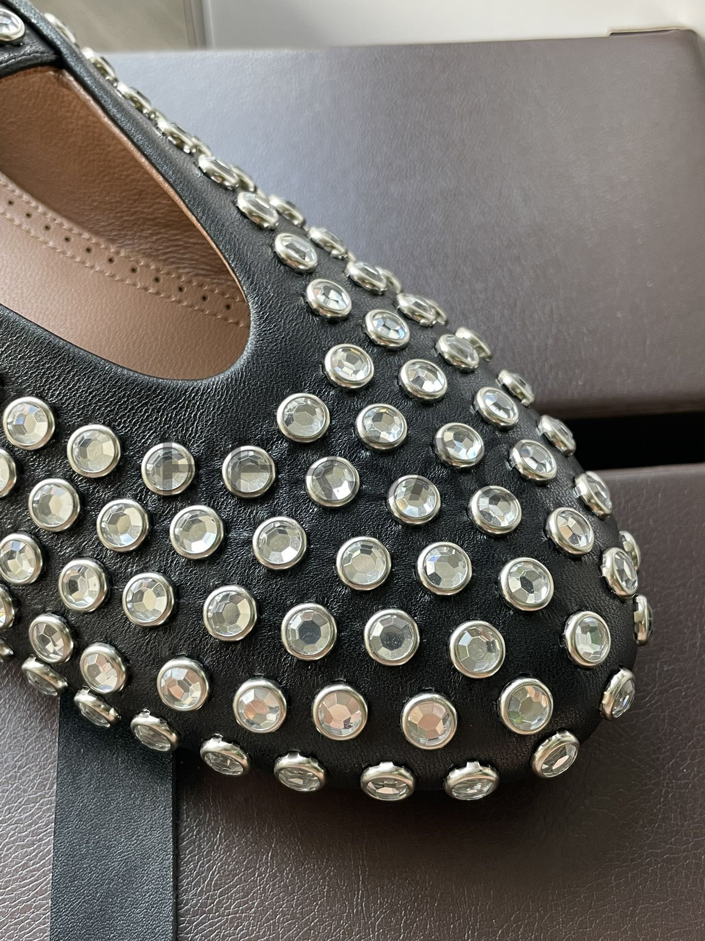 알라이아 라인스톤 양가죽 발레리나 AA3A029CK116- 999