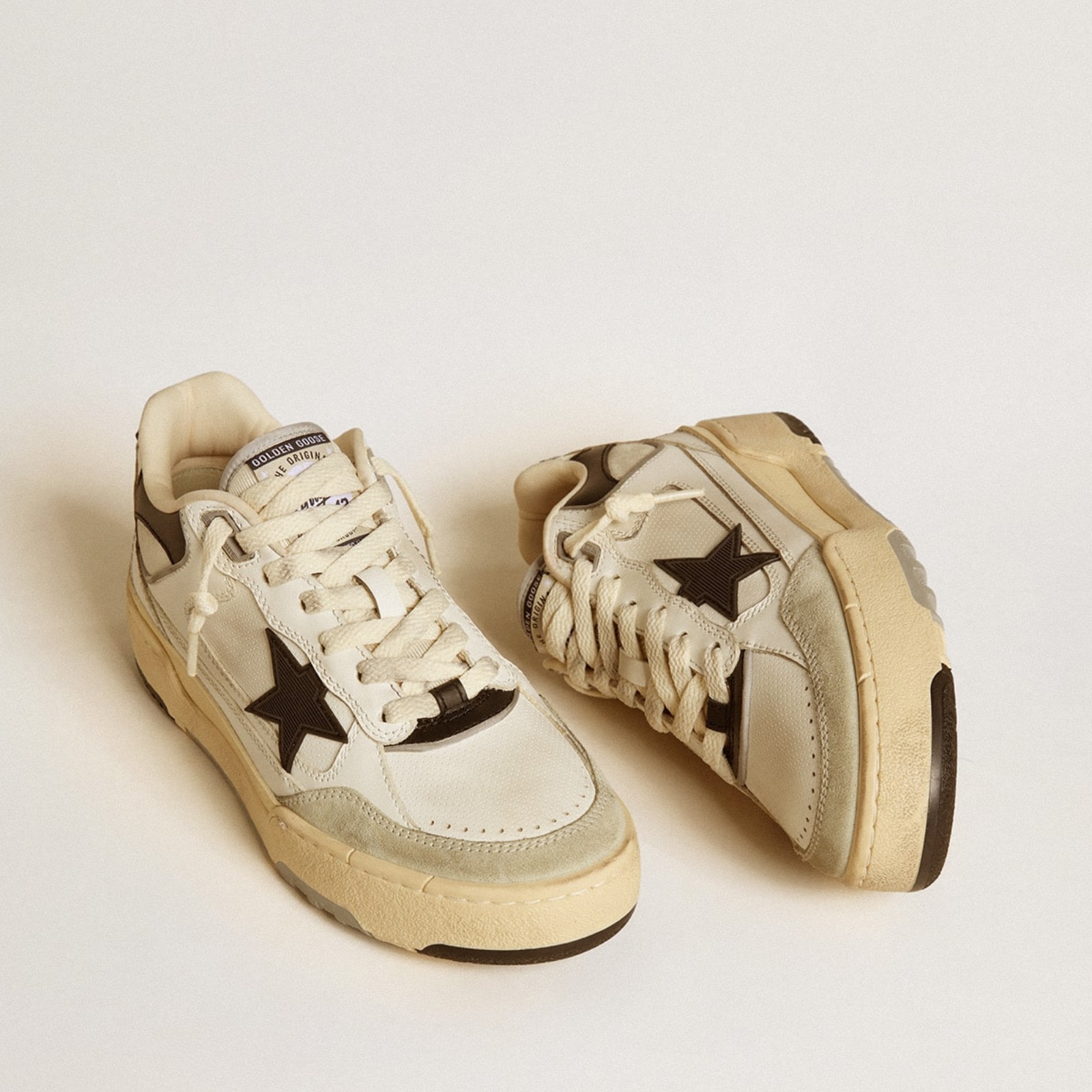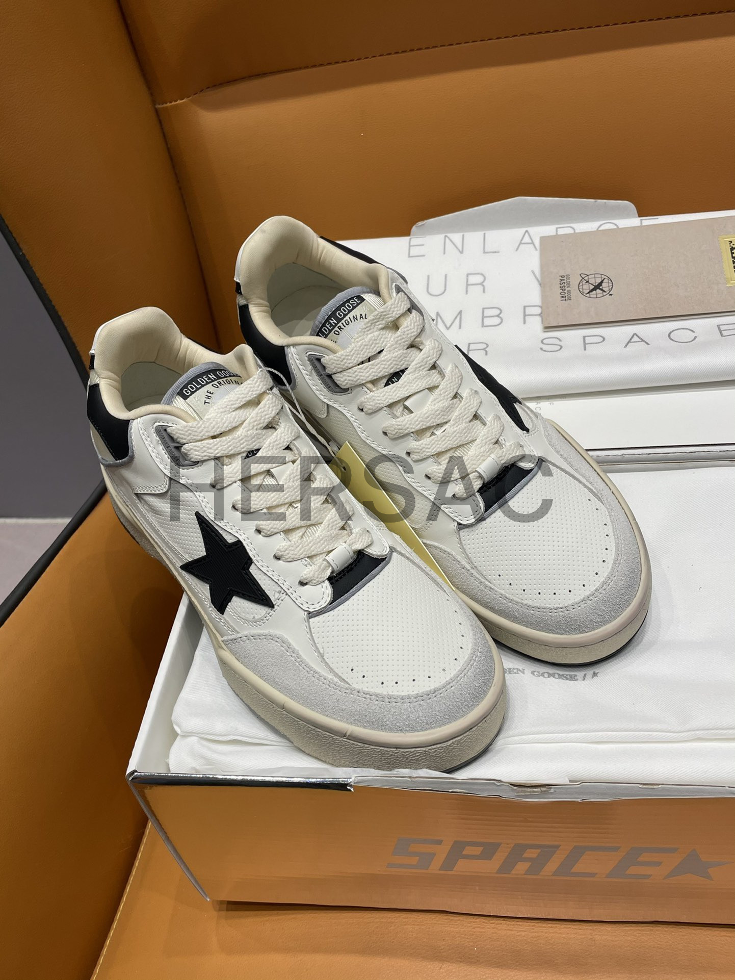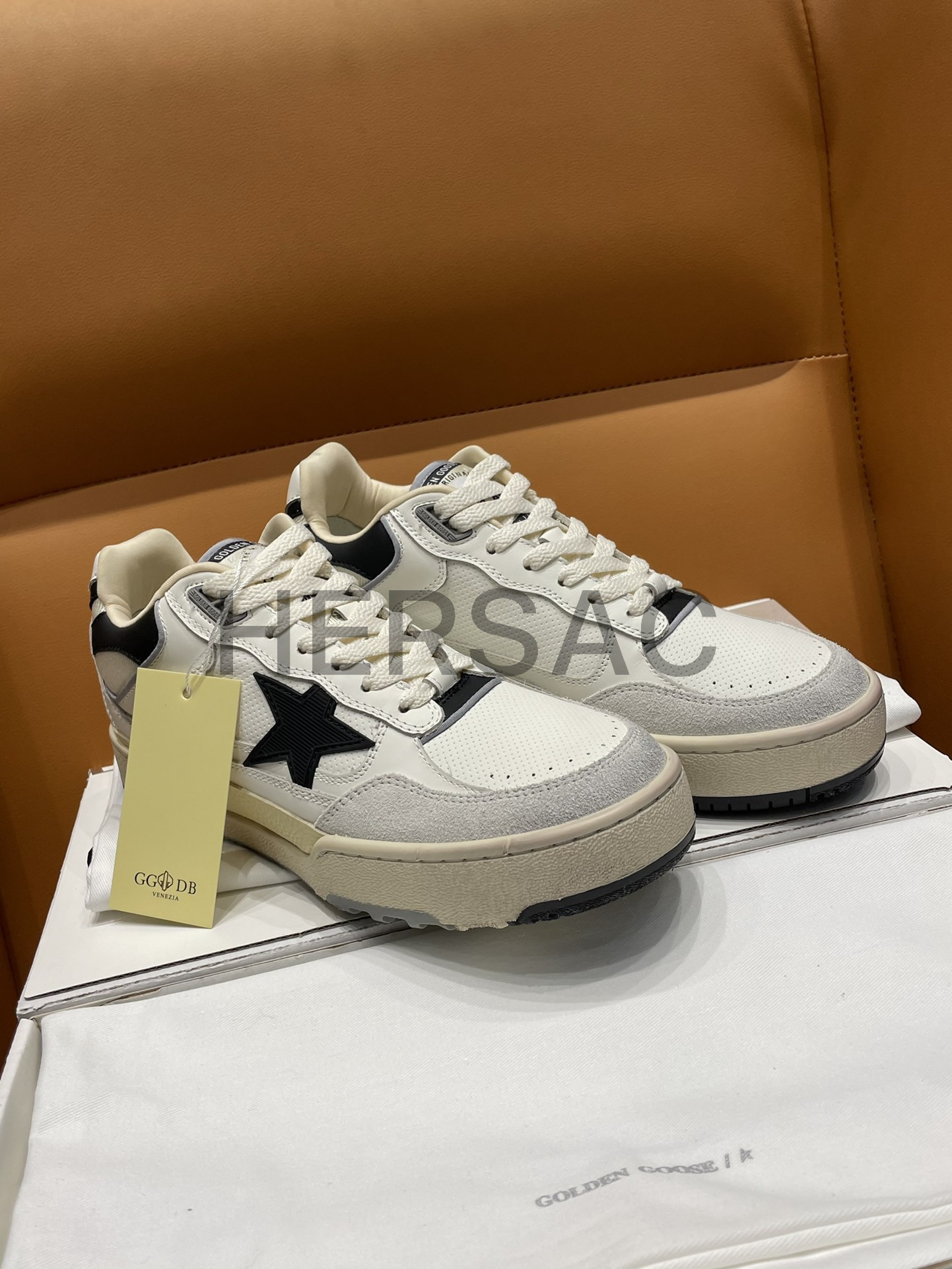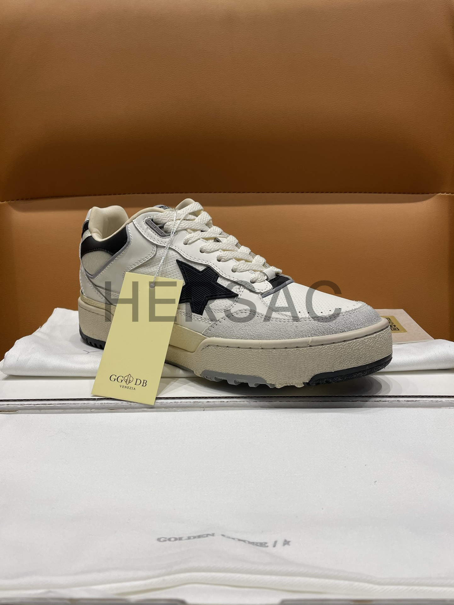 골든구스 남성 블랙 텍스처드 스타 & 블랙 레더 힐탭 포티2 GMF00630.F005745.11395