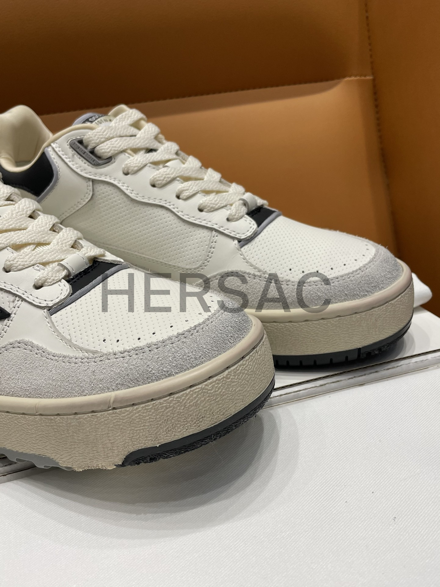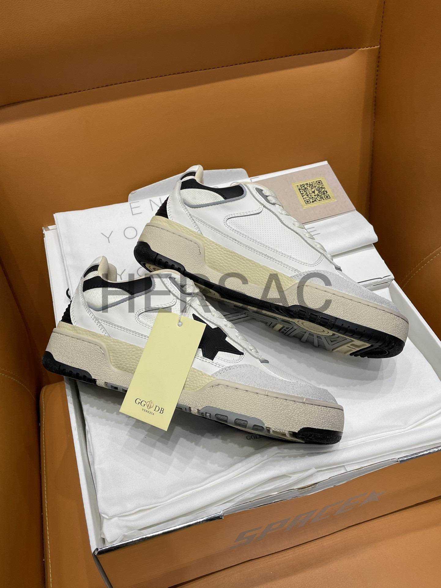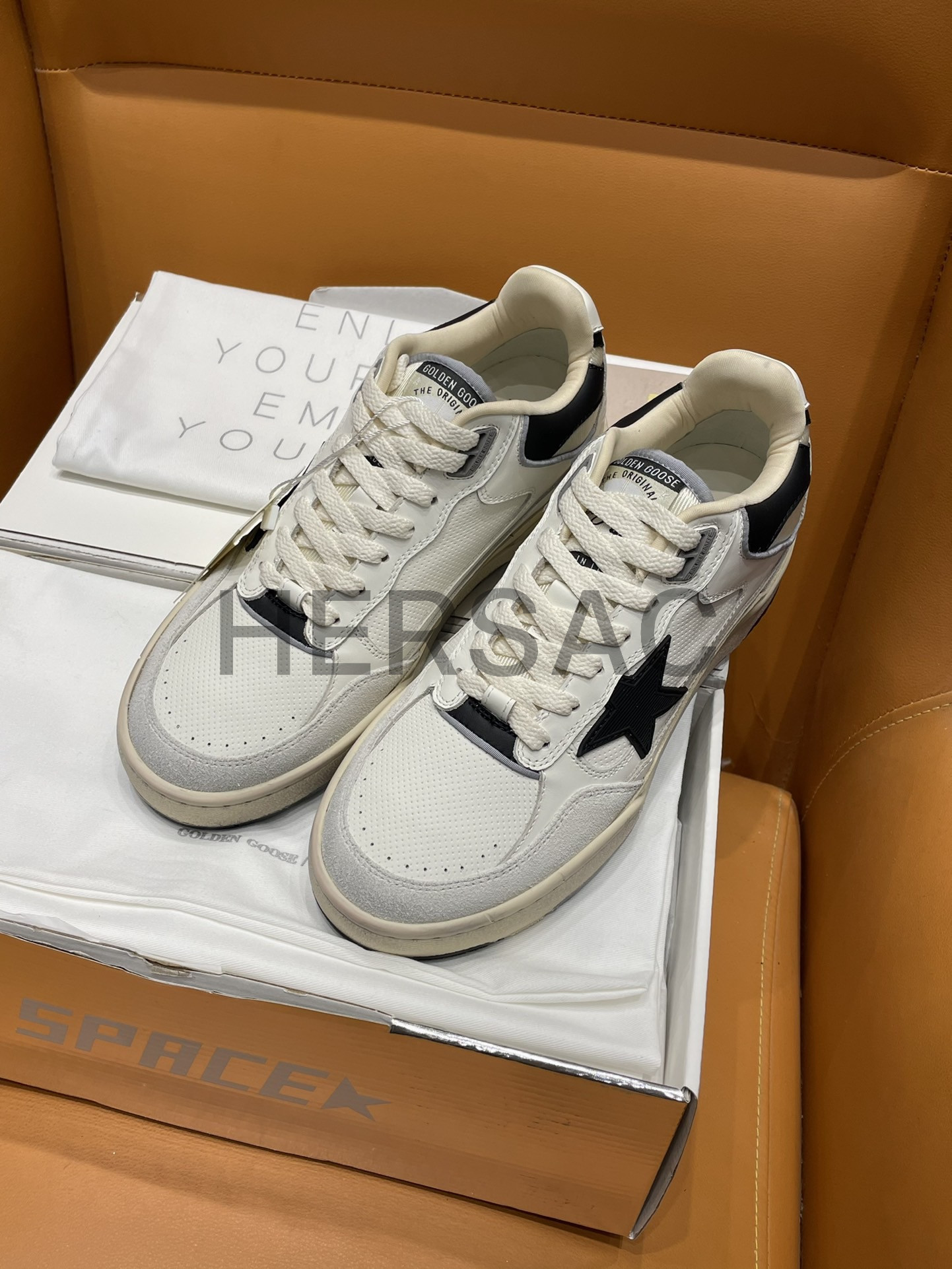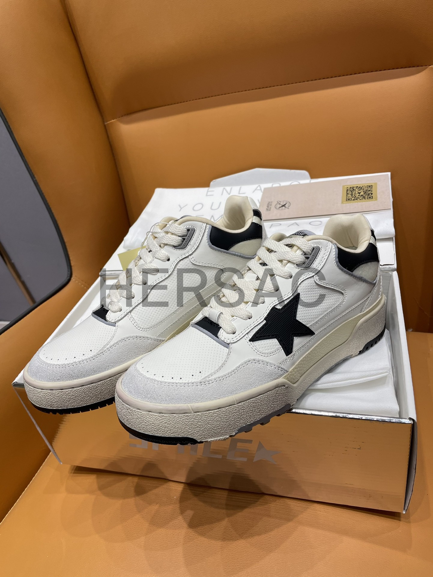 골든구스 남성 블랙 텍스처드 스타 & 블랙 레더 힐탭 포티2 GMF00630.F005745.11395